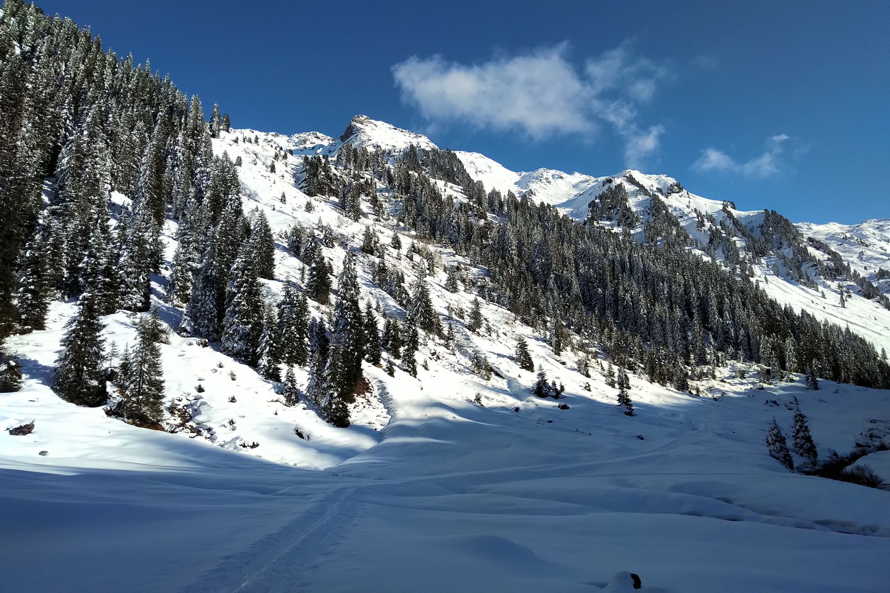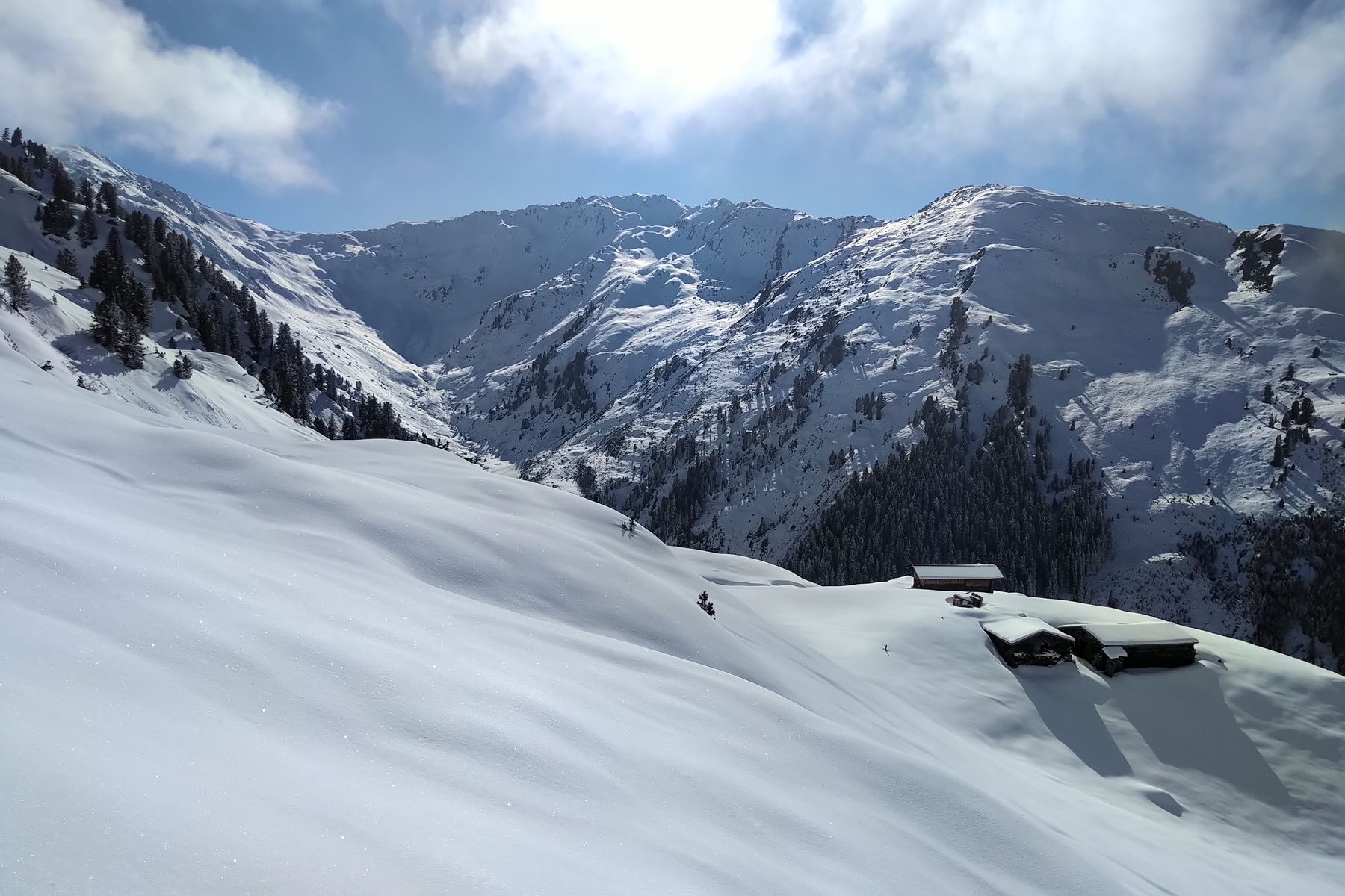 Ab der Abzweigung vom Frommbachtal zur Hochfeldenalm hatten wir komplett unverspurtes Gelände - und zum Großteil auch guten Schnee bei der Abfahrt!
