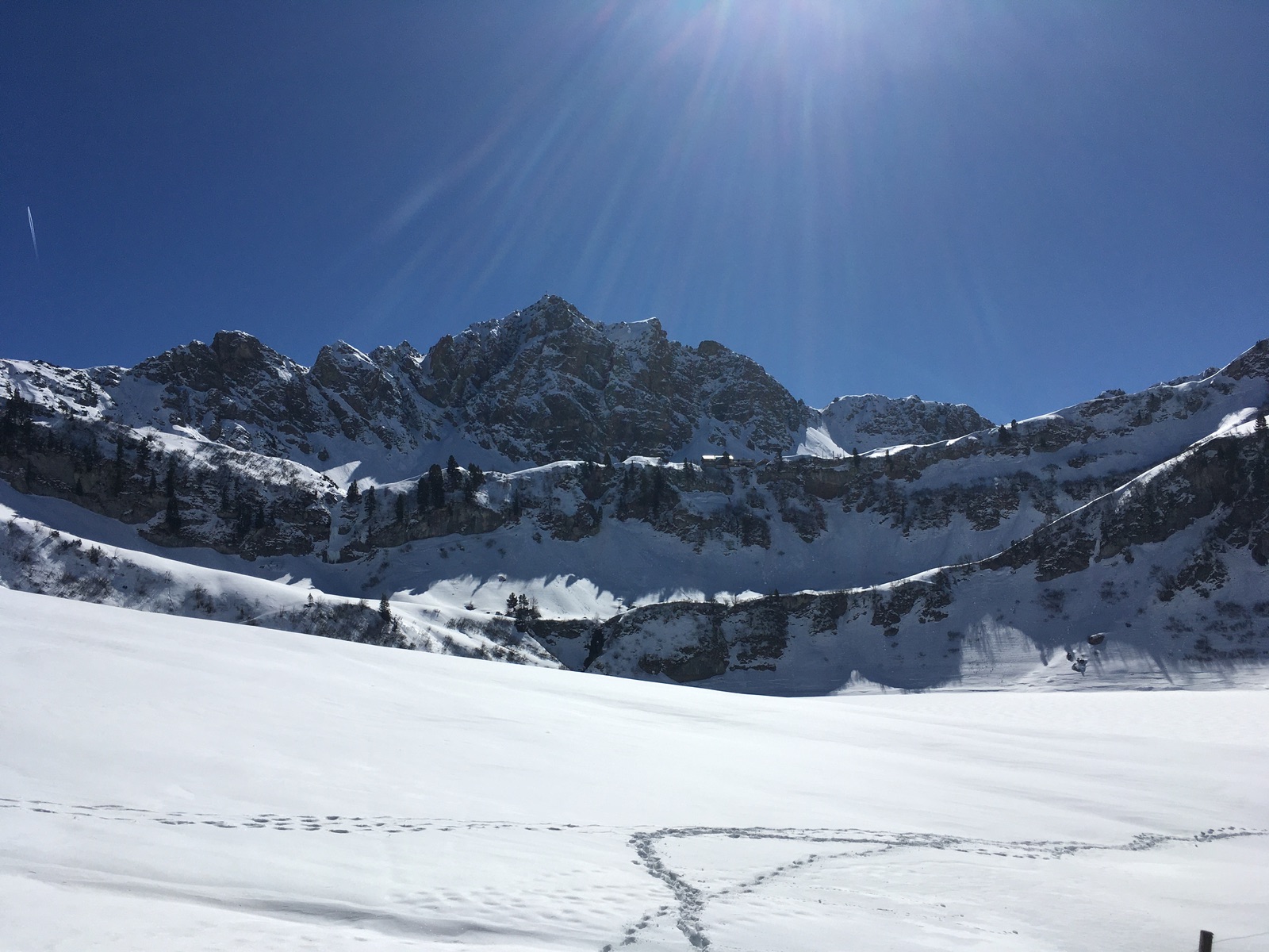 Gestern konnte ich die eigentlich für das vergangene Wochenende geplante Skirunde Tannheim - Vilsalpsee - Geierköpfle - Schochenspitze - Neunerköpfle nachholen. Der Liftbetrieb in Tannheim ist bis auf einen Tallift eingestellt und die Saison gefühlt auch insgesamt vorbei (kaum mehr was los). Dabei liegt auf der Loipe von Tannheim zum Vilsalpsee bis auf wenige apere Stellen noch ausreichend Schnee. Auch vom Vilsalpsee hoch zum Traualpsee geht es mit Skiern durchgehend hoch (für die Abfahrt wäre es vom Gelände her aber nicht skifahrerfreundlich). Gestern alles zu spuren. Am Geierköpfle ist ein Teil des Hangs als Grundlawine abgegangen, deshalb muss man etwas nach links ausweichen. Abfahrt hier schön aufgefirnt.