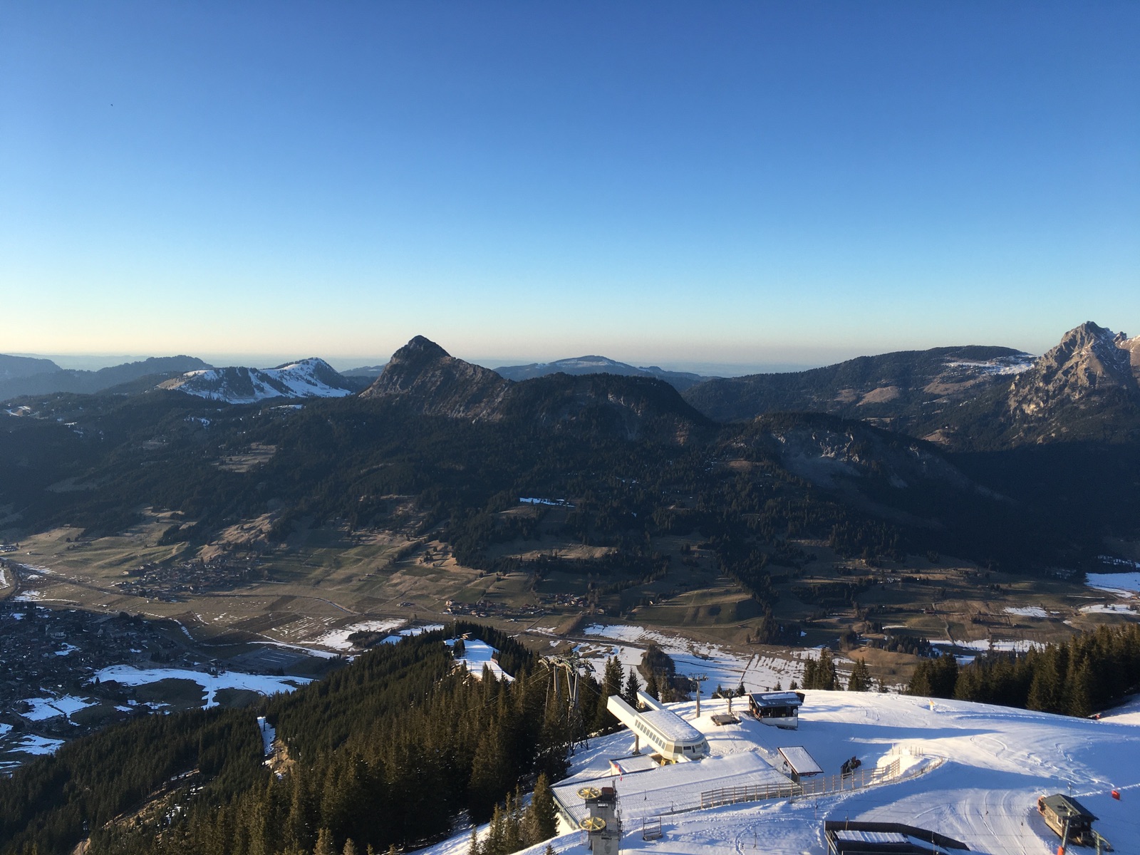 Blick vom Neunerköpfle ins weitgehend braun-grüne Tannheimer Tal: