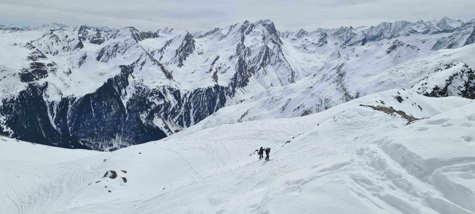 Von unten weg ausreichend Schnee und wegen der gesetzten Verhältnisse, bzw. auch der gut eingefahrenen Hänge ist Steinberührung kein Thema.