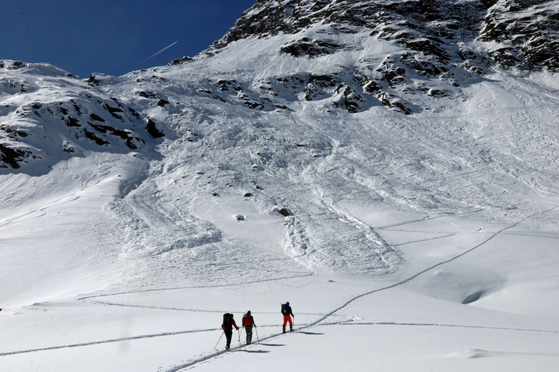 - Bei der Abfahrt vom Eiskögele zur Langtalereckhütte muss man sehr gut auf Steine achten