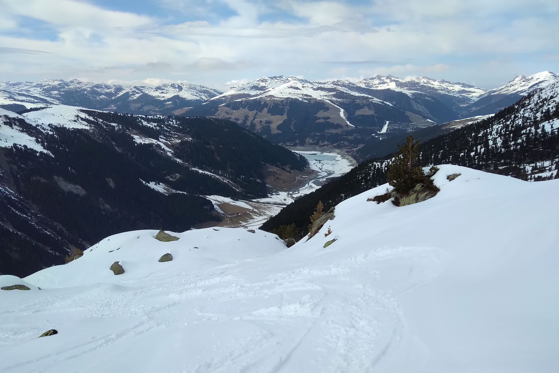 Kurz vor dem Skidepot am Grat, hinten der Speicher Durlaßboden: