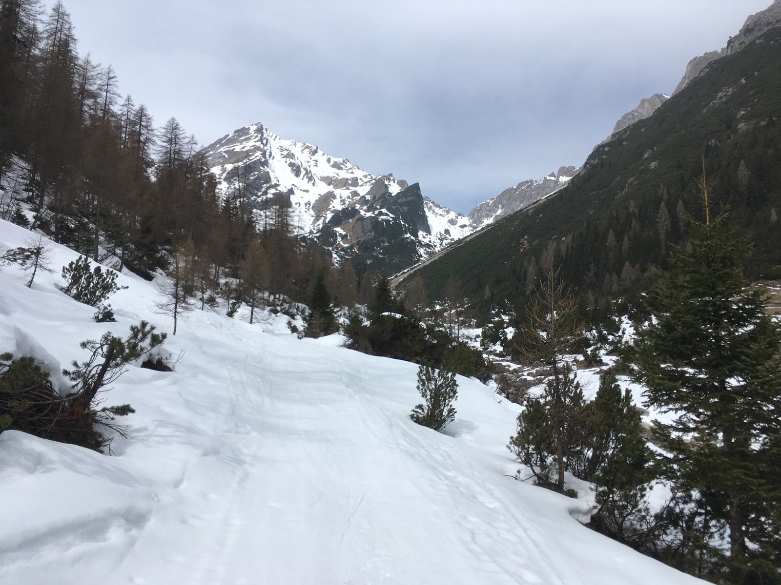 Nach Verlassen des Skigebiets im Bereich der Latschen-"Bobbahn":