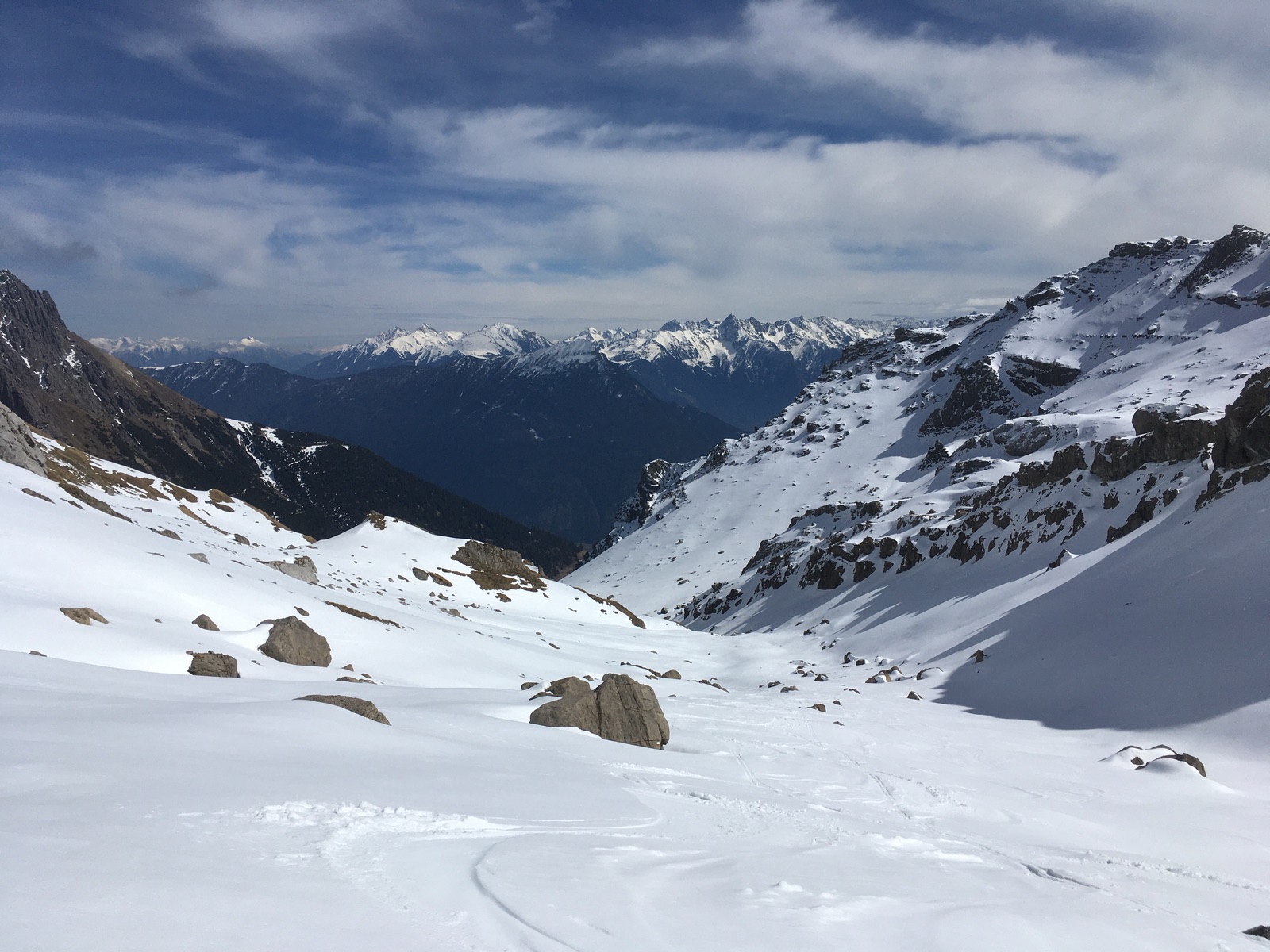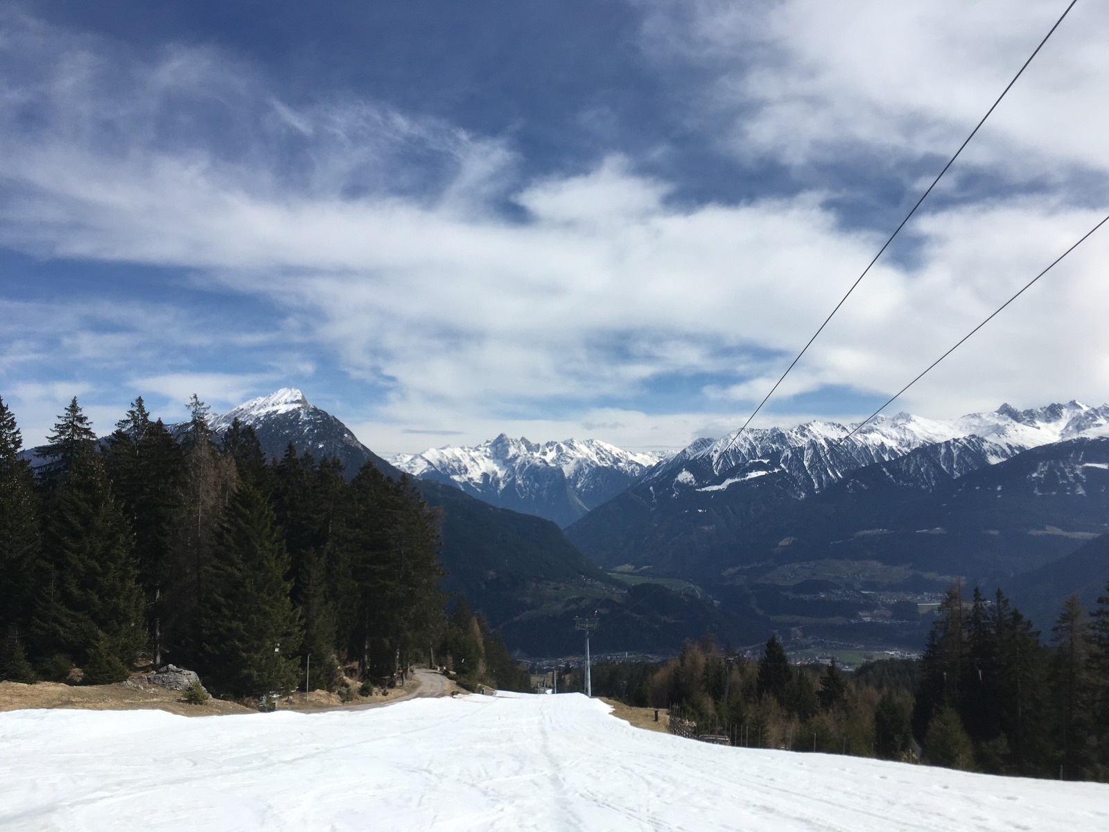 Gestern konnte ich das Zwischenhoch für eine Skitour ausnutzen: Der Imster Muttekopf von Hochimst nach Saisonende der Lifte, d.h. ohne Liftunterstützung. Die Piste hatte gestern bis auf den ersten Hang noch eine gute Schneeauflage - dürfte aber mit Regen und Wärme rasch größere Lücken geben. Ab Ende des Skigebiets beim Malbach-SL gab es eine gut eingefahrene Spur durch die Latschen in der Art einer "Bobbahn". Landschaftlich gerade ab der (geschlossenen) Muttekopfhütte ansprechend. Es zieht sich aber und gerade der letzte Steilhang hoch zur Muttekopfscharte fordert noch einmal Körner bei der starken Sonneneinstrahlung. Ich bin aus Zeitgründen nur bis zur Scharte gegangen - ohnehin sah es so aus, als ob man ab der Scharte nur noch ein kleines Stück vernünftig mit Skiern weitergehen könnte.