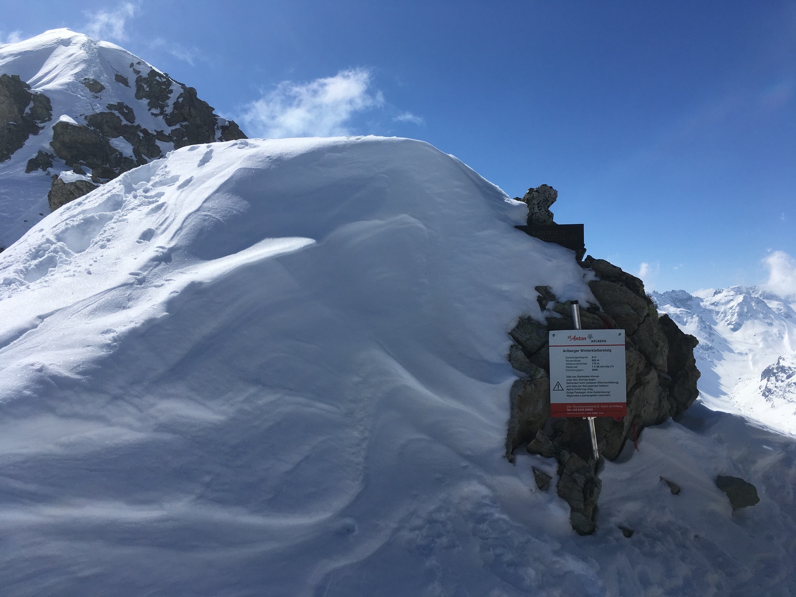 Gestern konnte ich endlich mal den "1. Arlberger-Winterklettersteig" machen. Am Morgen über die Rendlpiste hoch - extrem hart gefrorene Schneedecke. Schon nach kurzem Anstieg bei einer Steilstufe sogar neben der Piste merkte ich, warum man die Harscheisen am besten gleich anlegt und das im Flachen macht ... Ab ca. der Bergstation der Rendlbahn dann mit einigem Betrieb durch das Skigebiet und zuletzt den Freeridehang hoch zur Bergstation der Riffelbahn II. Natürlich geht es auch gemütlicher mit der Auffahrt mit der Rendlbahn (Tourengeherticket) bzw. gleich bis ganz hoch mit den Liften. Vor dem Arlberger Winterklettersteig bin ich noch auf den offenbar namenslosen Gupf P. 2.700, der in der AV-Karte oberhalb der Bergstation verzeichnet ist.