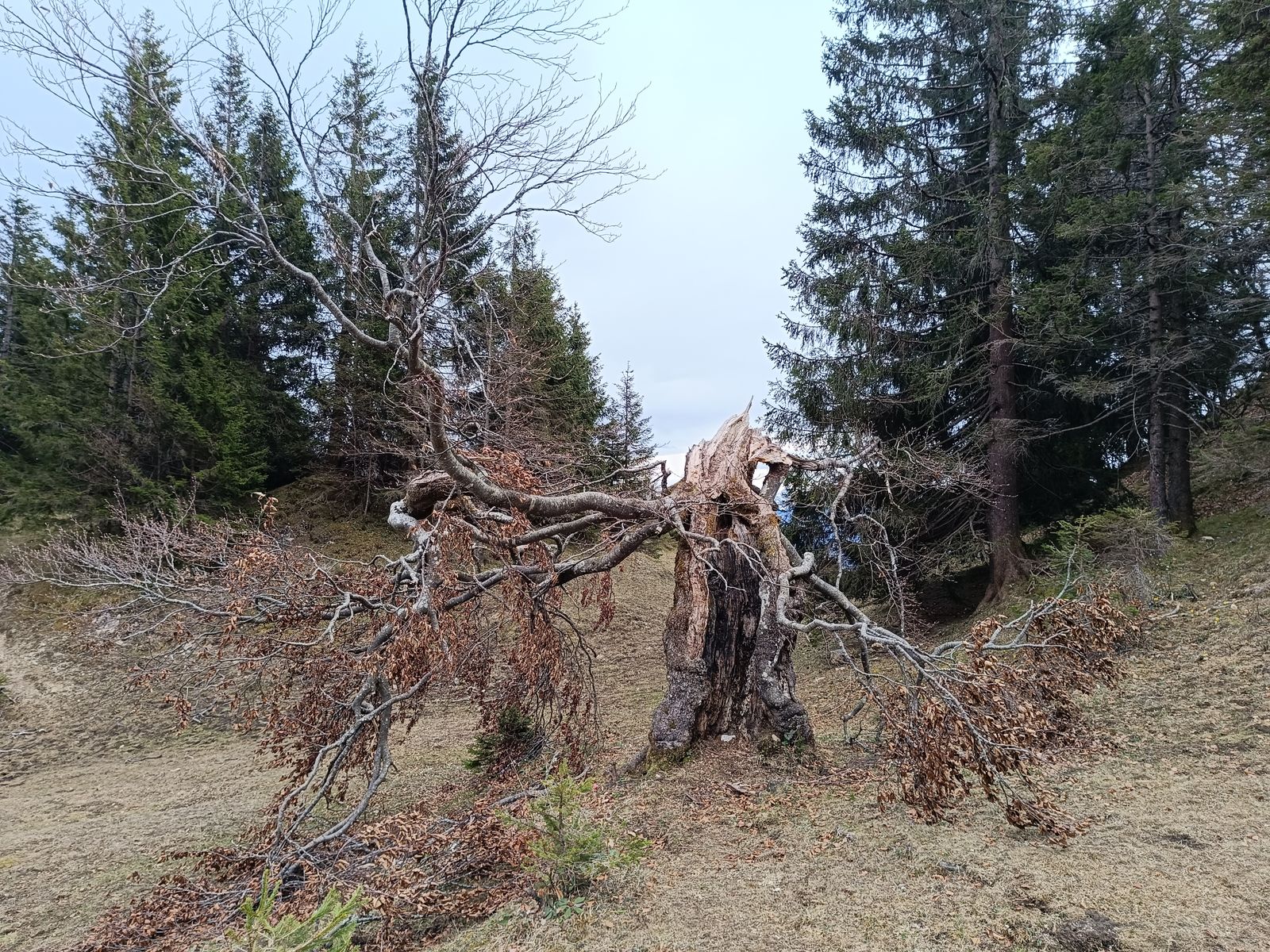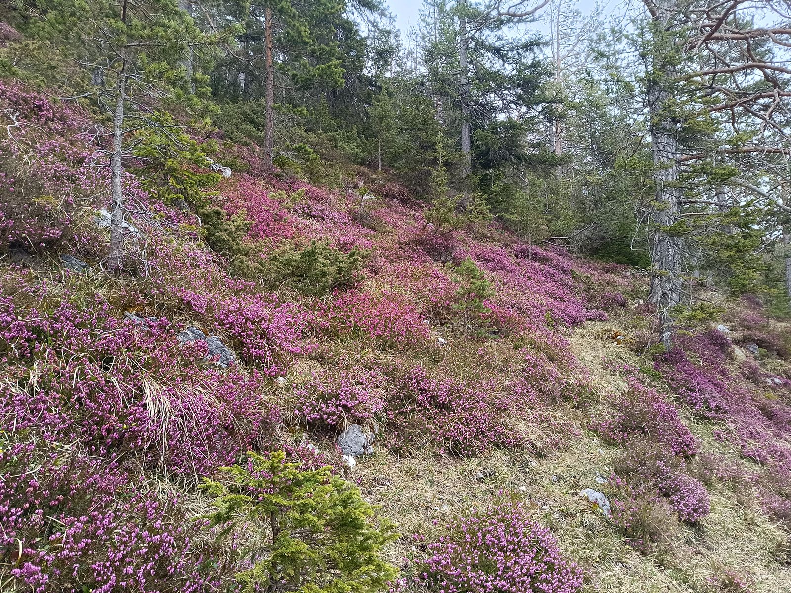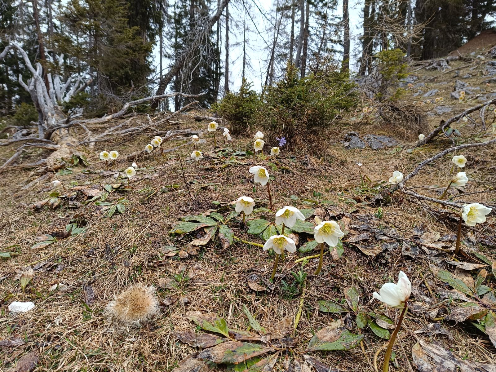 Nachdem momentan die Skitourenbedingungen durch die fehlende nächtliche Abstrahlung und den Wolkenstau am Hauptkamm wohl eher bescheiden sind, hab ich in den letzten Tagen einige lohnende, schneefreie Wanderungen (Rehleitenkopf von Flintsbach, Veitsberg von Süden) gemacht. Heute war ich auf den oben genannten Gipfeln. Route: PP - Buchackeralm - Hundsalmjoch - Köglhörndl - Höhlensteinalm - Feuerköpfl - Bärenbad - PP. Neben der Hauptroute gibt es viele oft unbeschliderte und manchmal auch nicht markierte Varianten, die man nach Lust und Laune kombinieren kann. Die Anforderungen gehen dabei nicht über T3 hinaus (oder man hat sich verlaufen). 1300 Hm, aber recht lange Strecke; daher 6-8 Stunden Gehzeit. Abschnittsweise vor allem im Aufstieg sehr steil. Die komplette Tour ist schneefrei und trocken. Botanisches Glanzlicht ist momentan die Schneerosen-Blüte im Abstieg vom Köglhörndl. Auch Schusternagerl (Frühlingsenzian) zeigen sich schon.