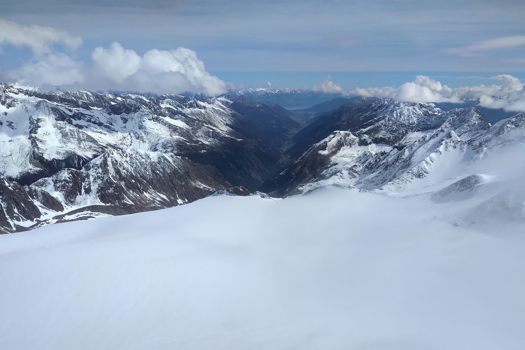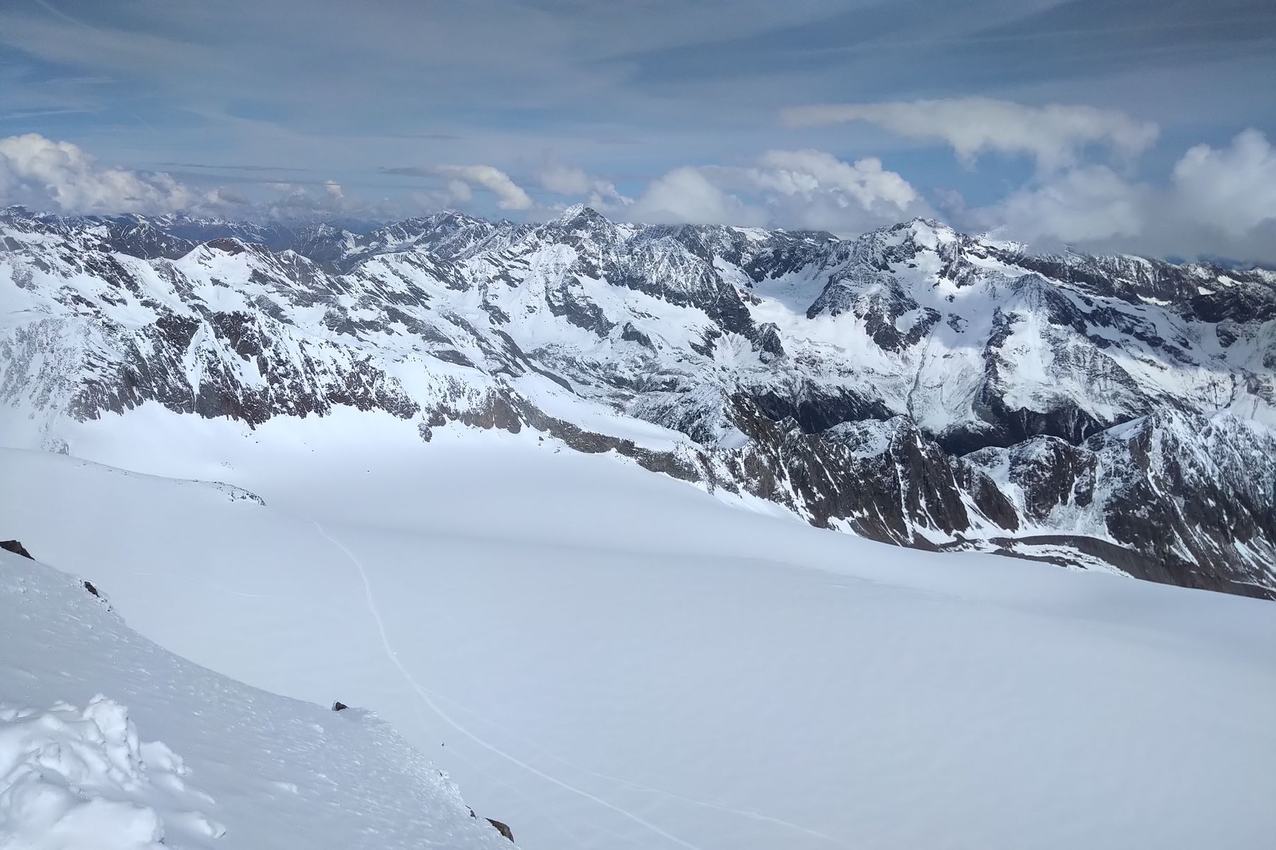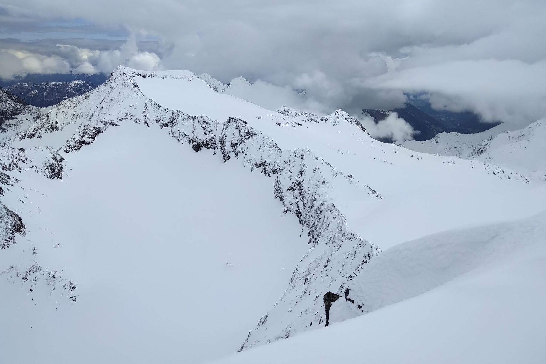 Später hab ich mich noch mit einer anderen Einzelgängerin zusammengetan, wir sind noch den direkten Aufstieg zum Wilden Pfaff hoch. Die Sicht hat dann eingetrübt, aber immerhin konnte man noch das Stubaital, den Wilden Freiger und Müllerhütte/Becherhaus sehen!