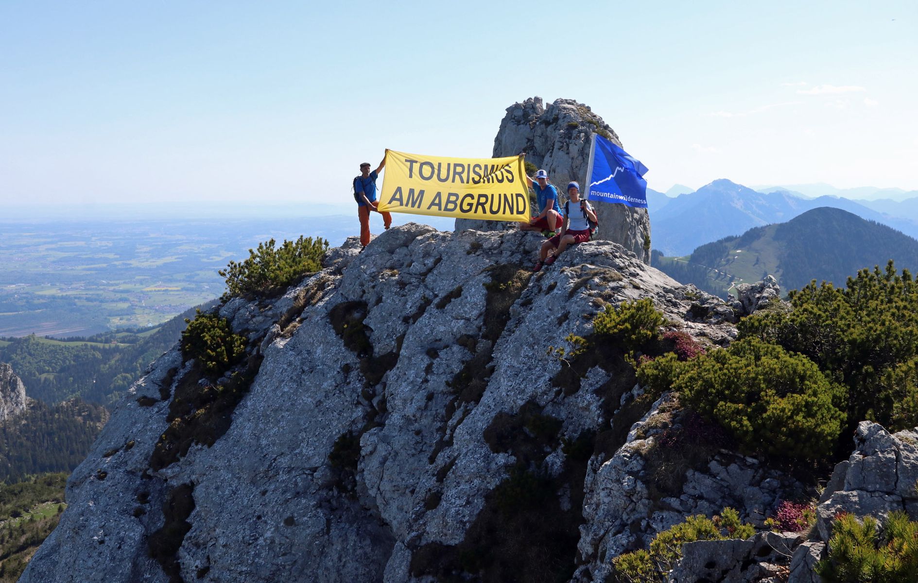 Zum gestrigen 'Tag zum Schutz der Alpen' unseres Netzwerks "Protect Alpine Nature" protestieren wir von Mountain Wilderness Deutschland auf der Kampenwand gegen den geplanten Neubau der Seilbahn. Die wunderschöne Grat-Tour war auch nordseitig absolut trocken und schneefrei.