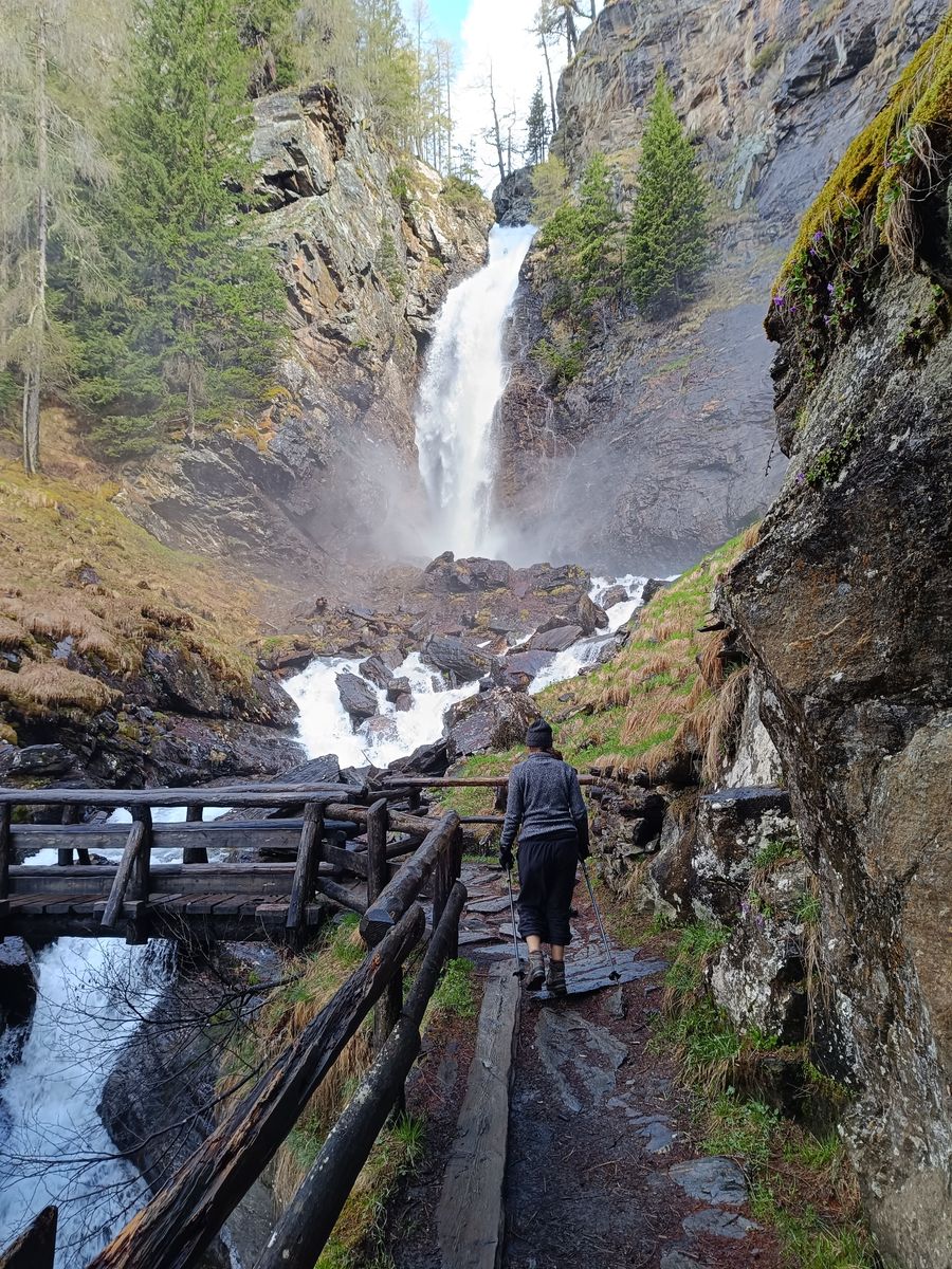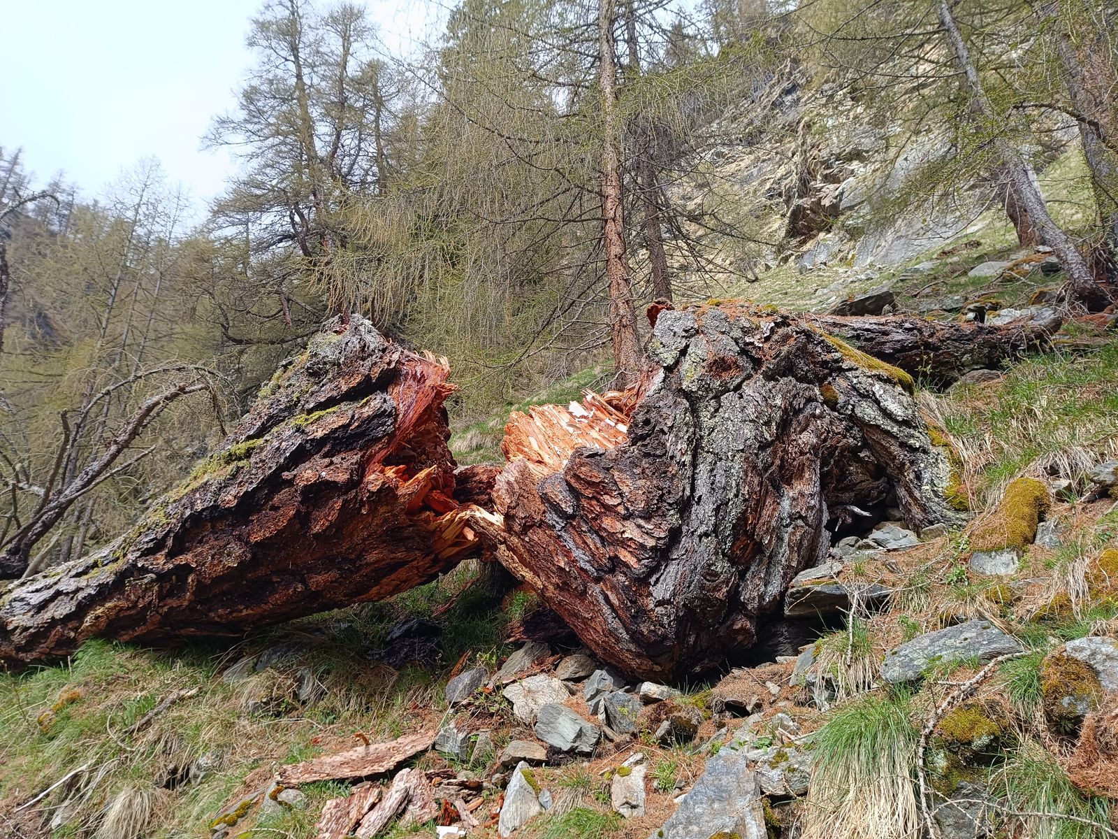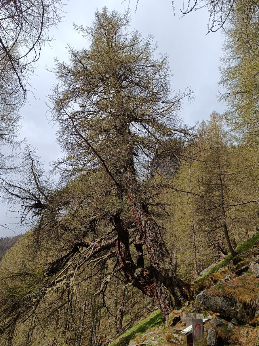 Wir waren am Freitag Abend bei einer Veranstaltung in der Gegend, sind nachts noch zum PP hochgefahren und haben da im Auto geschlafen. Heute ging es dann über die Saent-Wasserfälle und den "Weg der monumentalen Lärchen" zum Picknickplatz "La Palina" und mit ein paar Varianten auf ähnlichem Weg zurück. Wie schon angedeutet ist die Tour einfach wunderschön und kann auch noch bis zum Rifugio Dorigoni und zu den Sternai-Seen ausgedehnt werden. Das ist im Sommer sehr zu empfehlen und ich habe die Tour letztes Jahr im August auch schon hier beschrieben. Insbesondere die gewaltigen alten Lärchen sind wirklich sehenswert wobei leider der in meinen beeindruckendste Baum den Winter nicht überstanden hat.