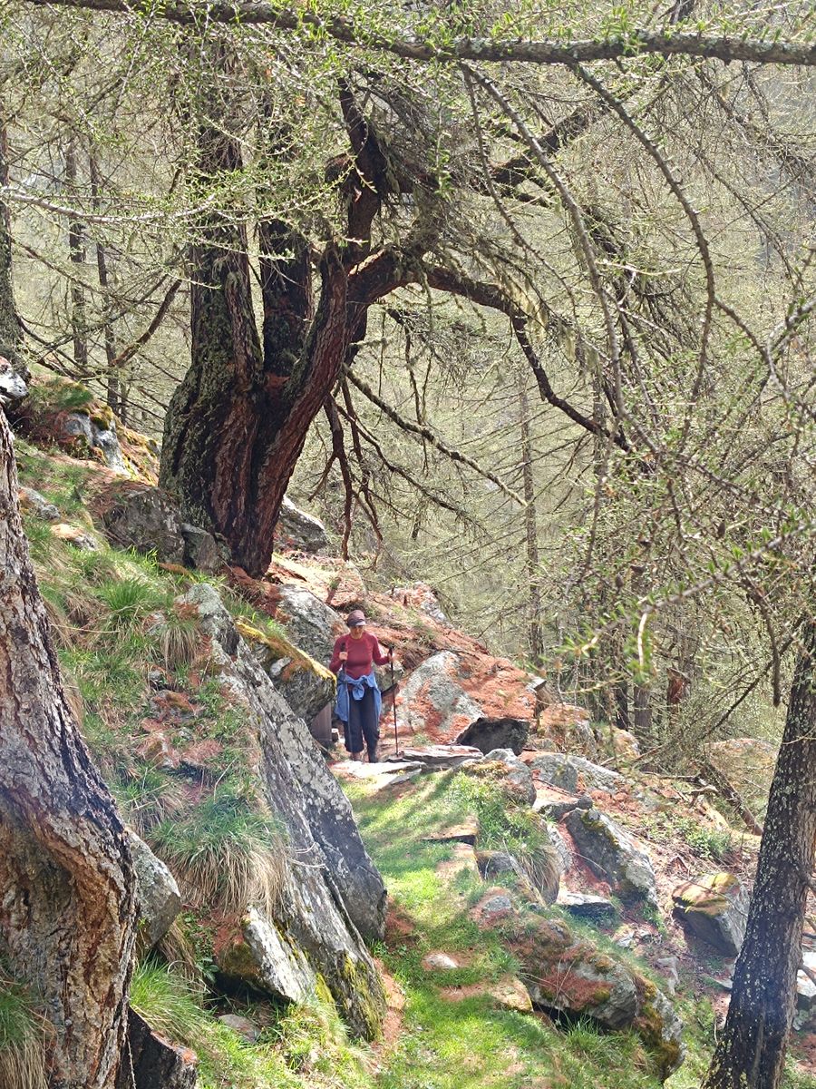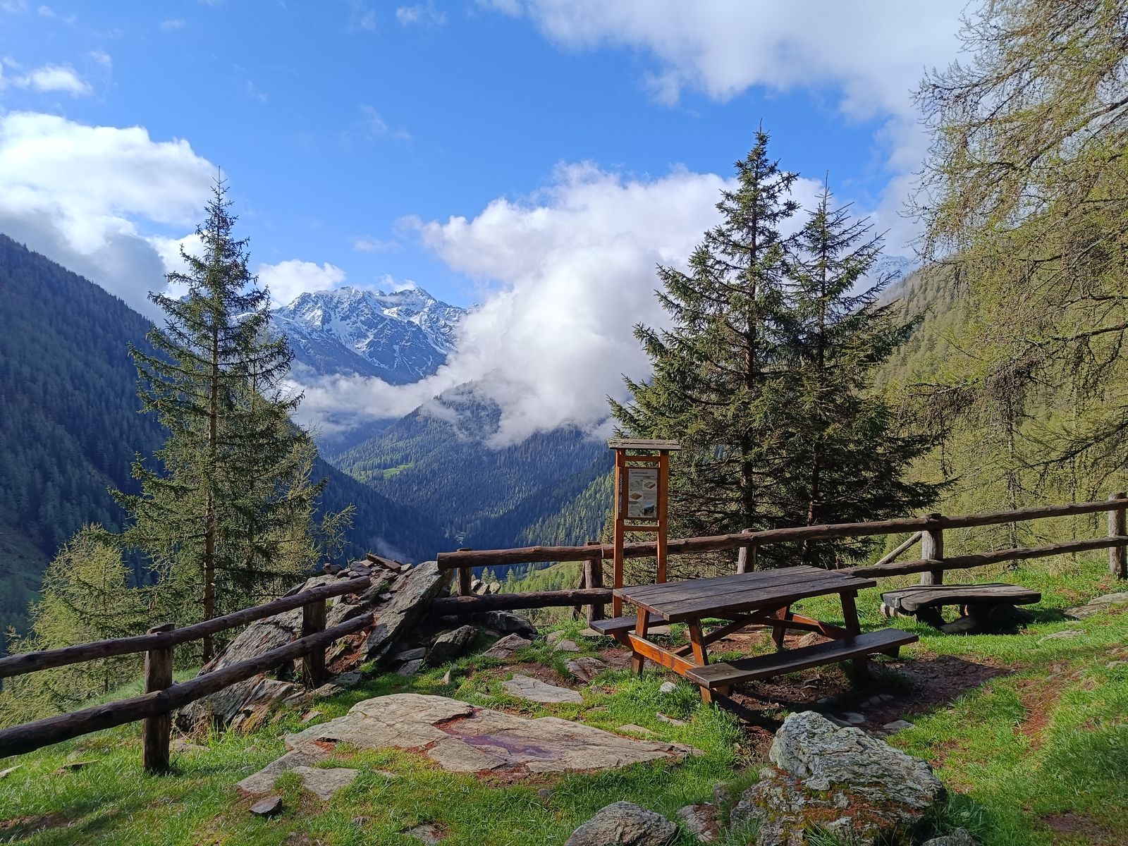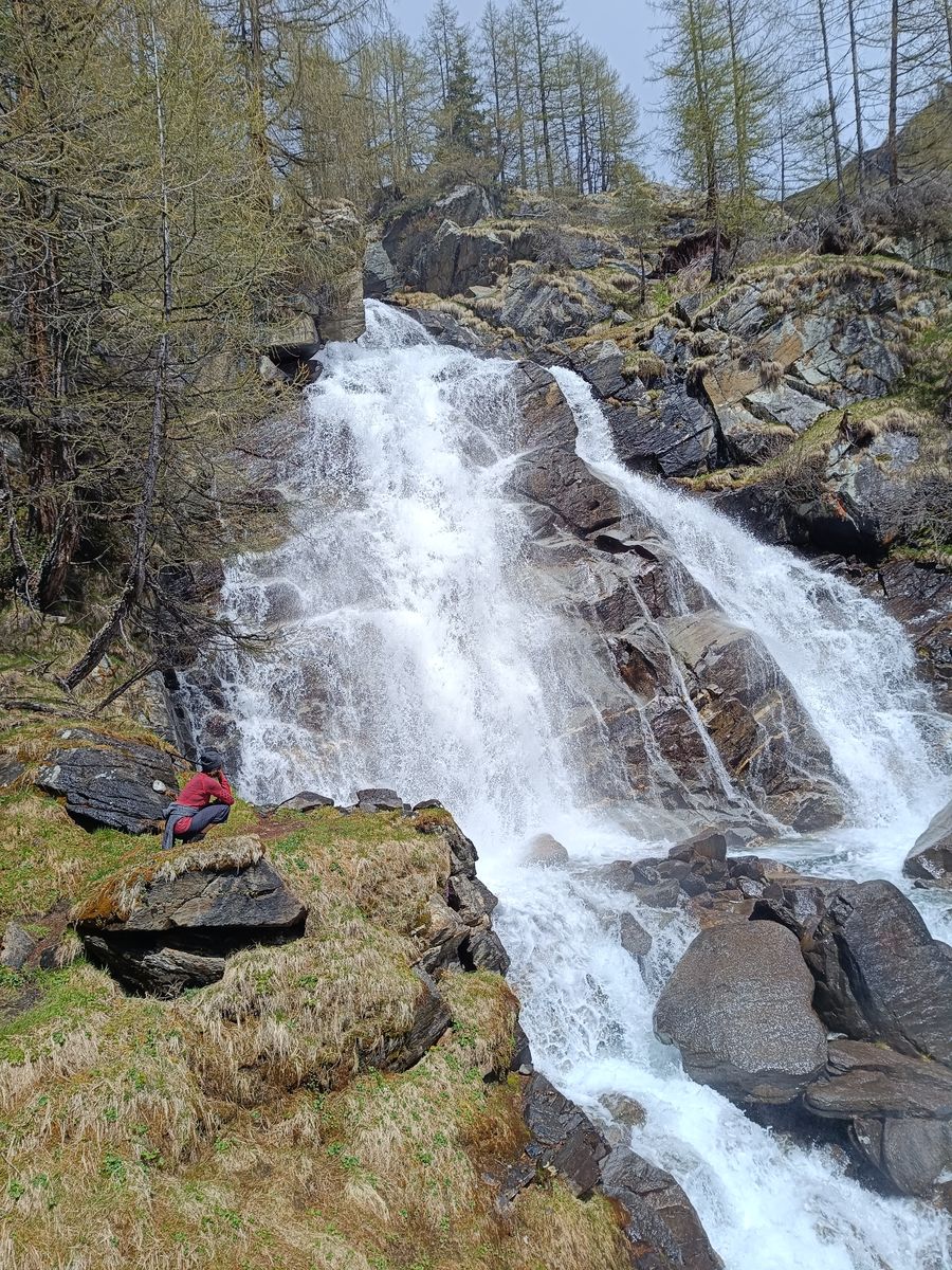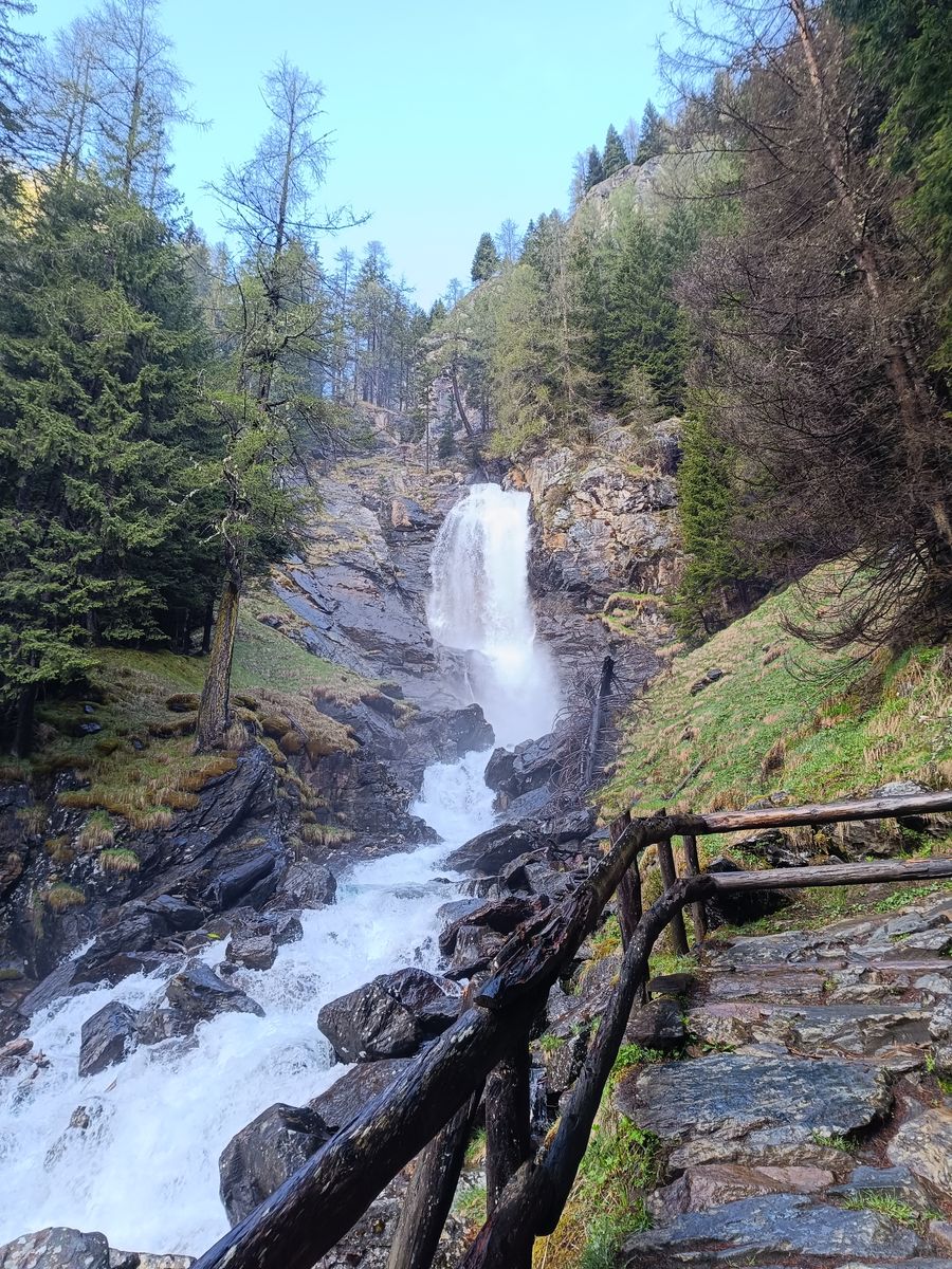 Wir waren am Freitag Abend bei einer Veranstaltung in der Gegend, sind nachts noch zum PP hochgefahren und haben da im Auto geschlafen. Heute ging es dann über die Saent-Wasserfälle und den "Weg der monumentalen Lärchen" zum Picknickplatz "La Palina" und mit ein paar Varianten auf ähnlichem Weg zurück. Wie schon angedeutet ist die Tour einfach wunderschön und kann auch noch bis zum Rifugio Dorigoni und zu den Sternai-Seen ausgedehnt werden. Das ist im Sommer sehr zu empfehlen und ich habe die Tour letztes Jahr im August auch schon hier beschrieben. Insbesondere die gewaltigen alten Lärchen sind wirklich sehenswert wobei leider der in meinen beeindruckendste Baum den Winter nicht überstanden hat.