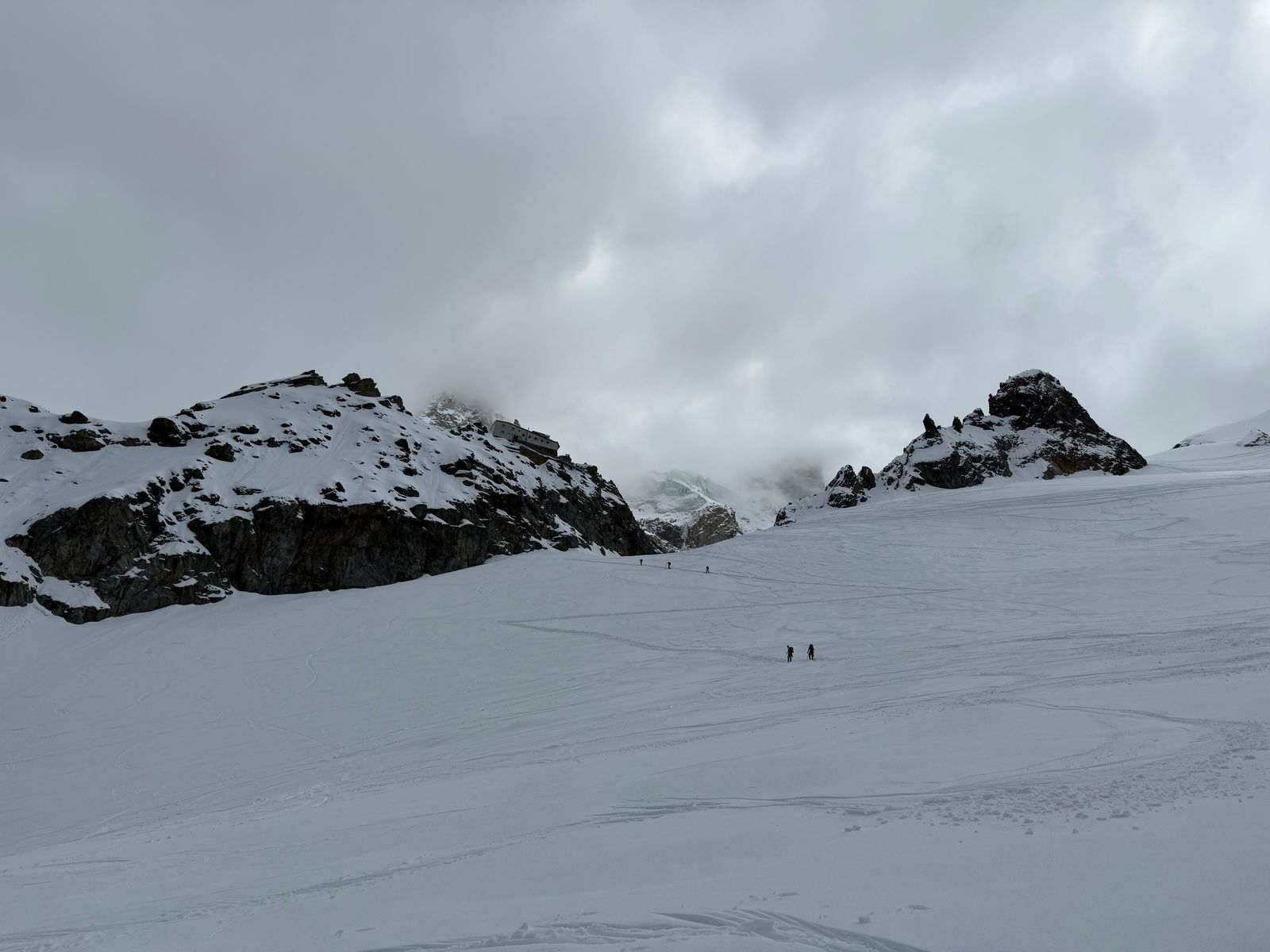Nach der Jonction geht’s nochmal steil aufwärts zur Hütte, welche ganz oben auf einem Felsvorsprung liegt und über eine Art Klettersteig zu erreichen ist (die Ski bleiben unten).