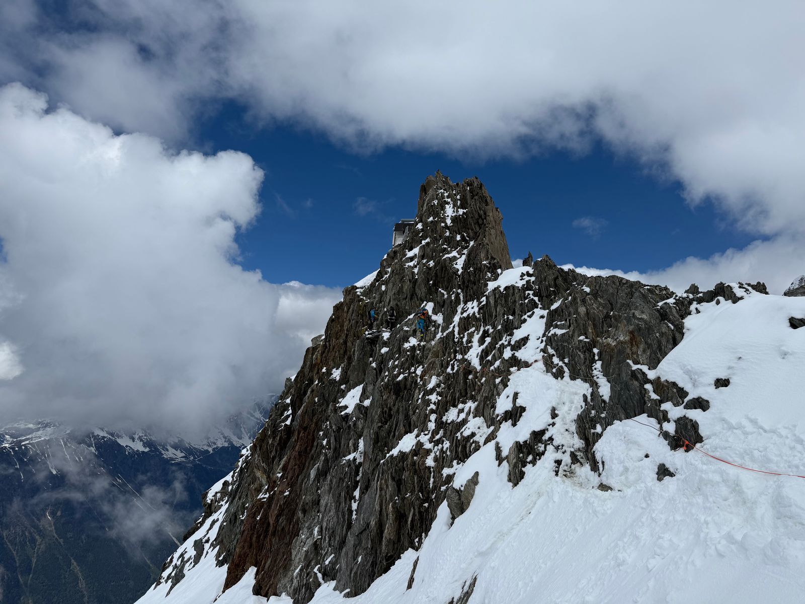 Der Weg über die Plateaux ist technisch einfacher, aber aufgrund von Eisschlag und Serac-Abbrüchen gefährlicher. In divsersen Führern oder Beschreibungen wird daher davon abgeraten und nur noch der Weg über den Nordgrat empfohlen, welcher jedoch steile Aufschwünge und je nach Verhältnissen Blankeispassagen zu bieten hat, was auch derzeit der Fall ist. Gute Beschreibungen und aktuelle Berichte diesbezüglich finden sich übrigens auch auf der französischen Seite Camptocamp (https://www.camptocamp.org/rou…lets-itineraire-classique).
