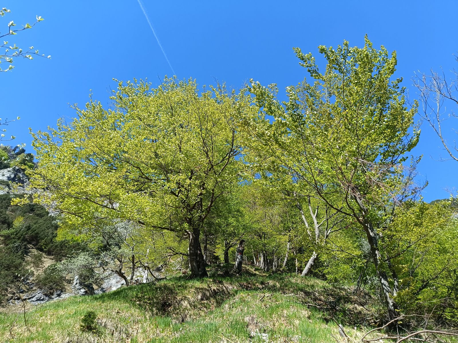 Zunächst bin ich über Wolfsschlucht auf den Schildenstein und dann via Platteneck und -alm zum Reitstein. Ab dem Schildenstein ist die Route nicht mehr beschildert oder markiert, ab der Plattenalm sind oft nicht einmal Pfandspuren vorhanden. Dennoch ist die Orientierung bei guter Sicht unschwierig, da man sich einfach nach den Grenzsteinen am Kamm richtet. Das Stück nach der Alm ist wirklich unwirklich schön - man wandelt durch schönsten Wald und an einer Stelle habe ich immer den Eindruck durch einen "Buchenkathedrale" zu schreiten. Vom Reitstein geht es weiter zur Bodigbergalm, wobei ich den westlichen Weg um das Stacheleck empfehlen würde, da dieser deutlich schöner ist als der ostseitige. Von der Bodigbergalm bin ich über den Totengraben-Steig zur Königsalm und über die Gernalm zurück zum PP, aber natürlich nicht, ohne mir zuvor ein Saiblingsfilet bei der Fischzucht zu gönnen.