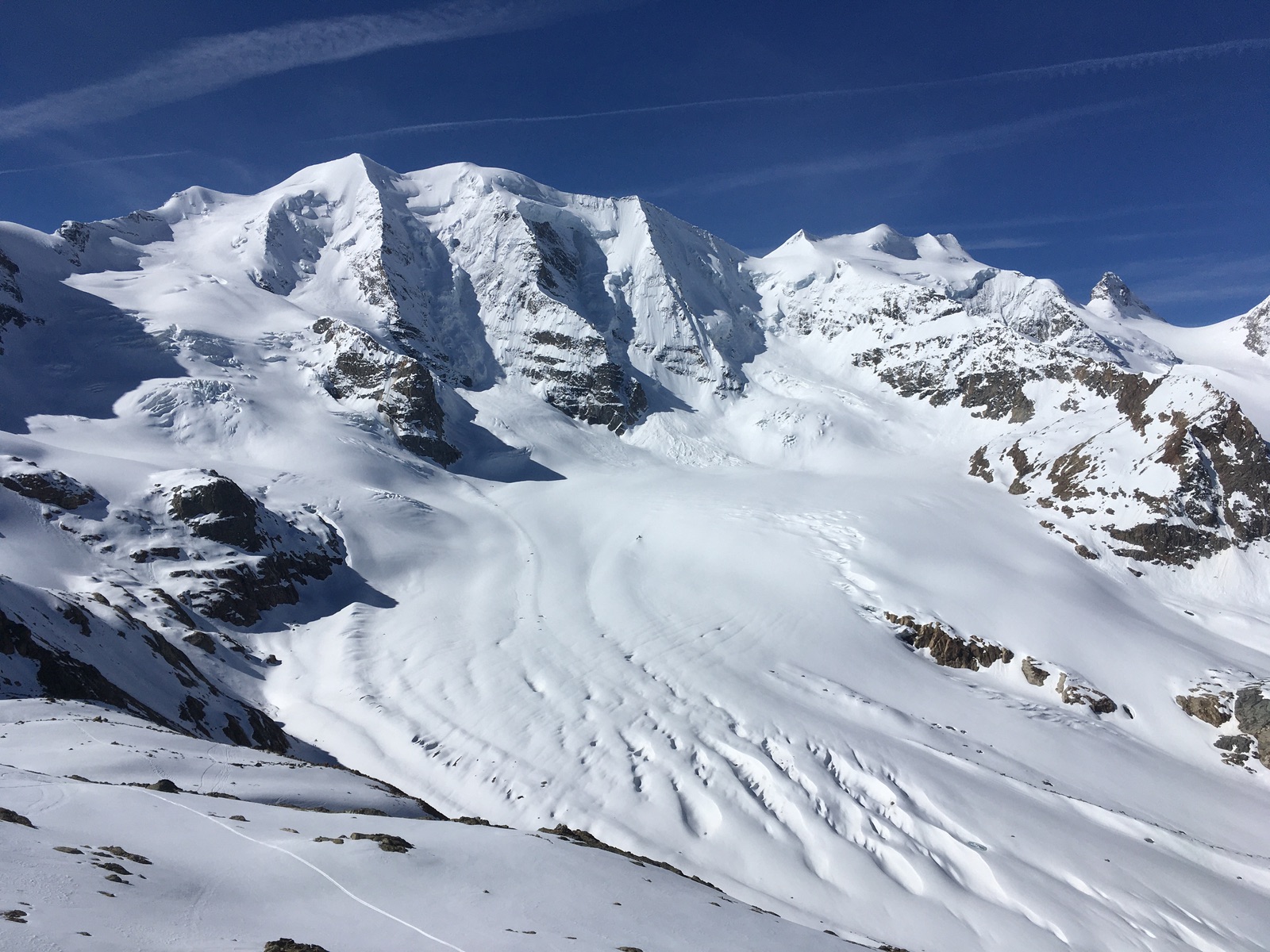 Blick vom Piz Zupo zum Piz Bernina - Sicht bis zur Monte Rosa (diese schon außerhalb des Fotos):