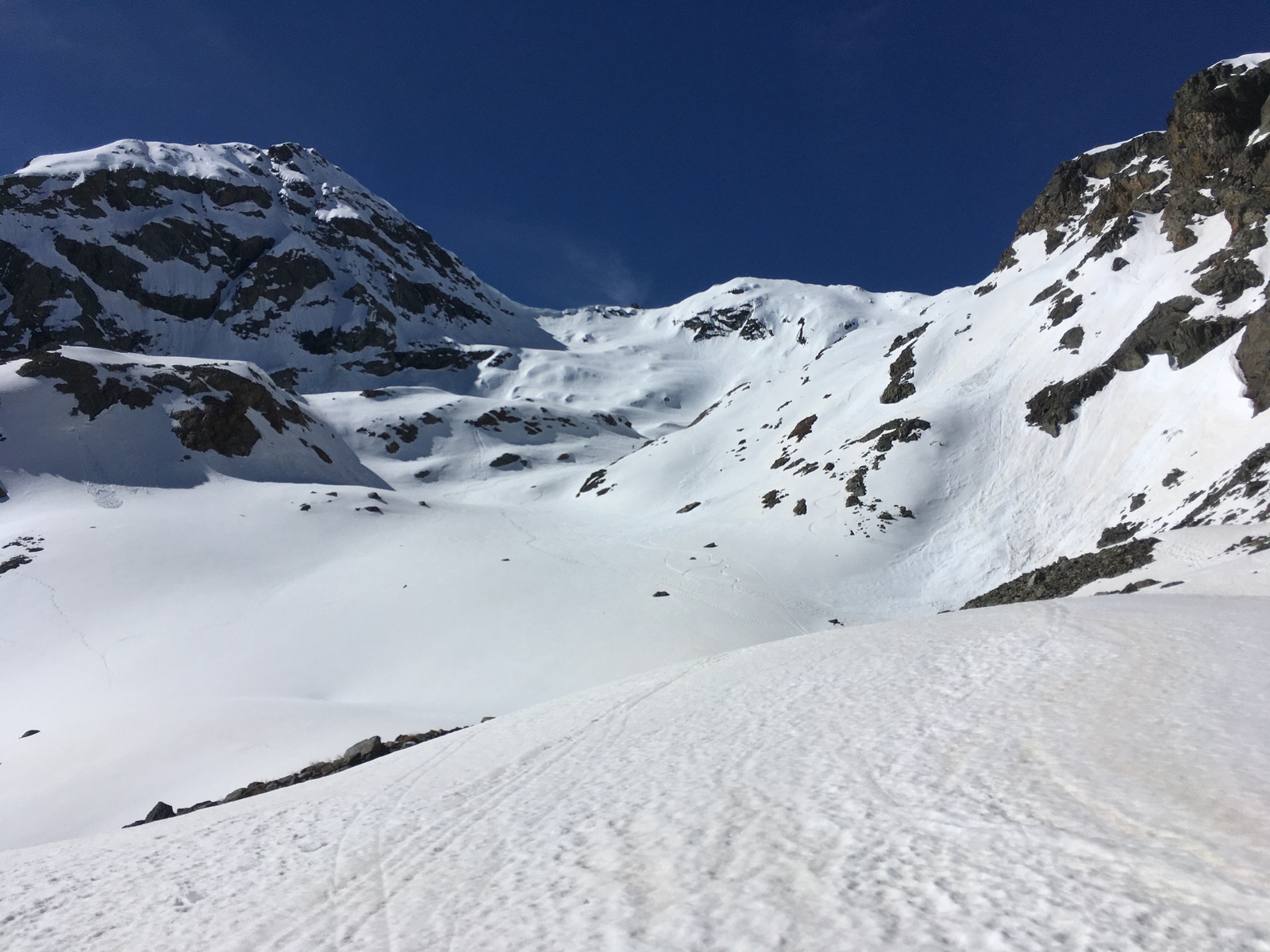 Schon nach der Querung auf ca. 2.600 m mit Blick auf den letzten Skianstieg: