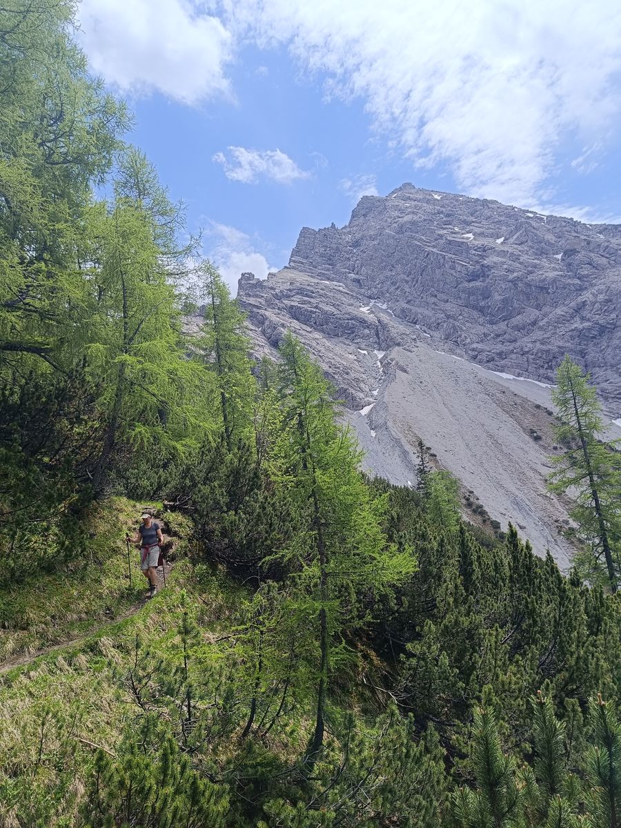 enttäuscht eigentlich nie. Heute haben wir die Überschreitung der Rappenspitze gemacht - eine landschaftlich vor allem wegen der Lärchenwälder und der Blumenwiesen herausragend schöne Tour und sogar sonntags einsam. Nur ein Kollege am Weg. Ich war natürlich schon öfter auf der Rappenspitze, aber der heutige Abstieg war neu für mich, da ich diesen Gipfel sonst immer in Touren mit anderen Startpunkten eingebunden habe (siehe Beiträge aus den letzten Jahren hierzu).