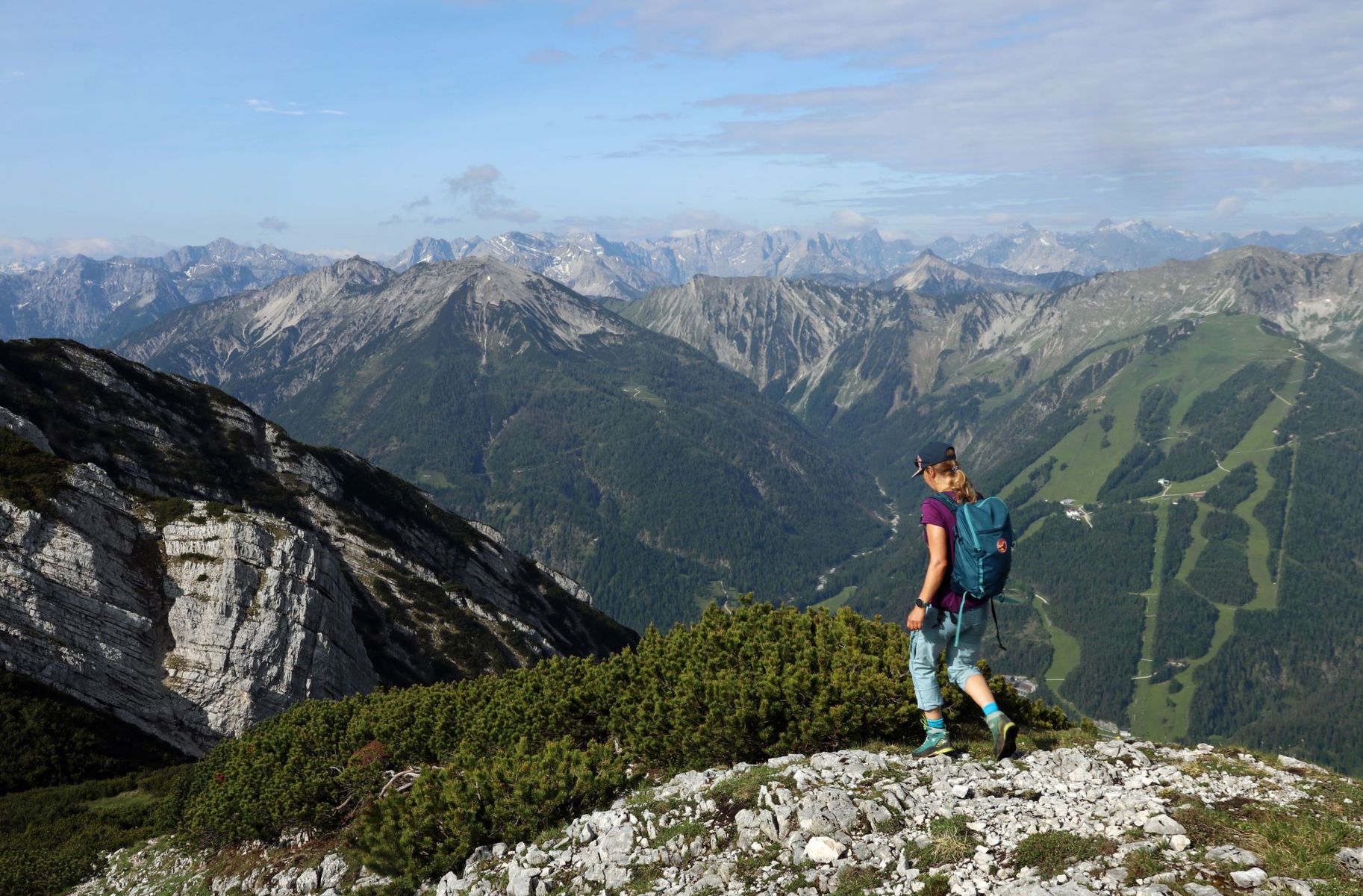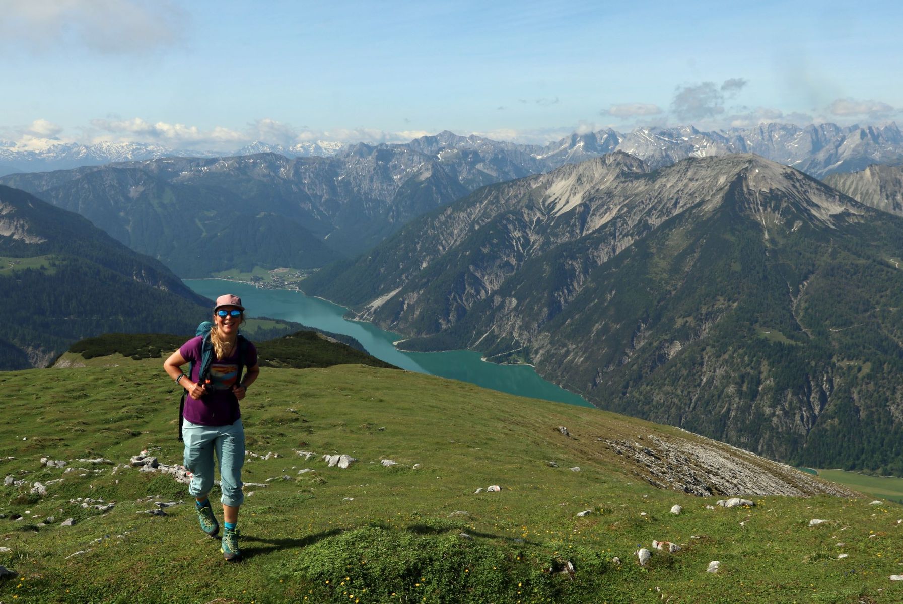 Die Überschreitung von Hochunnütz und Vorderunnütz ist meiner Meinung nach eine der schönsten Kammwanderungen nördlich des Inntals. Nach gut 1000 sportlichen Höhenmetern hat man den breiten Bergrücken erreicht uns ab jetzt großartige Blicke auf den Achensee und das gewaltige Karwendelgebirge. Im Süden glänzten gestern die noch winterlichen Gletscherflächen rund um den Olperer.