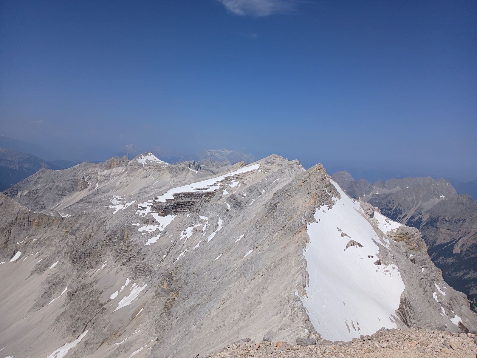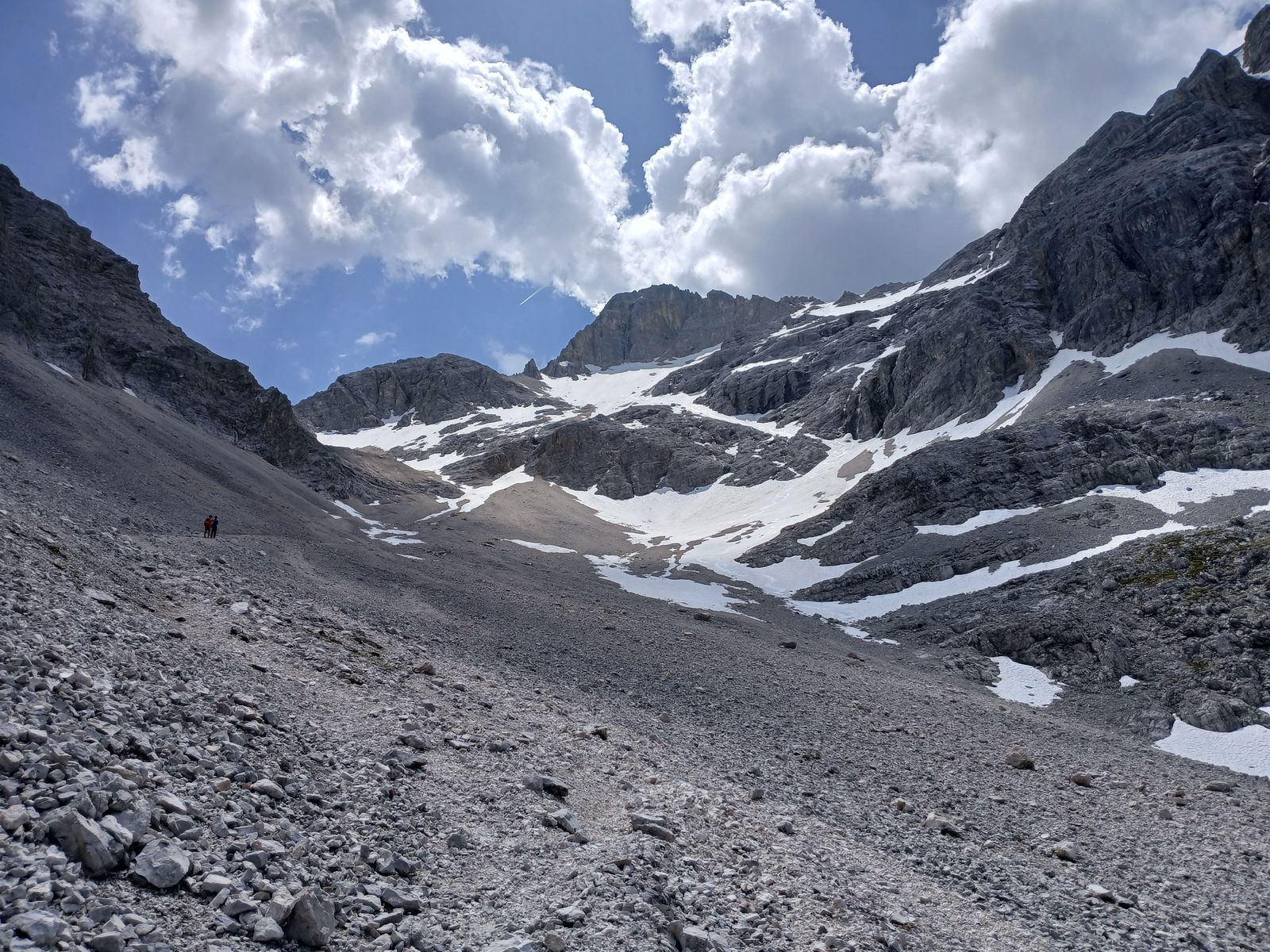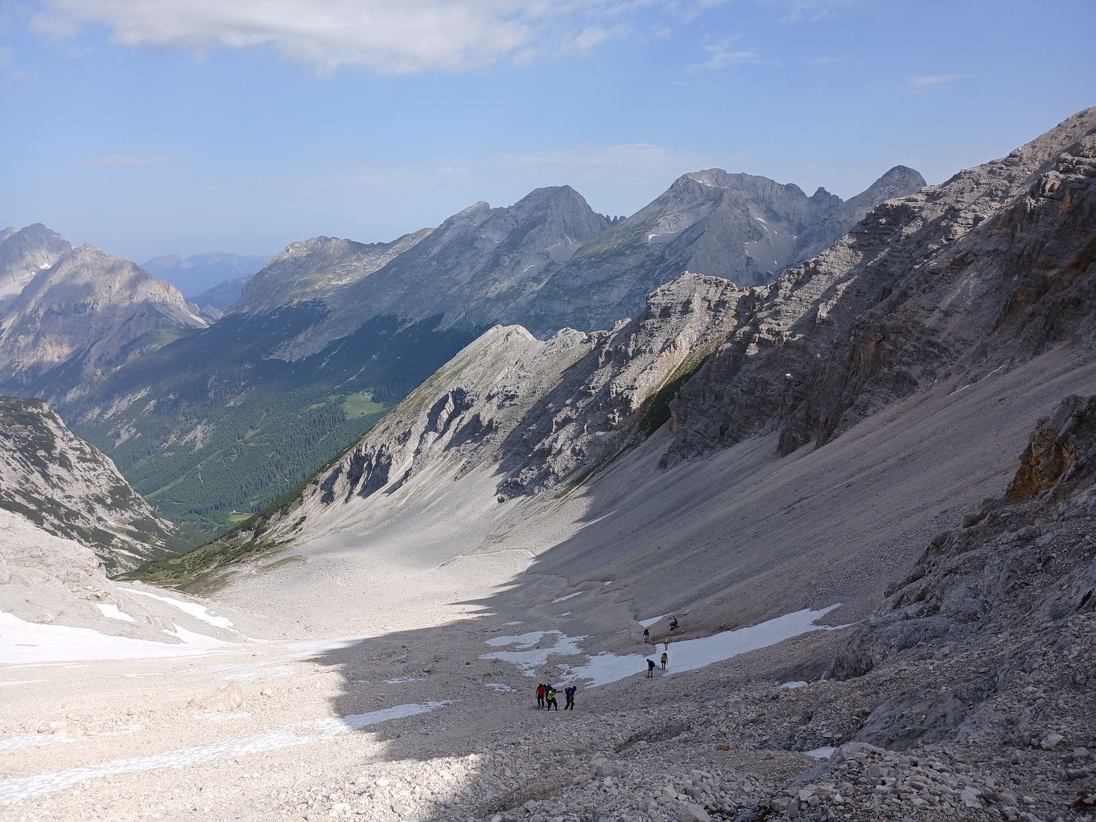 Ab Karwendelhaus ging es zu Fuß weiter zur Birkkarspitze, es sind noch viele Schneefelder ab 2000m.