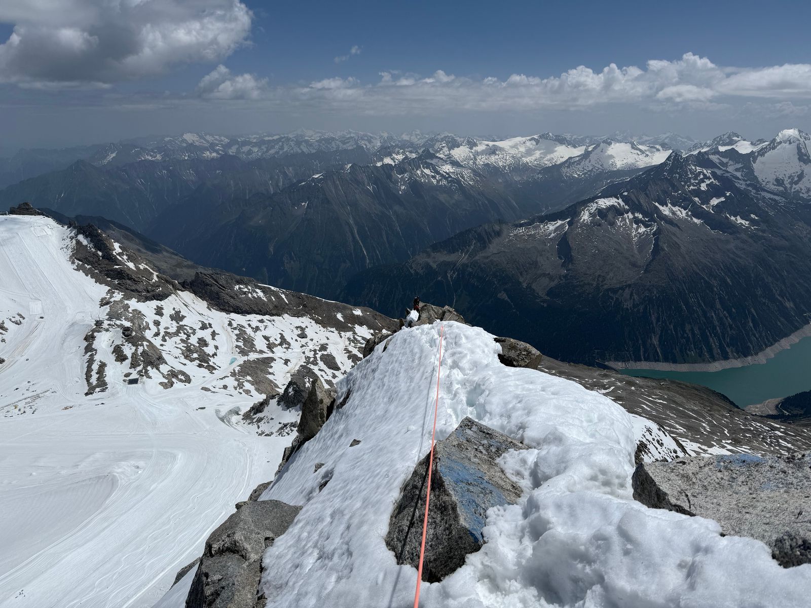 Wir haben die ganze Route durch gesichert, da noch viel weicher Schnee auf dem Grat liegt und man oft nicht weiß wie gut das alles noch hält.