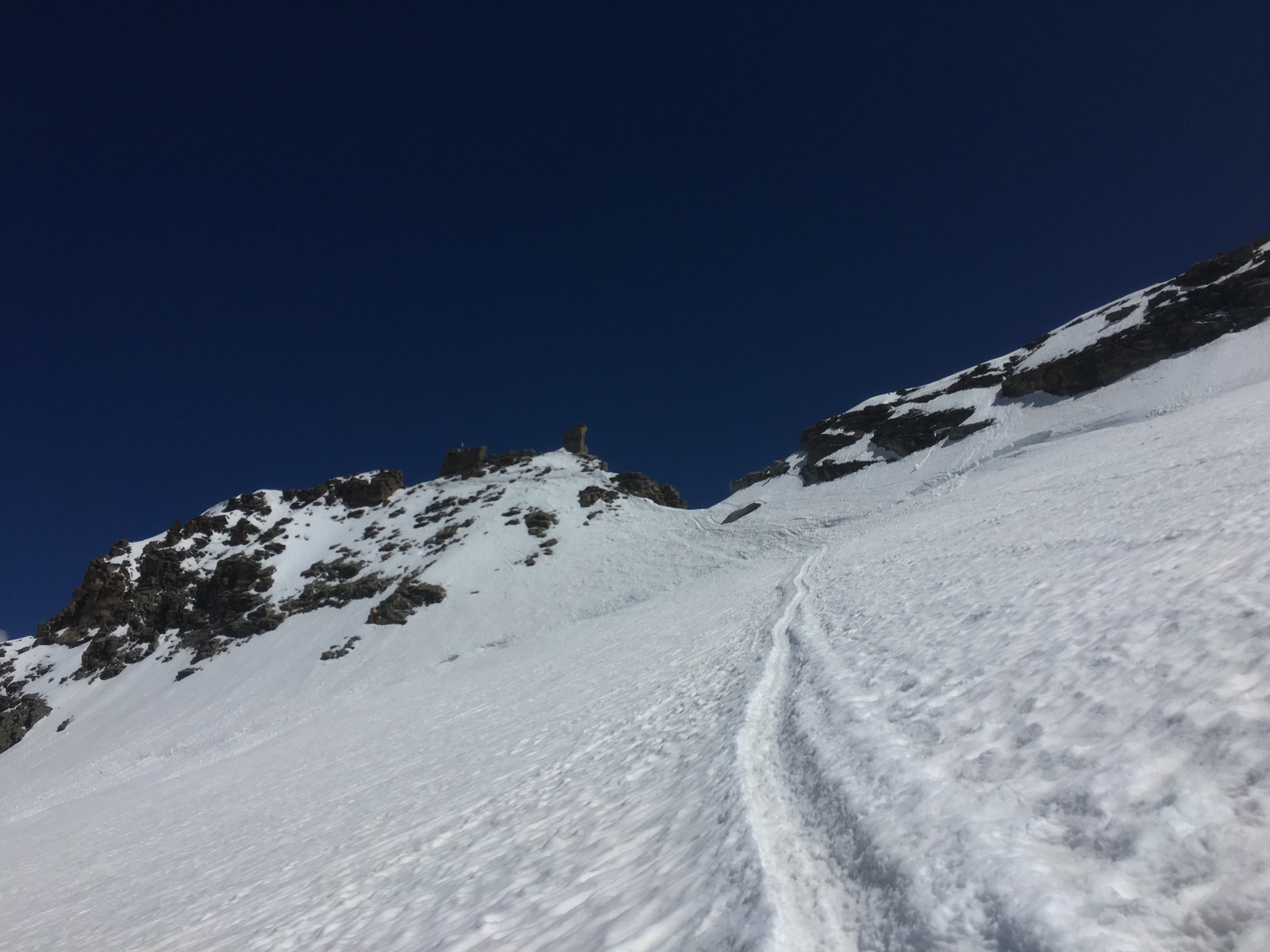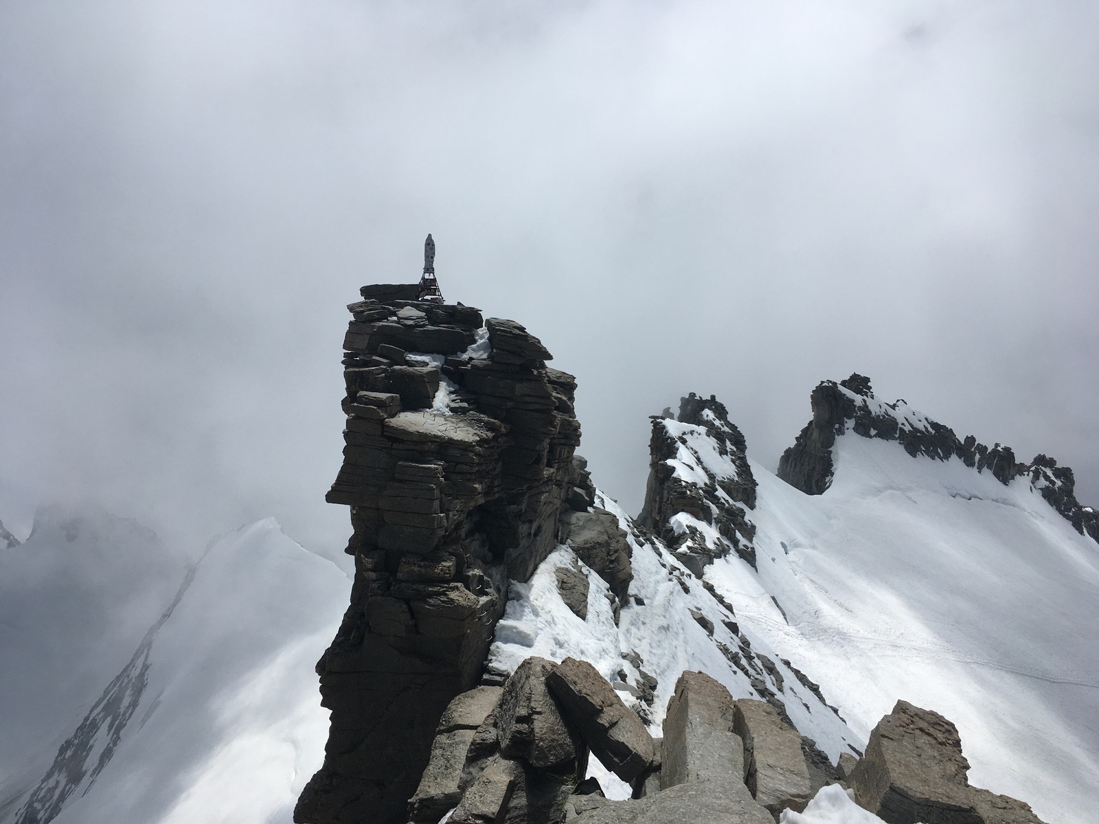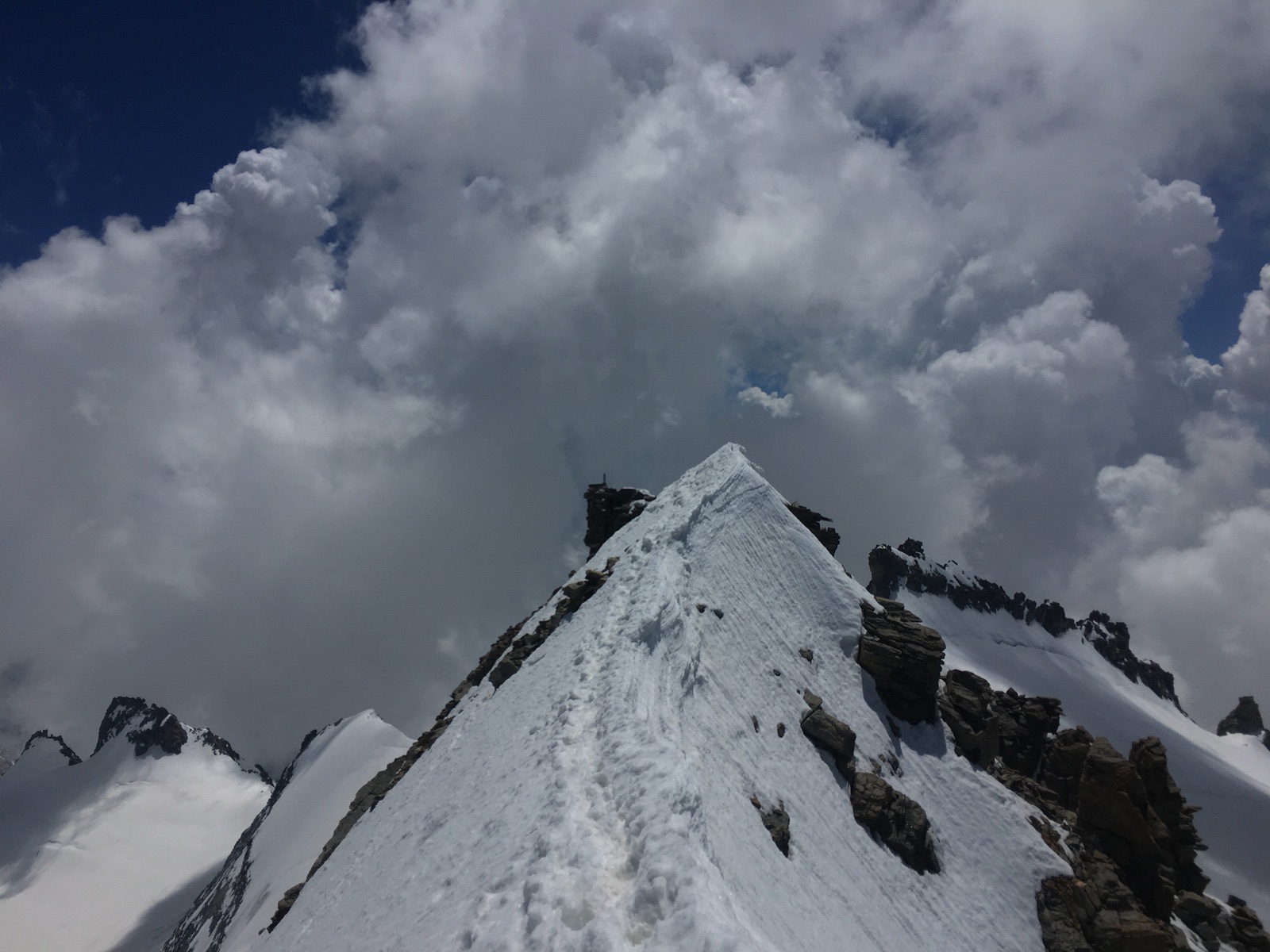 Etwas ausgesetzt ist der kurze Schnee-/Felsgrat zum höchsten Punkt, für Schwindelfreie aber kein Problem: