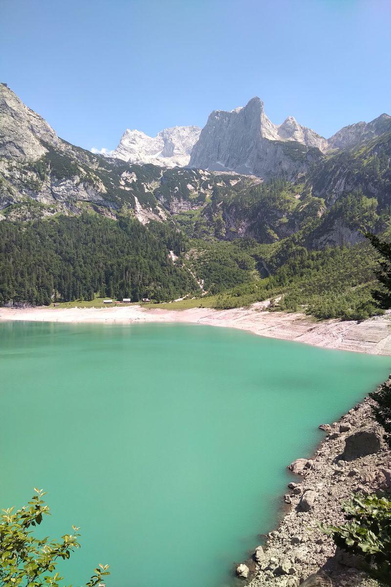 Beim Hinteren Gosausee, mit Blick auf Torstein. Dort wird's leerer, die meisten Spaziergänger drehen dort um: