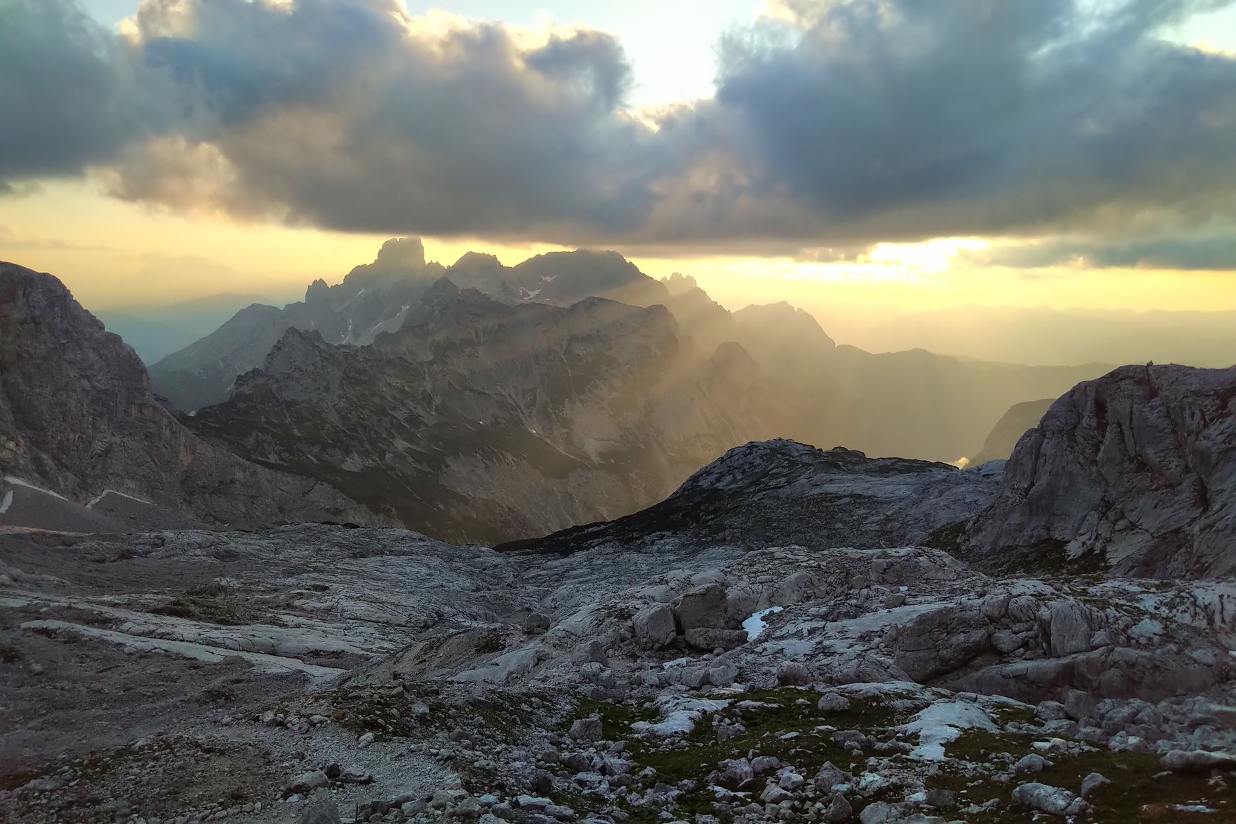 Am Nachmittag auf der Hütte wurde die Sicht besser, und der Dachstein kam zum Vorschein (ganz hinten):