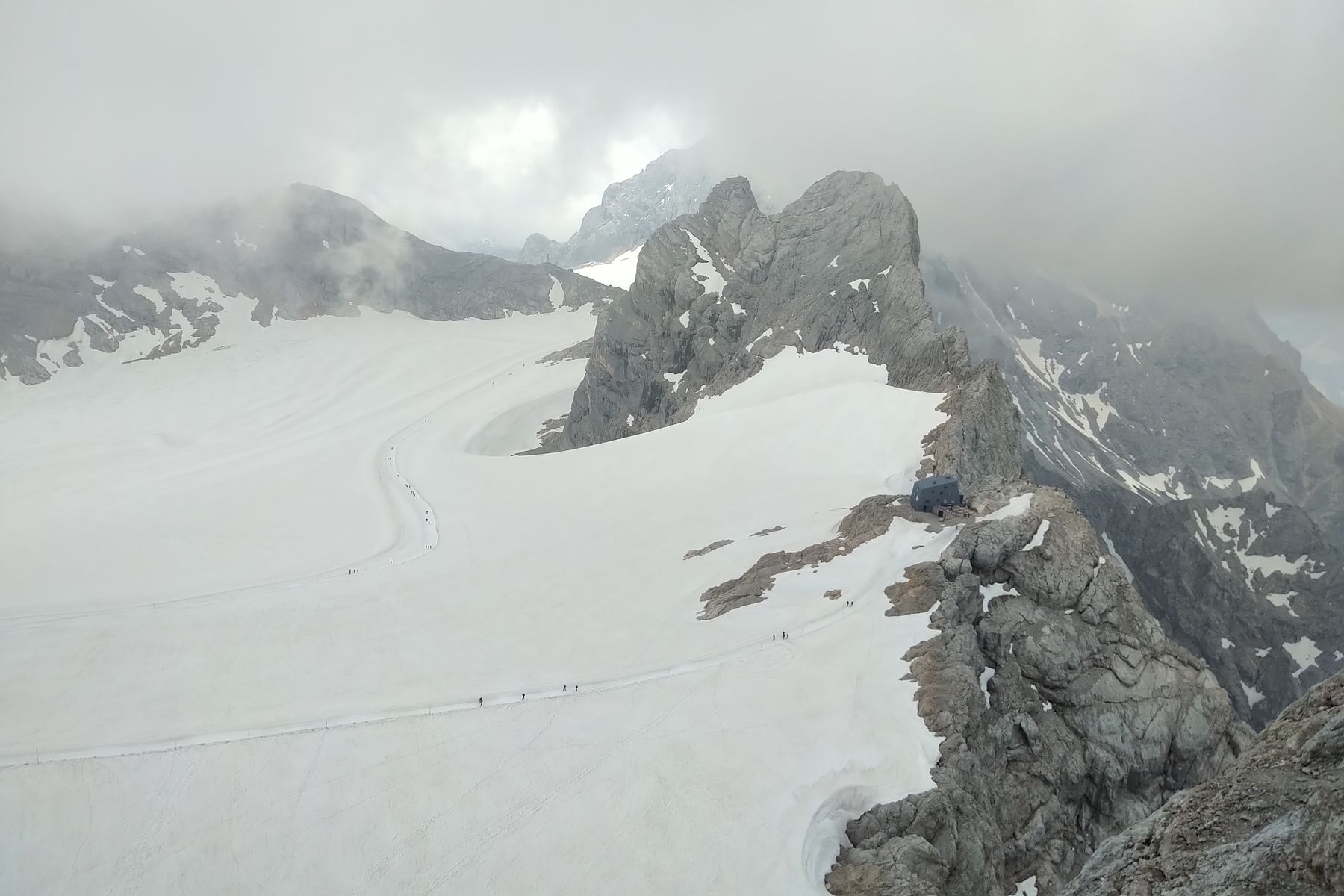 Die Dachstein-Runde am Freitag war sehr schön und abwechslungsreich! Auch wenn bei uns die Aussicht mäßig war. Nur beim Schulter-Anstieg hatten wir dank der Seilbahn massenweise Gegenverkehr (trotz schlechter Sicht). Ansonsten war am Freitag wenig los. Eventuell lohnt es sich, diese Runde andersherum zu machen. Die 4 Randspalten sind dort aktuell gut zu überwinden. Nur wenn man dann zur falschen Zeit am Schultersteig ist, kommen die Seilbahn-Leut wahrscheinlich schon im Abstieg entgegen ;)
