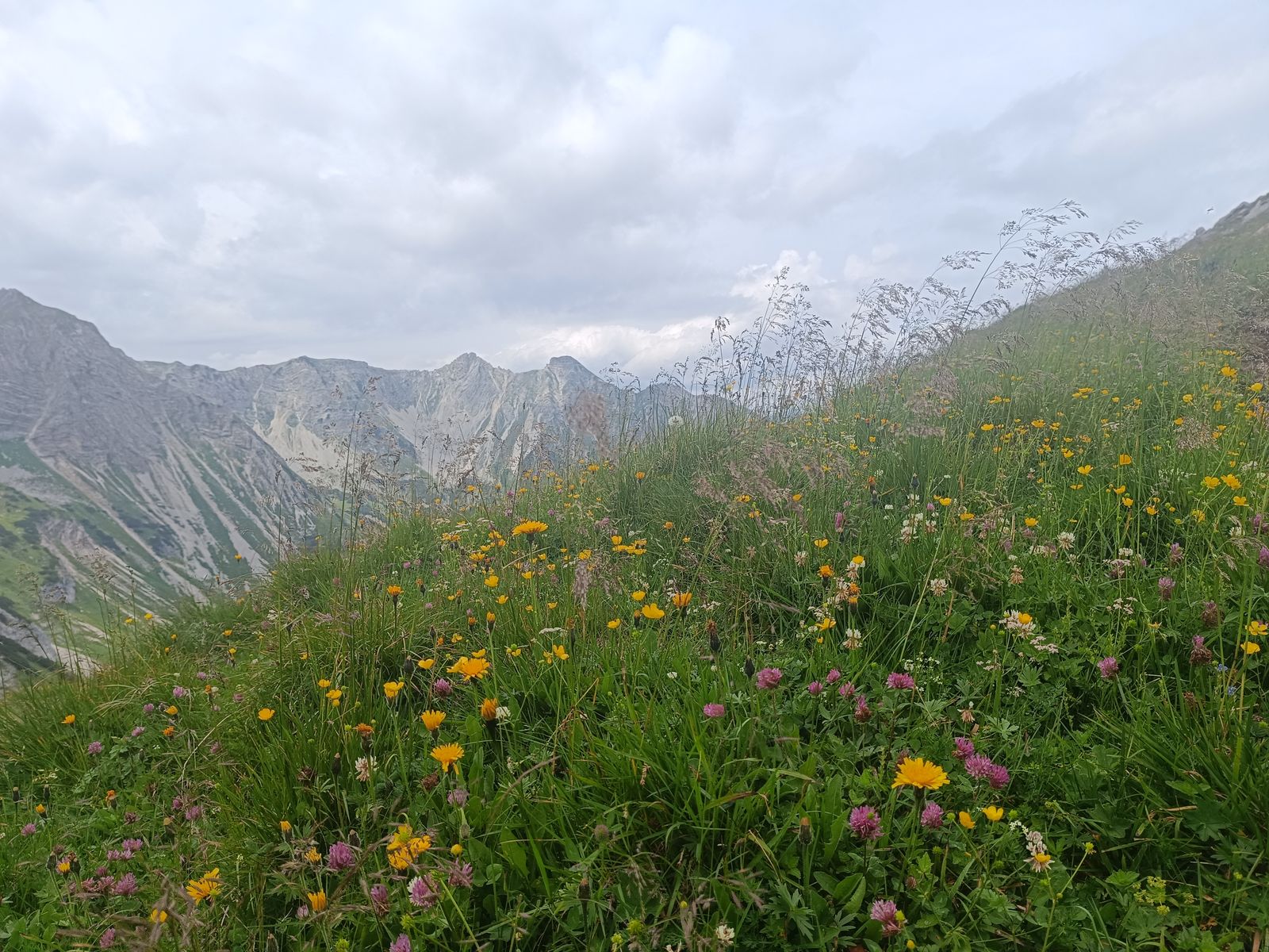 Das einzige Nervige an der Tour war heute die hohe Dichte von "unguten" Insekten, was ich vom Herbst her freilich so nicht kannte. Bis in 1900 Meter Höhe kamen permanent Bremsen daher; wäre ich Klaus Kinski, hätte der Film heute "Leichen pflastern seinen Weg" (die ganz Alten erinnern sich...😉) geheißen - so viele von den Biestern hab ich erschlagen. Und auch die Zecken... Normalerweise gehen die aus irgendeinem Grund nie auf mich; ohne Witz: In den letzten 10 Jahren war es genau eine. Heute habe ich aber tatsächlich fünf abgesammelt, bevor sie ihr Werk beginnen konnten. Und wenn ich schon fünf von denen aufgable...