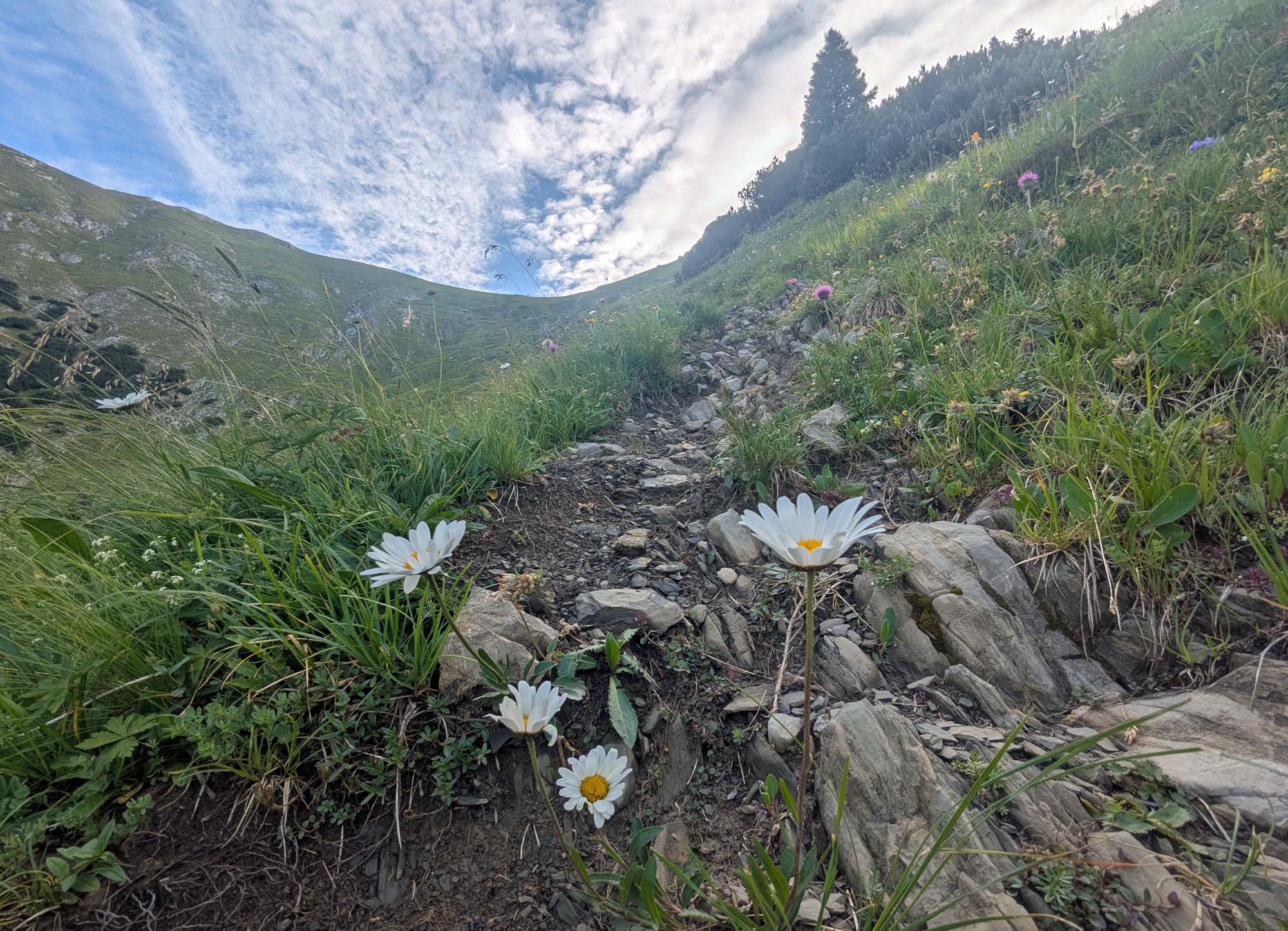 Einige fast zugewachsene Passagen ließen mich heute vermuten, dass hier nicht besonders viele Leute unterwegs sind. Auf den letzten 80 Hm zum Gipfel gab es am 11.7. einige, kleinere Schneefelder. Die dürften aber bestimmt bald wieder "Schnee von gestern" sei