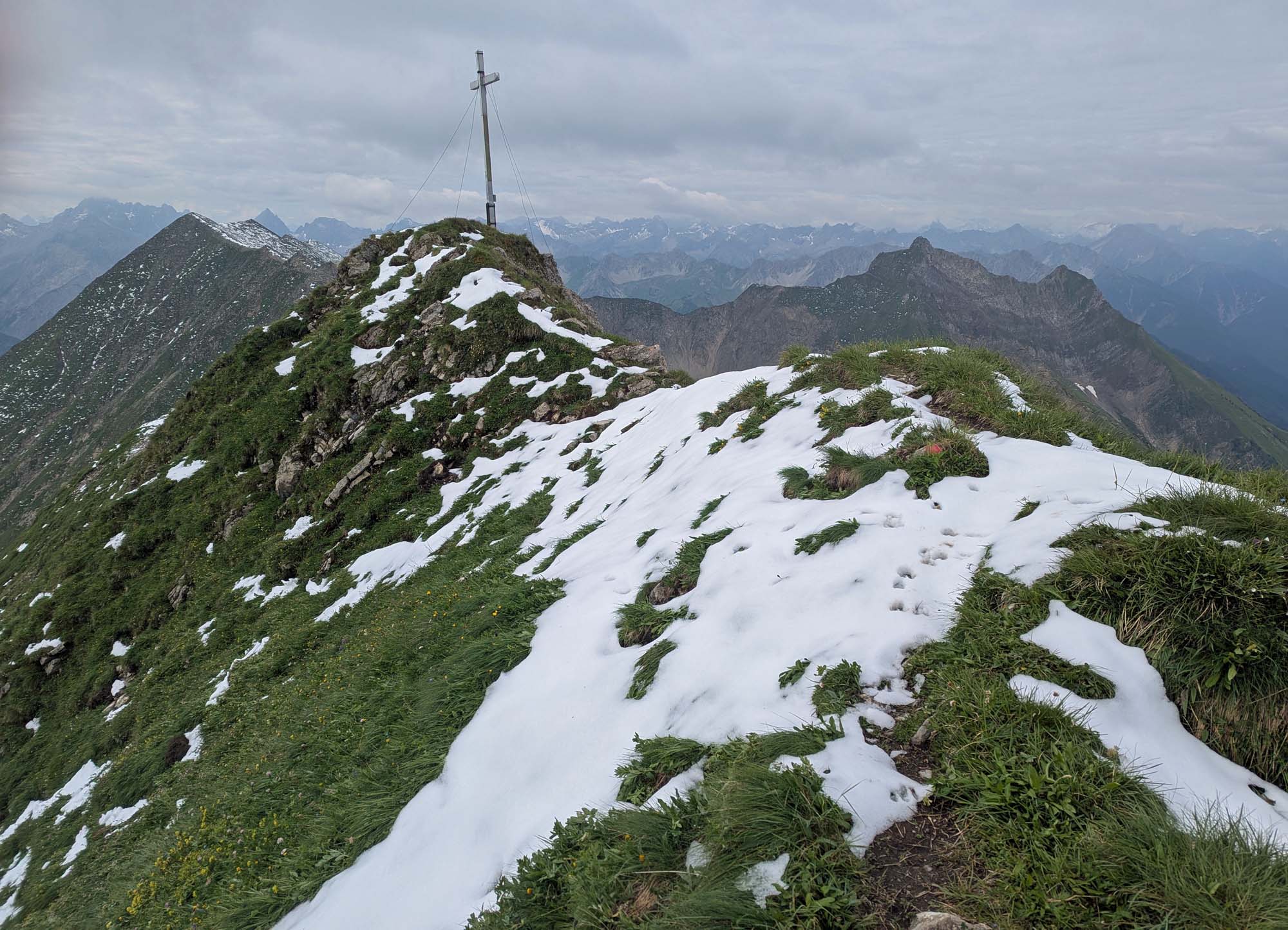 An der Elmer Kreuzspitze (2480 m) muss man bestimmt keinen overtourism befürchten. 1500 Höhenmeter auf schmalem und steilen Steig, der an einigen Stellen erodiert ist: Bergwildnis vor der Haustür sozusagen.