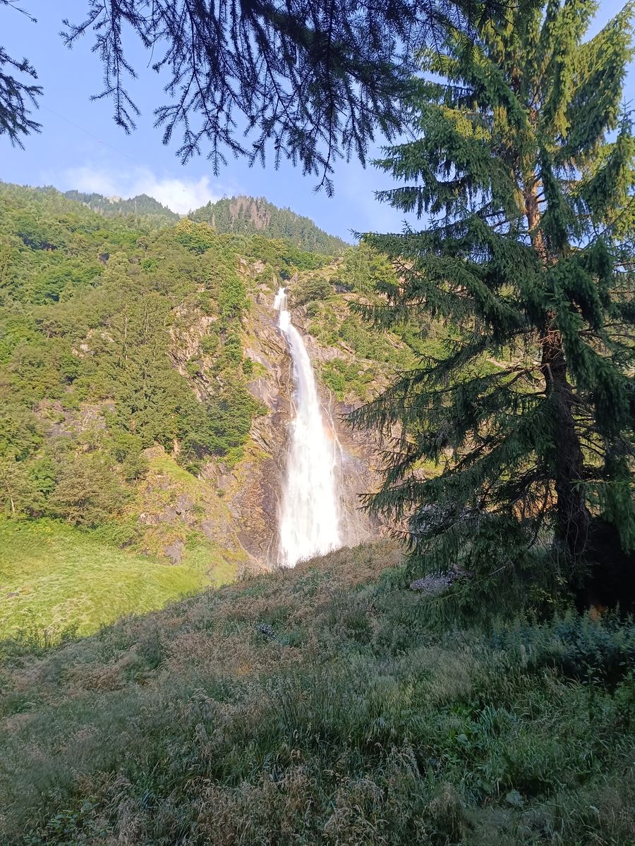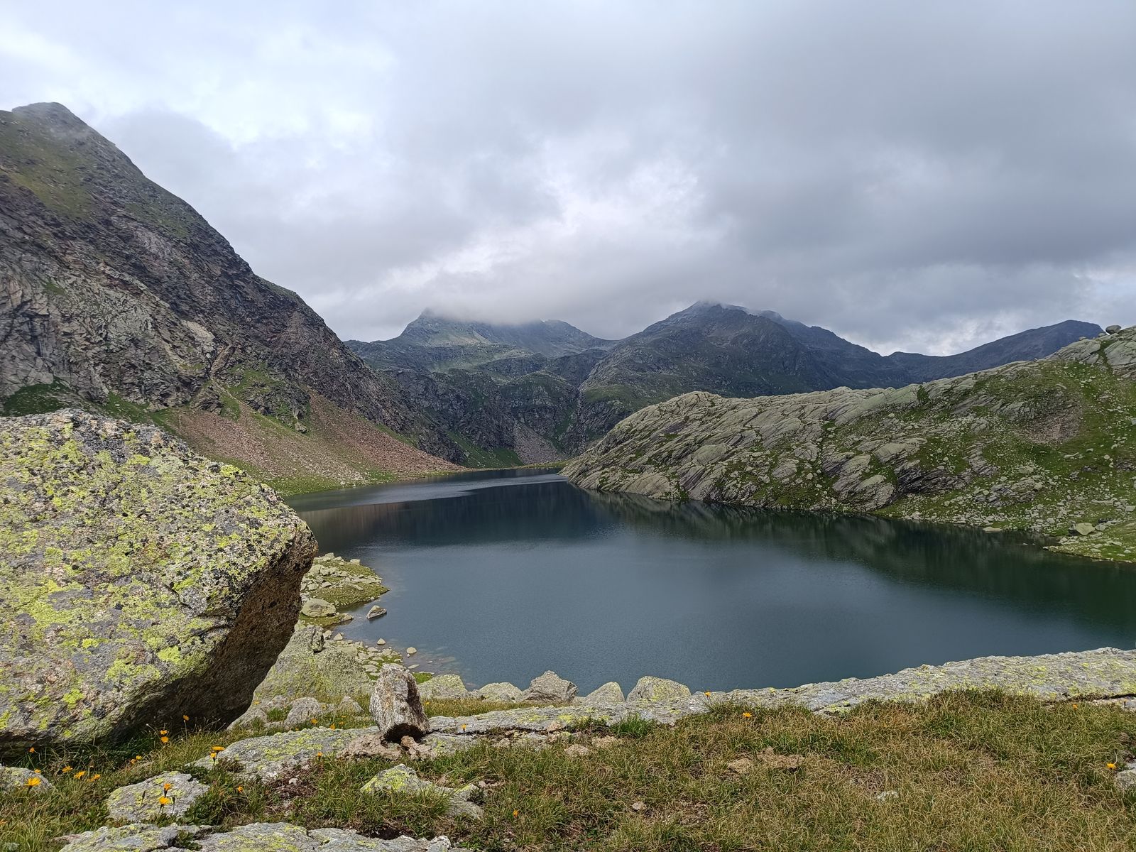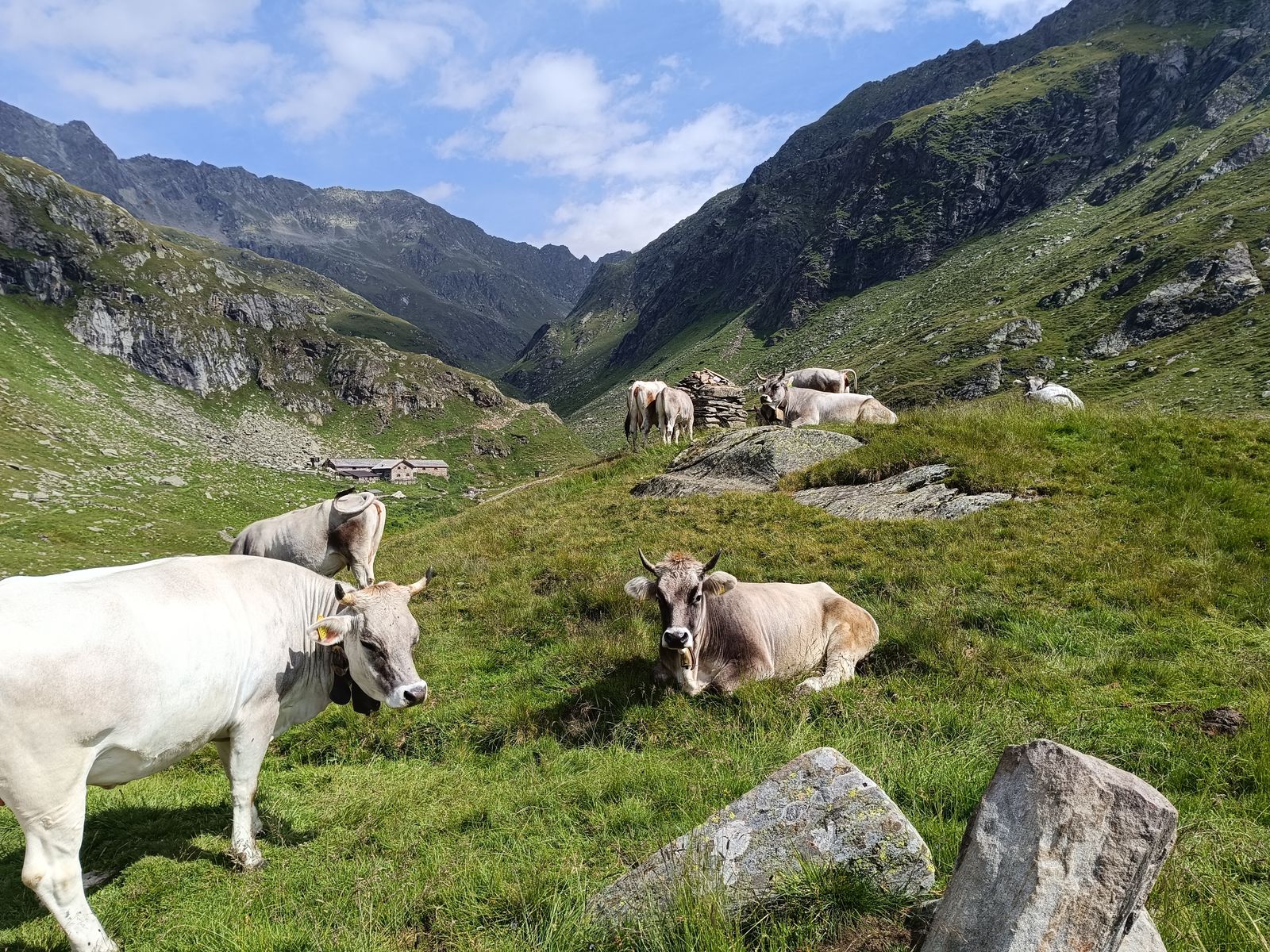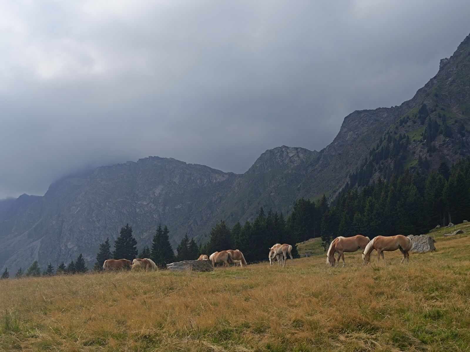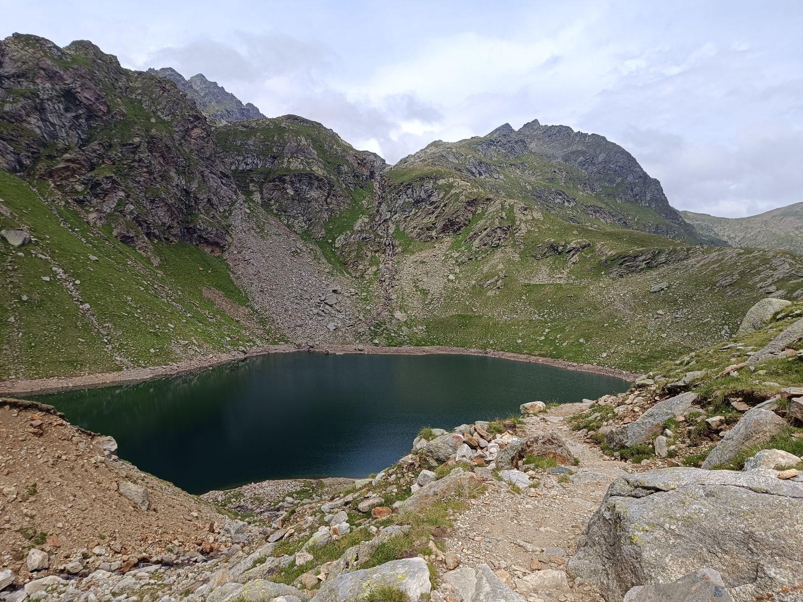 Heute ging es gleich spektakulär los mit dem großen Partschinser Wasserfall. Weiter über die Nasereit-Hütte zur Lodner Hütte und via Tablander Lacken (kleine Seen) ins Halsljoch (2800m). Von hier könnte auch noch die Lazinser Rötelspitze (3037) bestiegen werden, aber das bedeutet etwa 1,5 Stunden Mehraufwand und dafür war mir das Wetter heute zu unsicher (hätte gehalten). Außerdem ist die Tour auch so schon ausufernd genug. Also bin ich über den Nordwestgrat in einfacher Kletterei (I, schöner Grat) zum Tschigat hoch. Obwohl der Grat einfach ist, sollten schneefreie Verhältnisse herrschen, weil die letzen 80 Hm auf der Nordseite liegen und bei Schnee/Vereisung sehr heikel sein können (sehr steiles Absturzgelände unterhalb der Route). Runter bin ich auf dem Normalweg über den "Kamin". Die Anführungszeichen deshalb, weil es sich eigentlich um eine sehr steile Rinne handelt - wer sich wegen des Namens schon genussvoll Spreizen und spektakulär abkletternd sieht, wird enttäuscht. Die steilen 300 Hm durch den schottrigen "Kamin" und seine Ausläufer sind im Anstieg sicher sehr mühsam; der schönere Weg ist ganz klar der Nordwestgrat. Auch sonst würde ich meine Route empfehlen, weil man die Spronser Seen dann nach dem Gipfelerfolg erreicht und genussvoll Baden kann - am besten im wirklich riesigen Langsee. Jetzt bin ich aber ein bisserl vorgehoppelt - zurück zum Ende des "Kamins": Man erreicht bald den Milchsee (? Sehr dunkles Wasser?), der seinen Namen vermutlich aus einer Zeit hat, als es am Tschigat noch Gletscher gab. Der kürzeste Rückweg würde nun über die Hochgangscharte führen, aber dann verpasst man ja die ganzen anderen Seen! Ich habe diese freilich alle mitgenommen und bin zur Oberkaseralm abgestiegen. Weiter über die Taufenscharte (+ 200 Hm) zum Hochganghaus. Hier ein Tipp: Man sollte einen "Geheimweg" über die Wiesen der Kublandalm nehmen, da man auf sich auf dem Hauptweg, der über die Leiter Alm führt, mindestens 250 Hm zusätzlich einhandelt. Dieser Weg ist auf der Kompass-Karte nicht drauf, aber in der Locus-App sichtbar. Meist sind Trittspuren zu erkennen und der Steig wird auch im Wald nach der Alm freigeschnitten. Vom Hochganghaus am besten erst Weg 7, dann 26, dann 1 zum Birkenwald zurück. Man merkt beim Lesen vielleicht schon, dass die Orientierung nicht so ganz einfach ist, aber mit Karte geht's gut - ist auch keine Raketenwissenschaft. Aufpassen darf man aber schon gut, weil wenn man falsch absteigt, muss man evtl wieder ziemlich weit zum PP aufsteigen.