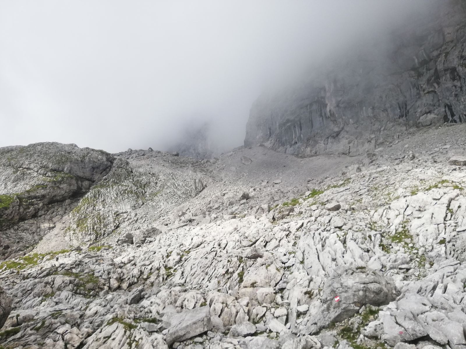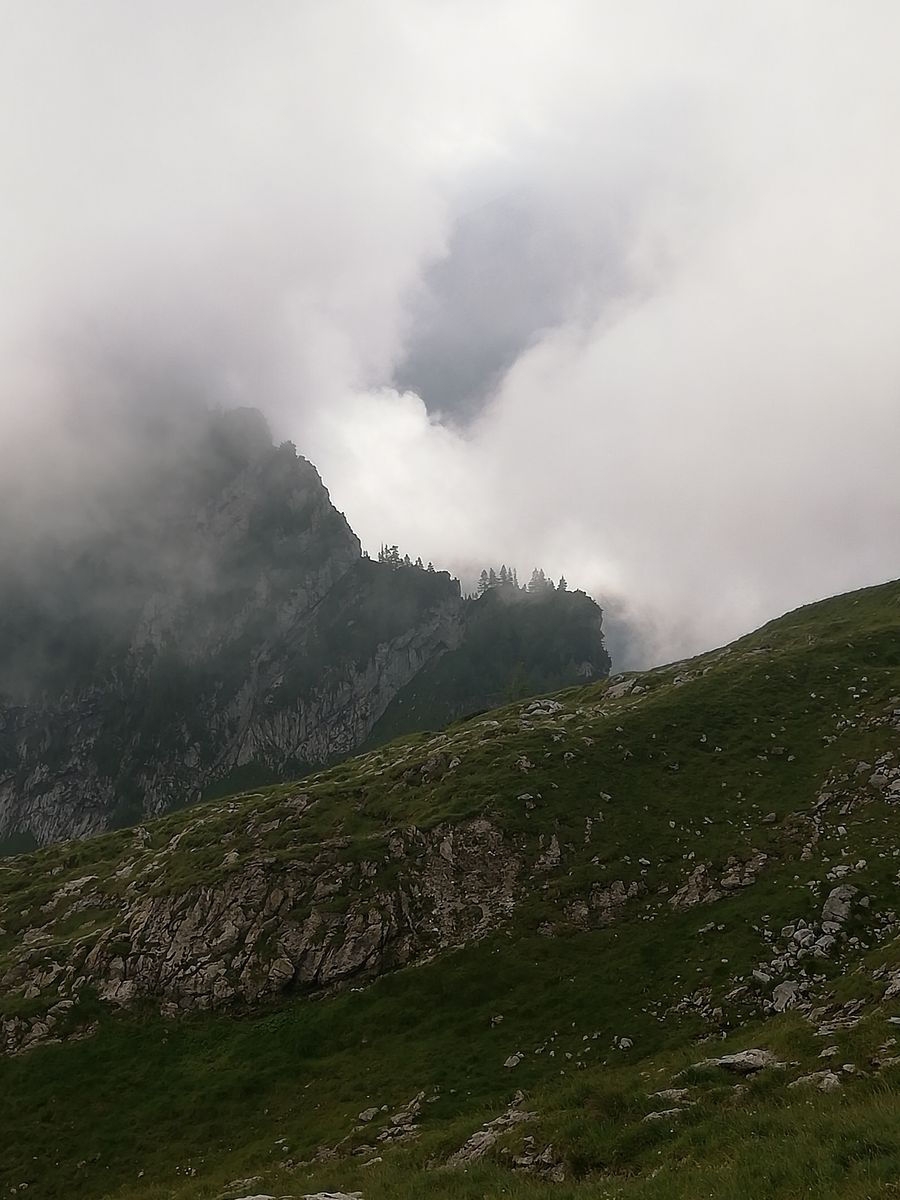 Gipfel gestern ganztägig ab ca 1800-1900m in Wolken. Nur einmal riss es für wenige Sekunden auf.