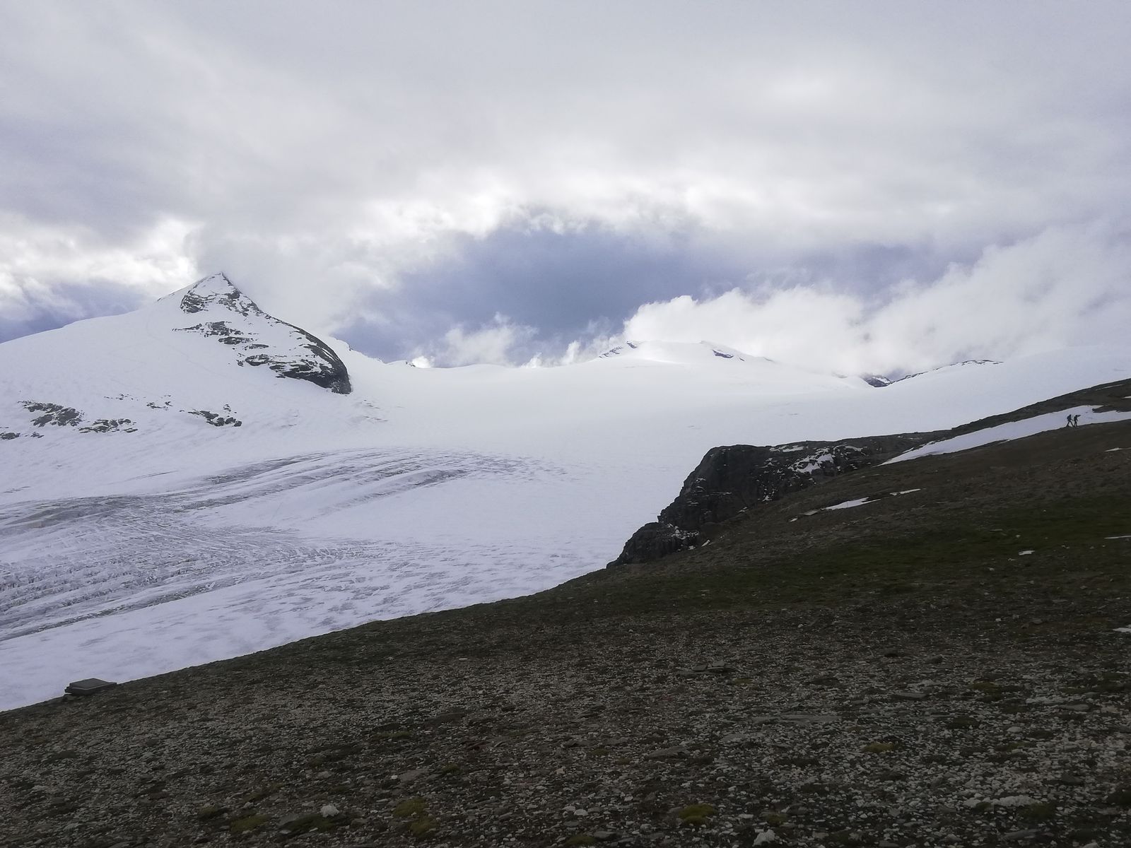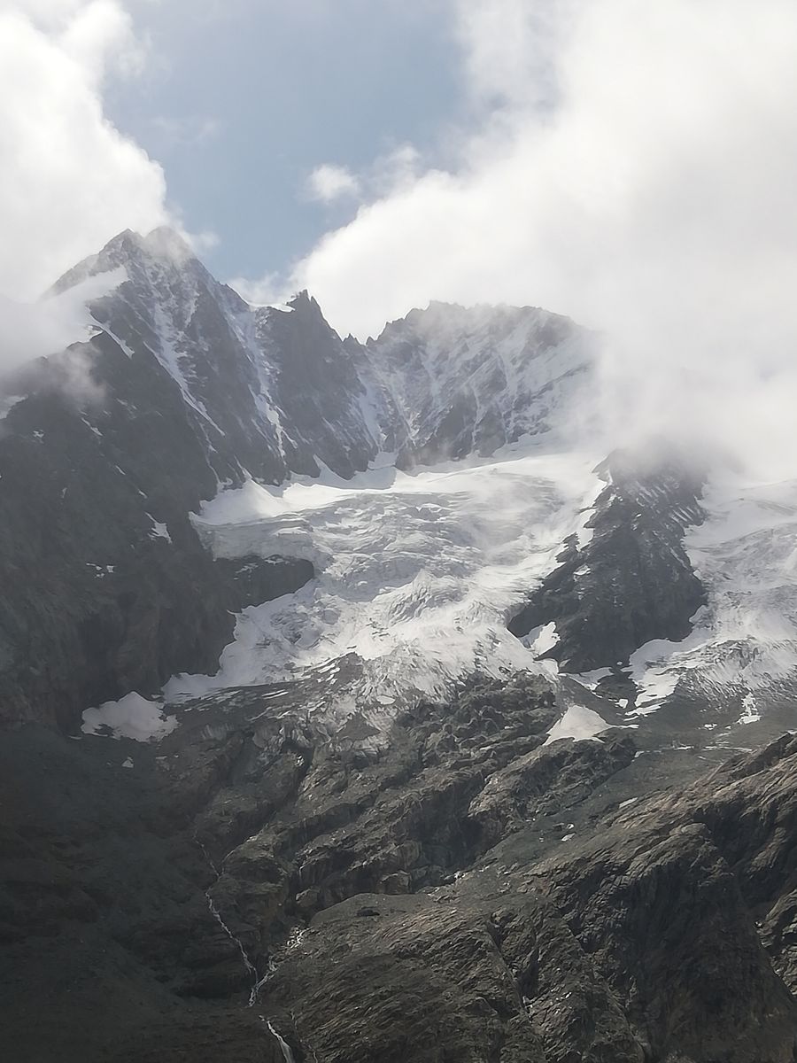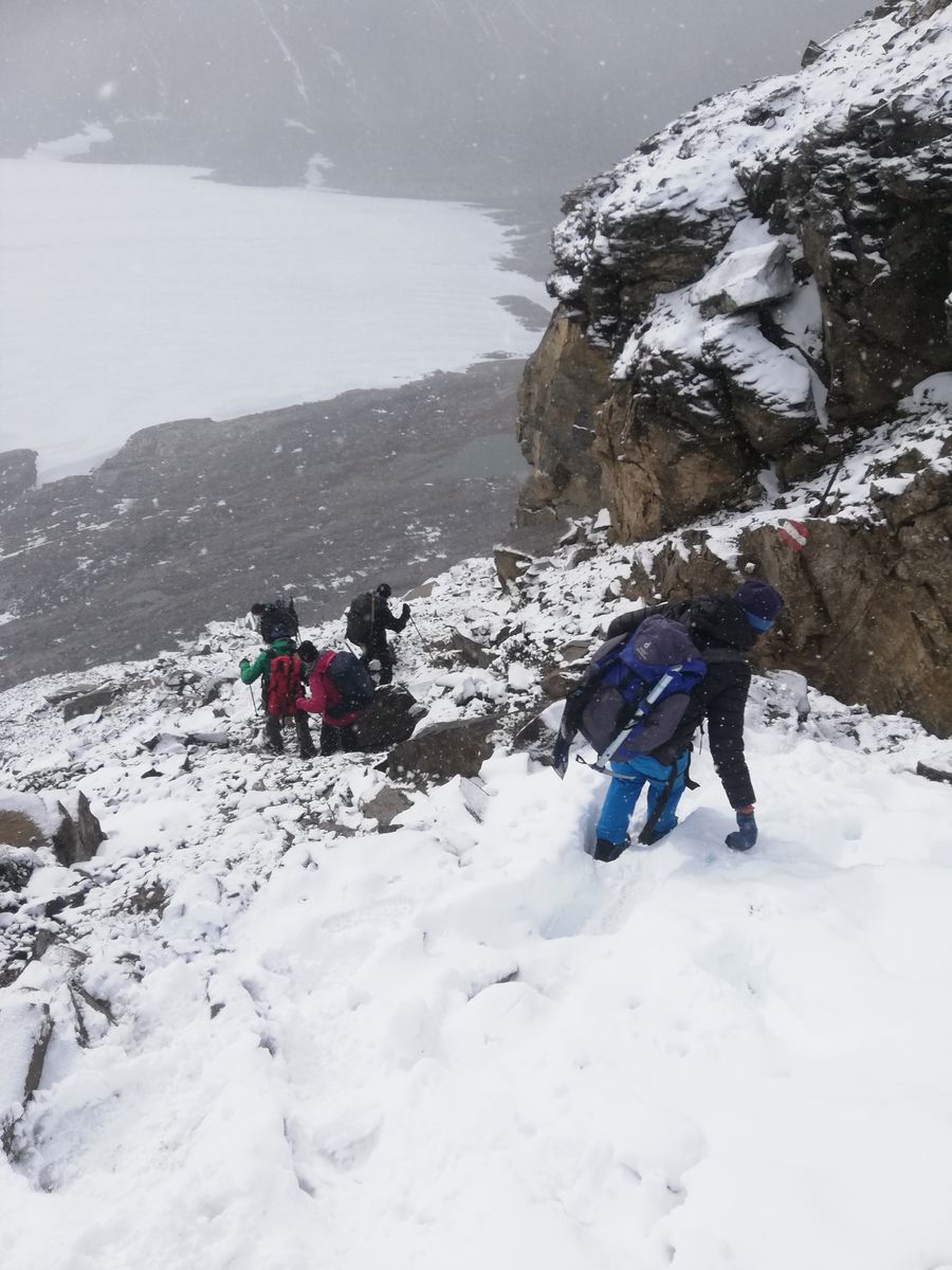 In der ganzen Gegend lag oberhalb etwa 3100m (auf dem Gletscher auch unterhalb) Neuschnee, unterhalb nur ein Hauch davon, der jeweils wieder wegtaute.