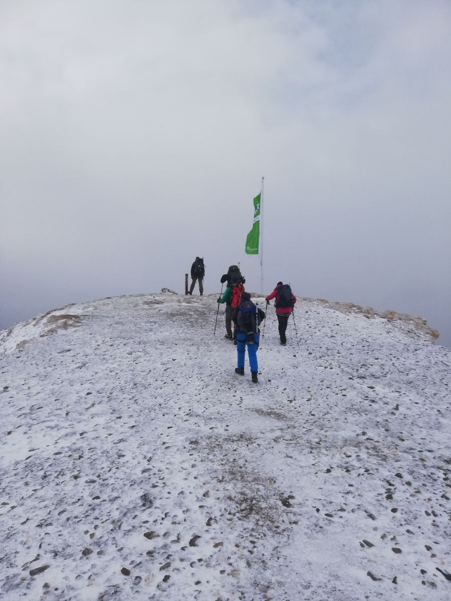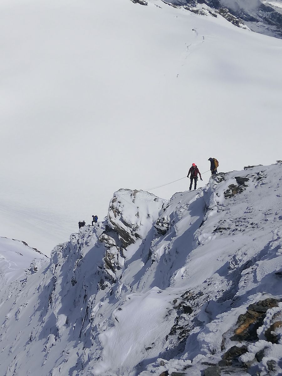 Der Nordgrat ist derzeit frisch verschneit, wurde aber von einer Gruppe (mit Bergführer) gemacht.