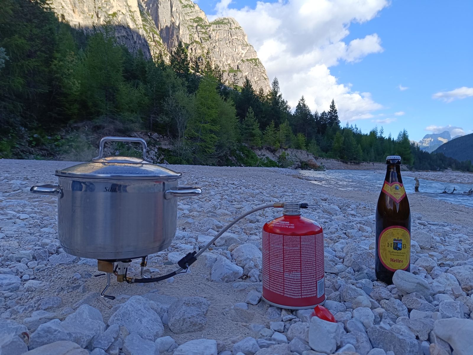 10: Das ist Luxus für mich: Kochplatz am Boite-Bach bei der Ponte Felizon.
