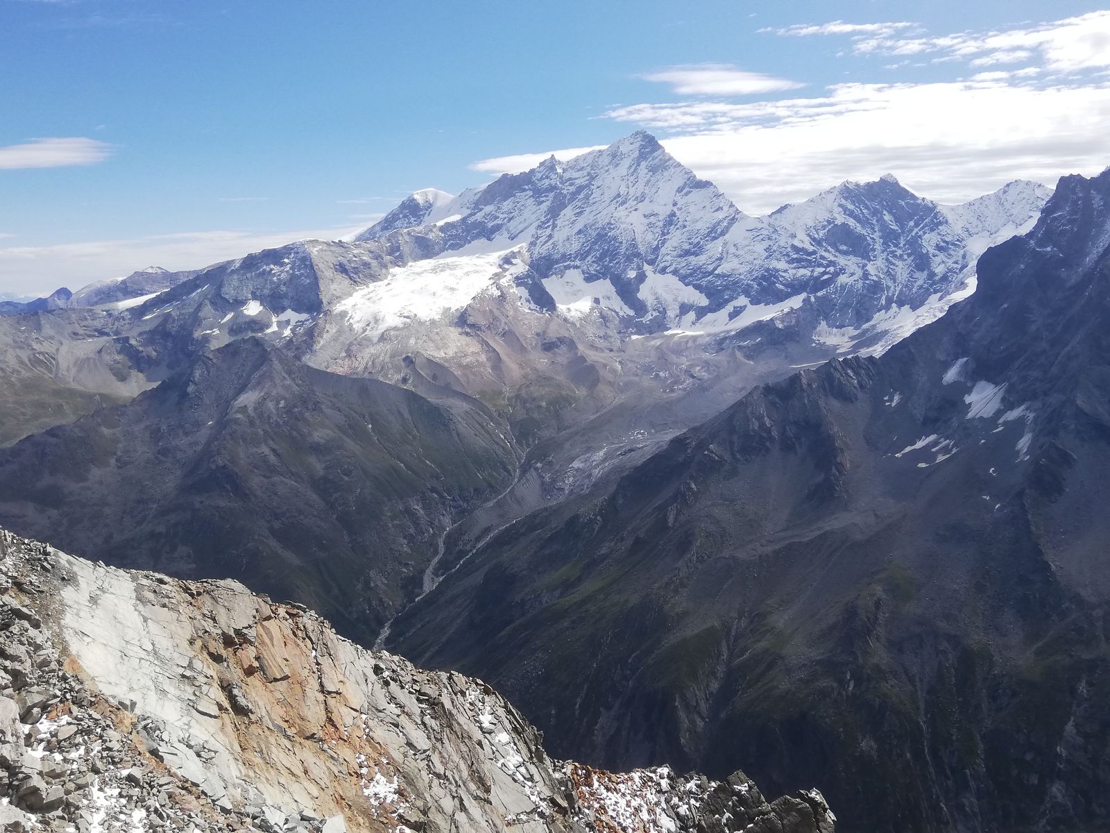 Am Gipfel tolle Aussicht auf die umliegenden 4000er und Gletscher.