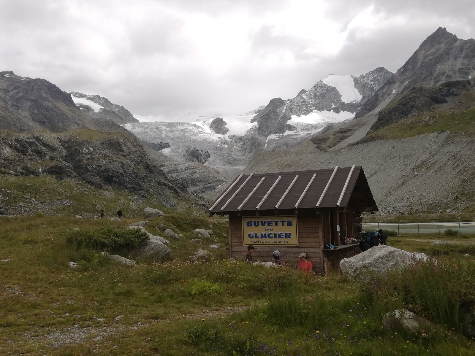 Start am Parkplatz ganz am Ende des Val Moiry hinter dem Stausee am Lac de Chateaupre auf 2350m (war nachmittags gegen 14.00 Uhr aber sehr voll). Von hier zunächst auf der Seitenmoräne des Gletschers, später in Serpentinen auf gutem, markierten Steig steil hinauf zur Cabane de Moiry mit beeindruckendem Blick auf den gleichnamigen Gletscher.