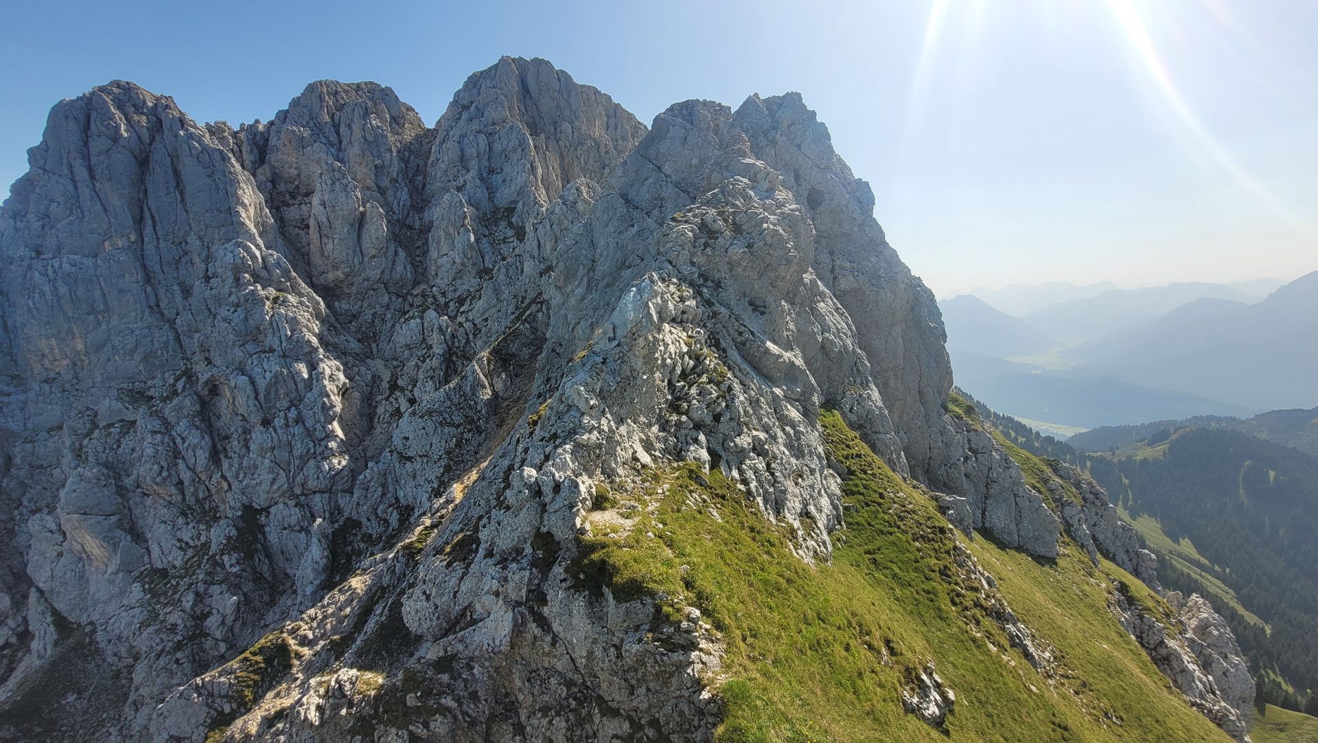 Diese Aussicht kann man sich auch mit einem anspruchsvollen Klettersteig oder auf dem Normalweg kraxeln I-II ersteigen.