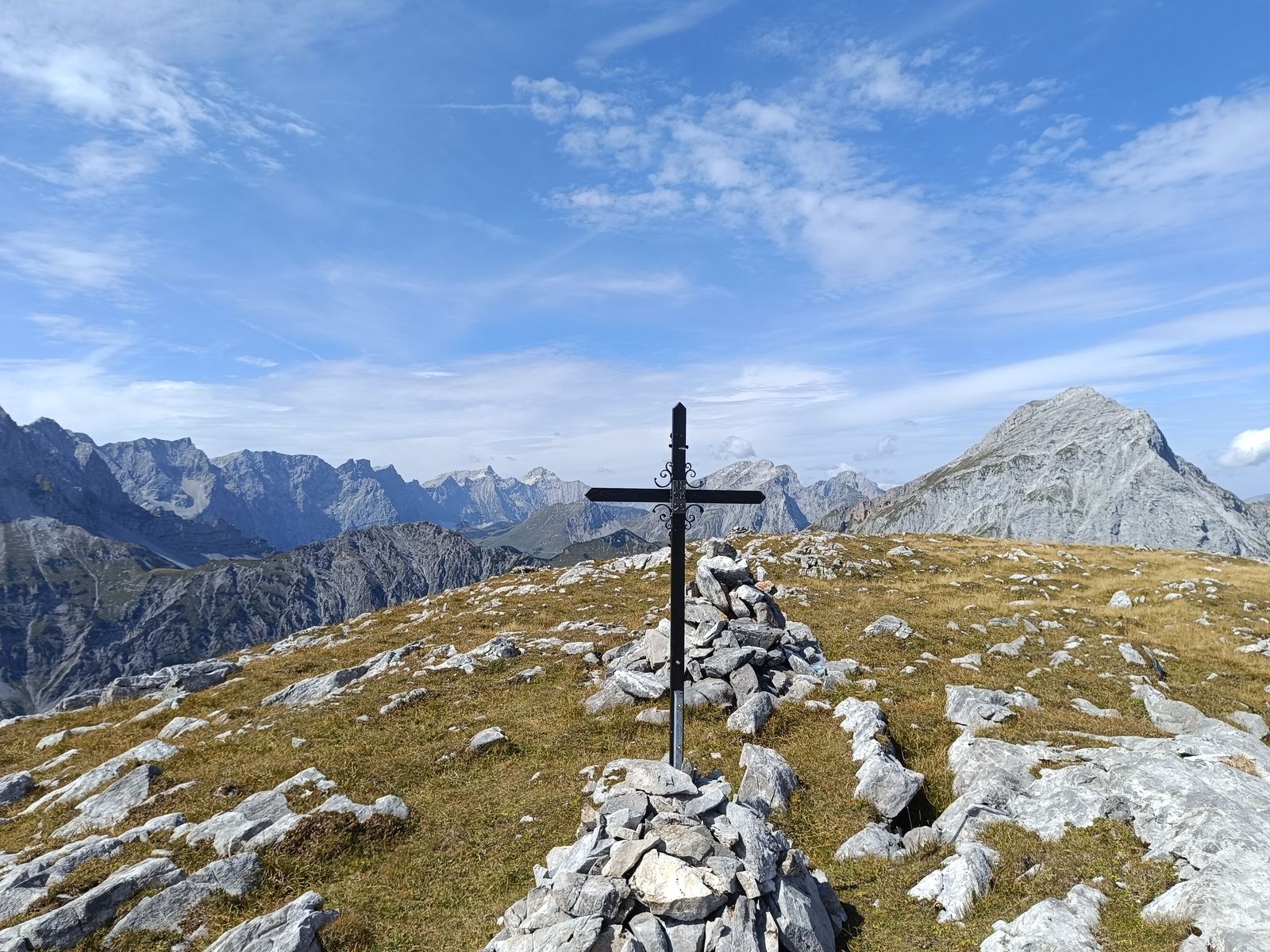 6/7: Panorama vom Lunstkopf. Das Gipfelkreuz wurde erst heuer errichtet.
