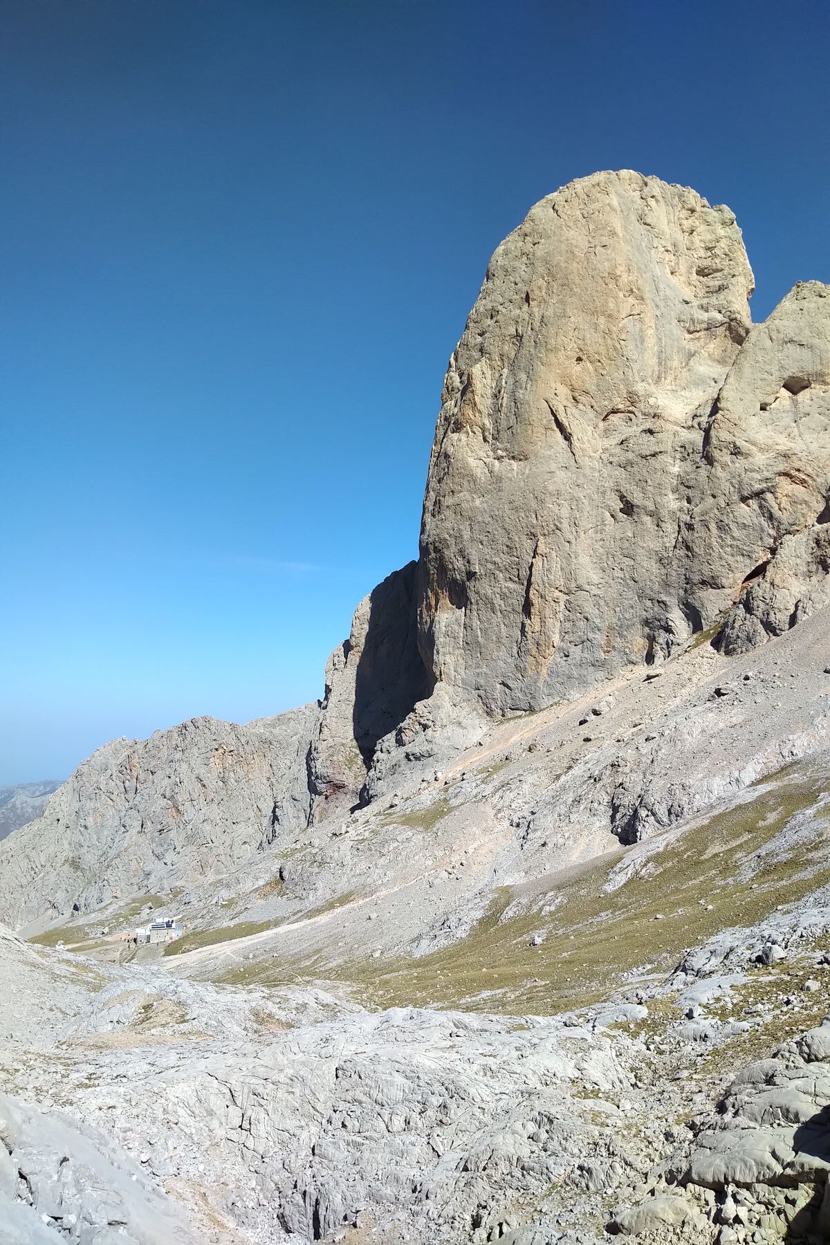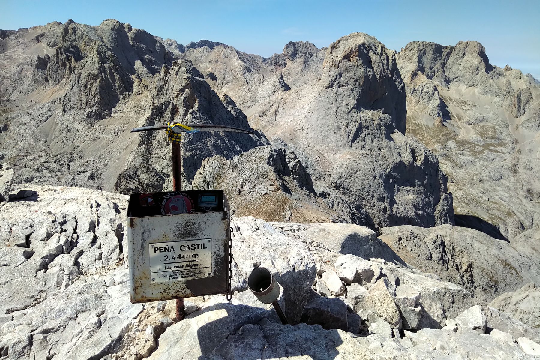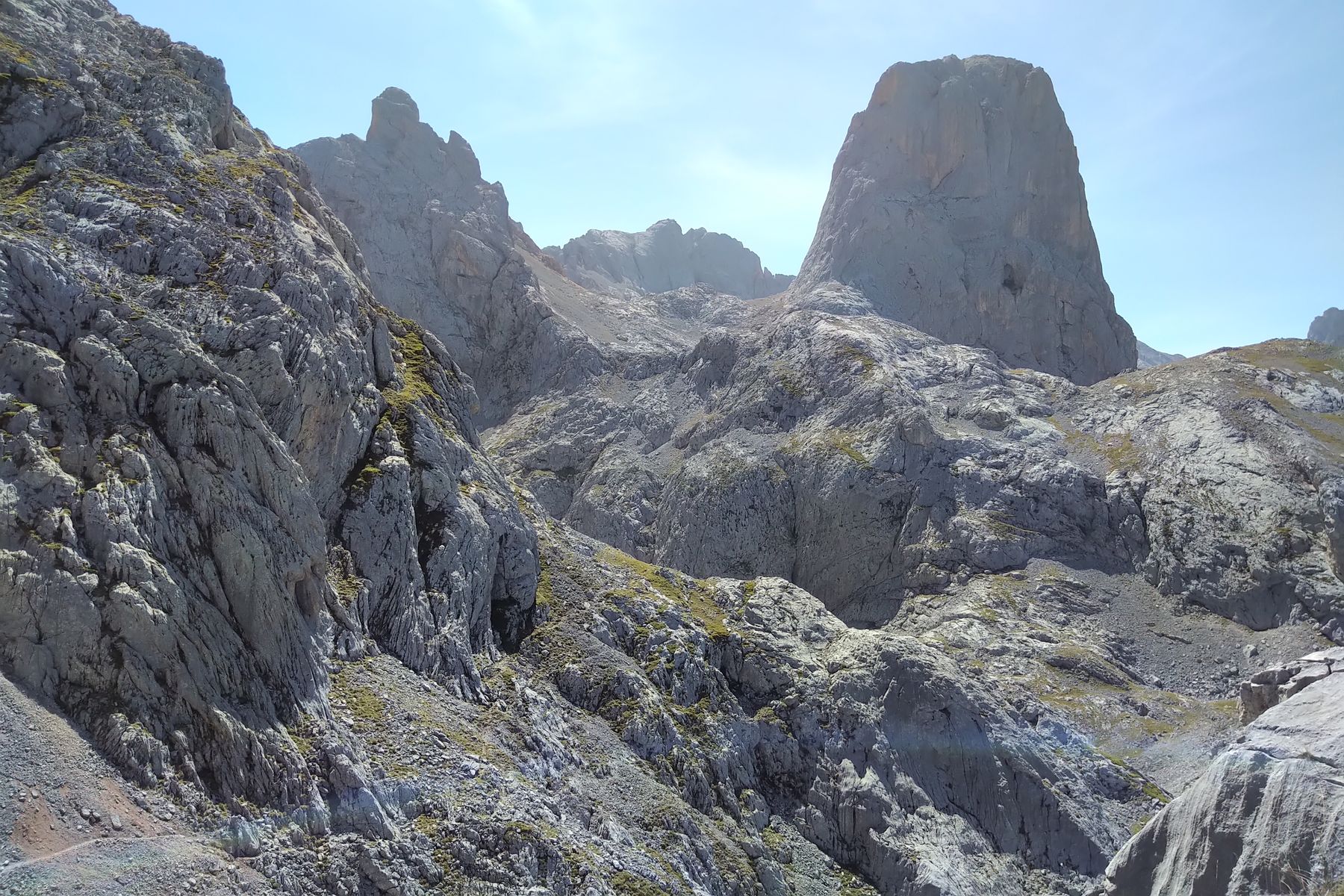Auf dem Peña Castil, der Pico Uriellu (rechts vom Kanal) sieht aus dem Blickwinkel weniger markant aus als sonst: