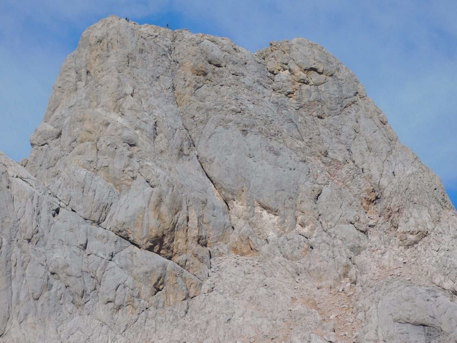 Nahaufnahme vom Torreceredo-Gipfelbereich 2 Tage später. Mitte rechts sieht man noch 2 Personen im Aufstieg: