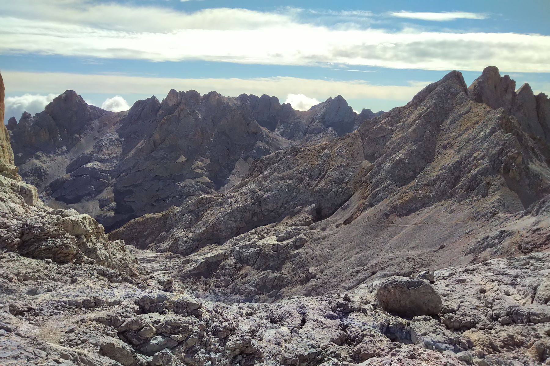 Blick auf Caín von Sedo Mabro aus. Hier wird's wieder steil (Kraxeln im SG 1), man kann aber einen nordseitigen Umweg machen. Das hätte sich mit den müden Beinen wahrscheinlich gelohnt ![]()