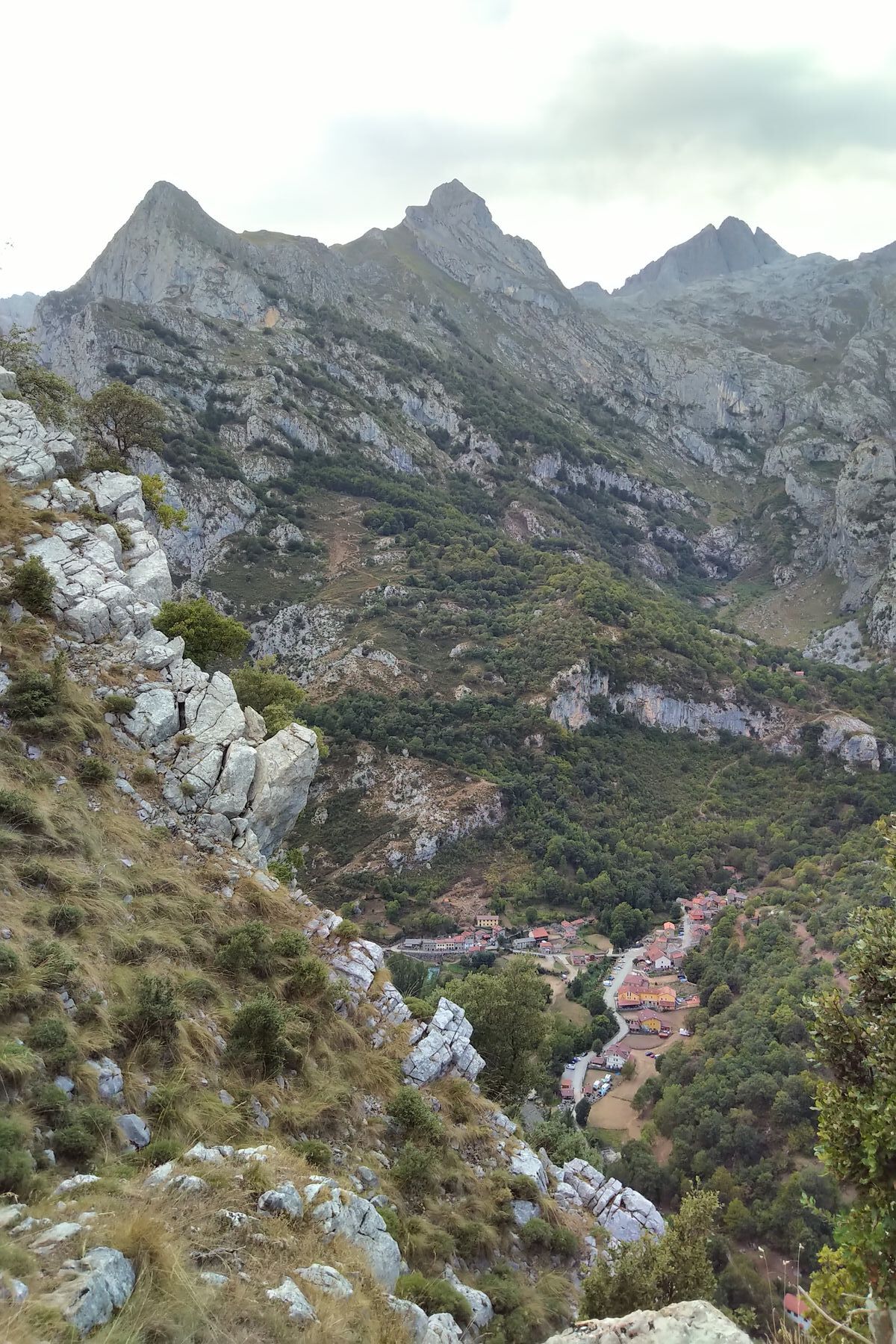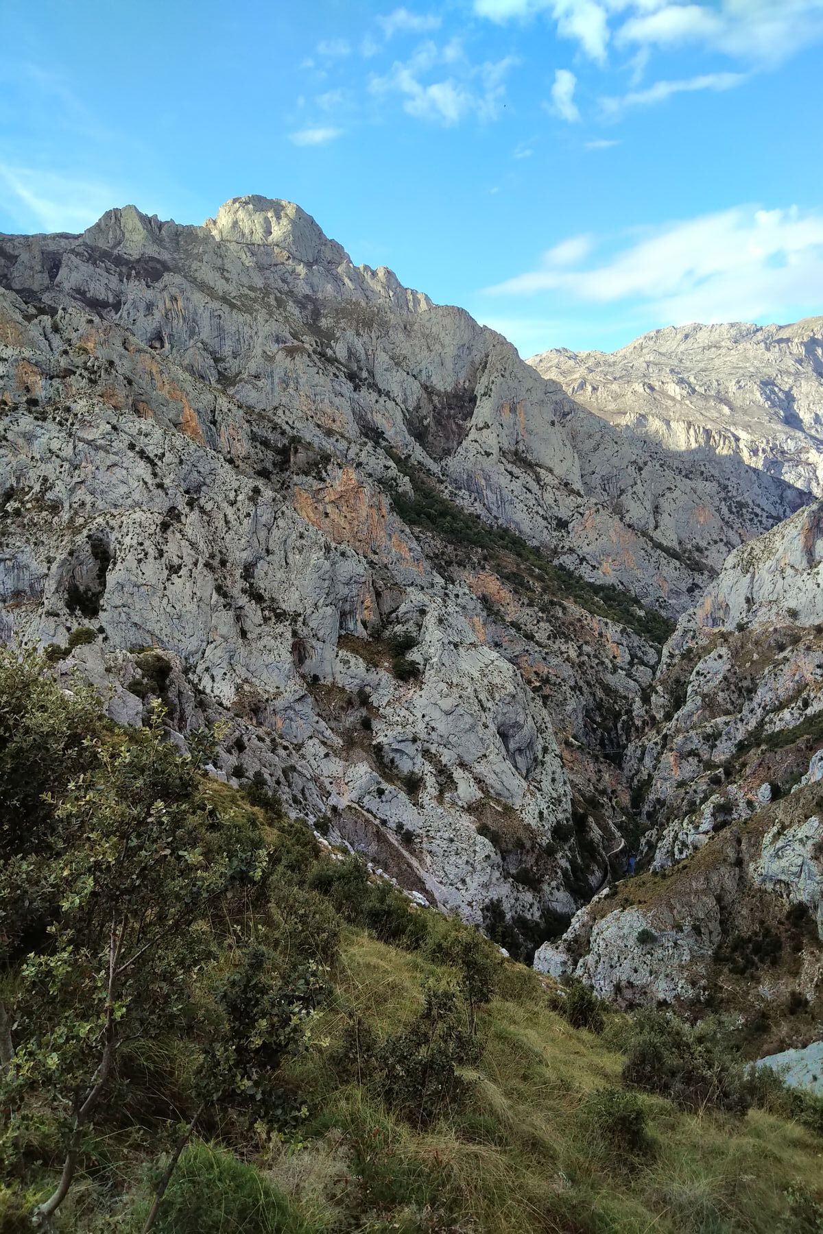 Nach dem Canalón bekommt man bald einen Blick auf die Cares-Schlucht. Die verbrannten Stellen sieht man hier noch nicht, die sind weiter rechts um die Ecke (siehe nächster Bericht):