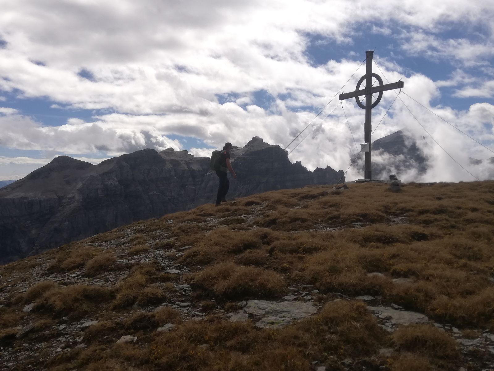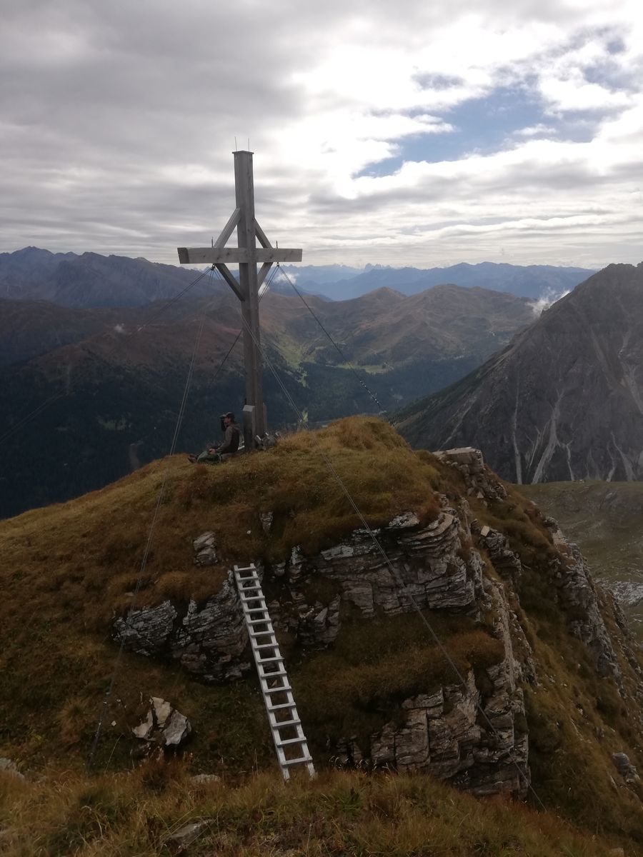 Einfacher, aber weiter ist es, den Steig Richtung Trunajoch so lange weiter zu gehen, bis der Steig in die Osthänge des Gipfels führt und dann erst über diese weglos zum Gipfelkreuz zu gehen.