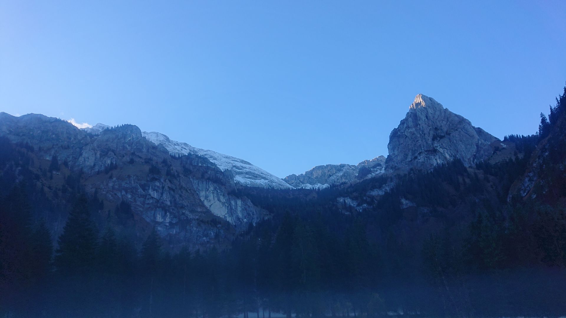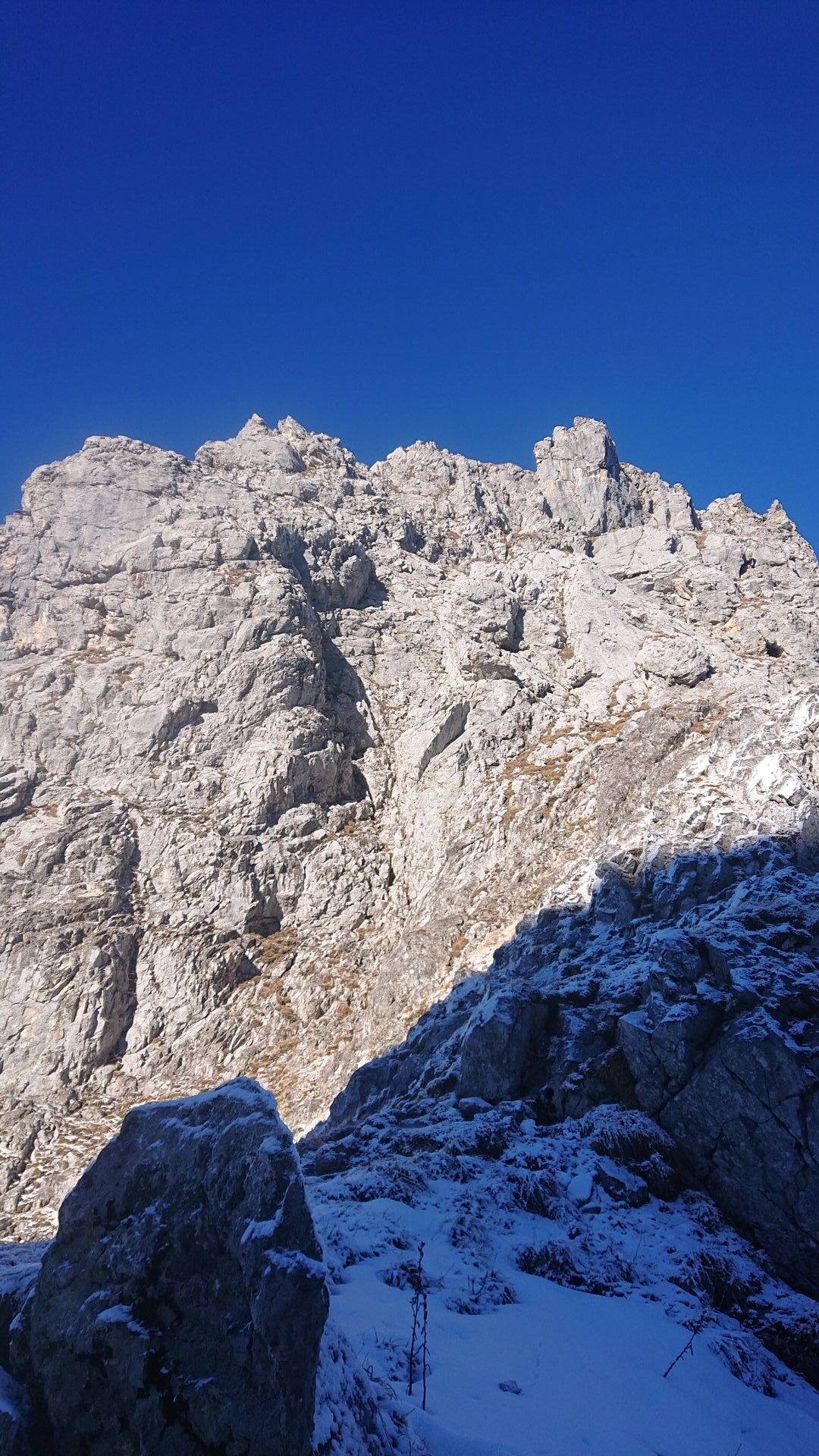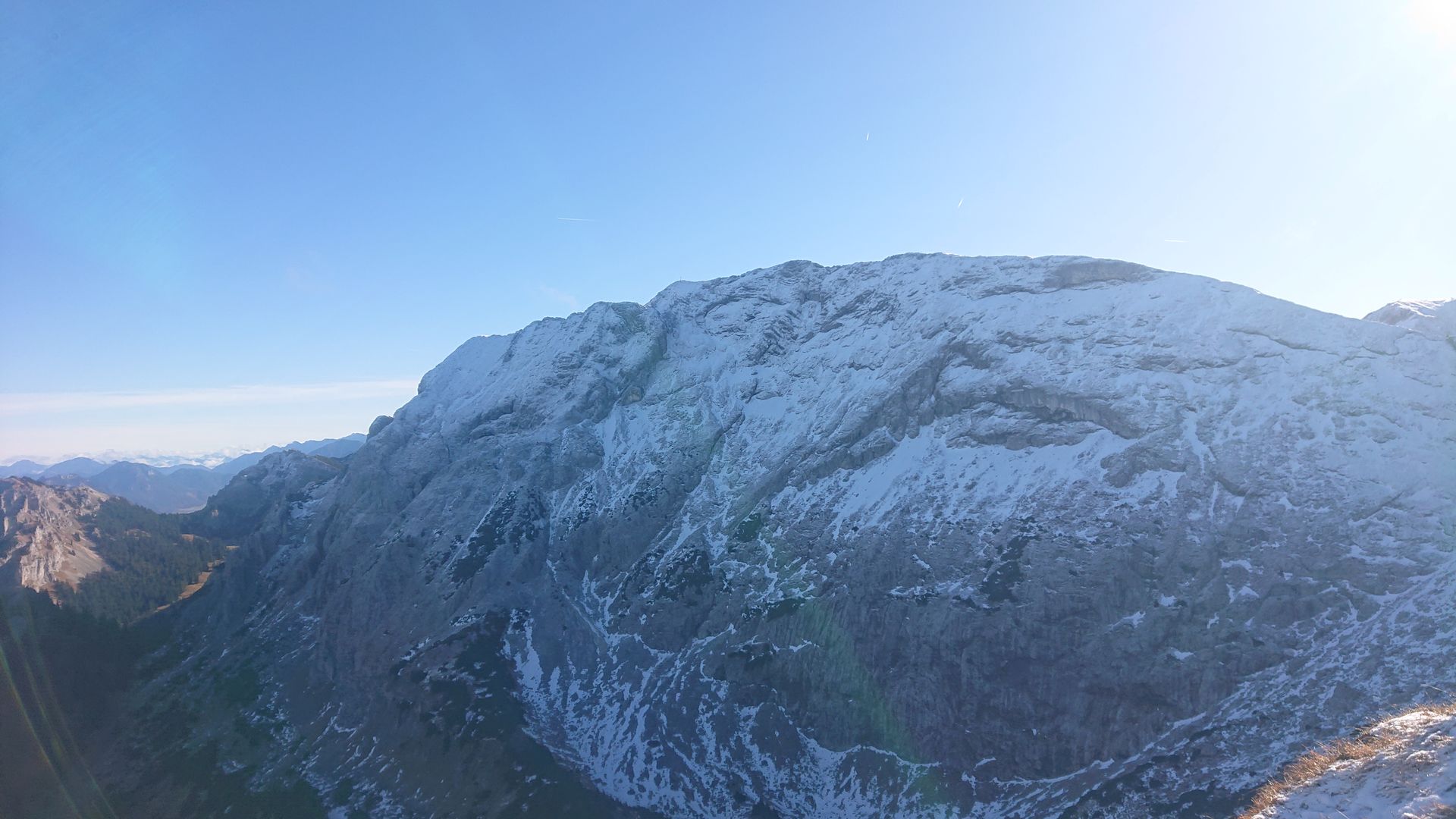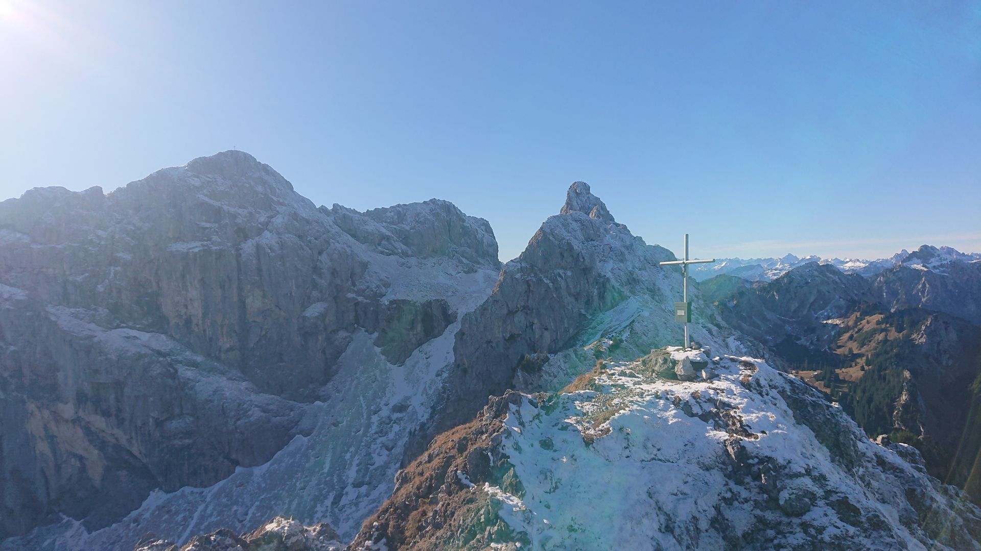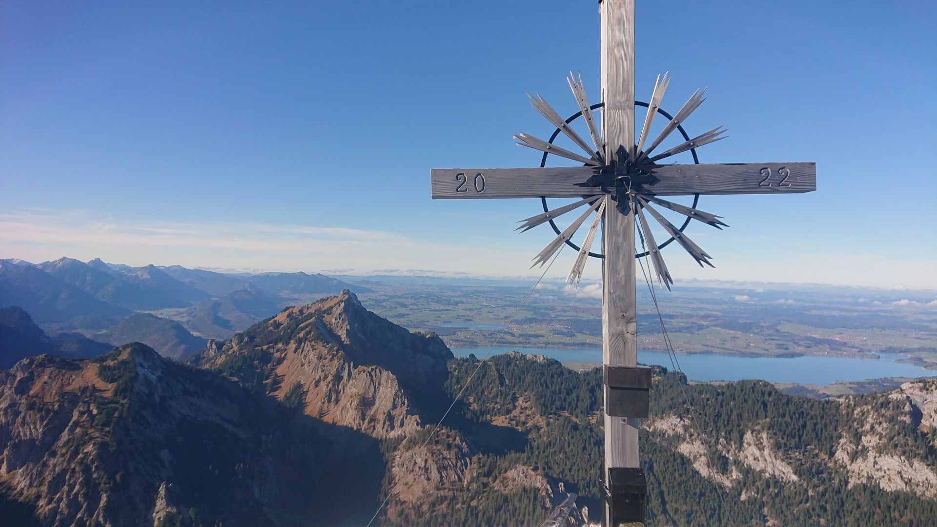 Start mit dem MTB an einem PP nahe der Staumauer des Forggensees und über Berghof/Halblech bis zum Wanderfleck auf ca. 1150m (18km/480hm). Weiter auf Pfad (T3) zum Geiselsteinsattel. Hier kurz mal ums Eck geschaut und den Einstieg der Klettertour SW Wand inspiziert (bis III). Wegen vorabendlichem Schneefall und tlw. überfrorener Nässe / Raureif (über 1600-1700m) hab ich auf den abgespeckten Geiselstein Normalweg (T6/ II) gerne verzichtet. Kurzer Abstieg 100hm in den Kessel unter der Krähe und dann mehr oder weniger mit Weg/Trittspur sehr steil auf die einsame Gumpenkarspitze (Gelände tlw. über 40 Grad T4-T5, Gipfelgrat kurz I). Der größte Teil des Weges lag in der Sonne und lässt sich bei entsprechender Trittsicherheit gut begehen (ein kurzes Stück nordseitig war allerdings etwas garstig da Felsen überfroren). Zurück ging es dann auf gleichem Wege und weiter gute 250hm rauf auf dem Weg in den Gabelschrofensattel (T3 Schnee Trittspuren, Grödeln nicht notwendig). Hier Rucksackdepot und in schöner Kletterei (T6 bis II+) die 70-80hm rauf auf den Gabelschrofen. Hier herrlicher Blick über den Tegelberg hinweg raus auf die voralpine Allgäuer Hügel- und Seenlandschaft bei Füssen. Normalerweise komme ich da bei der echten Runde immer von hinten nordseitig herauf (Grattour Geiselsteinsattel Gumpenkarspitz Nordgrat + Überschreitung Gabelschrofen übers Gabelschröfle). Weiter ging es mit einer frischen Trittspur auf die Krähe und weiter auf die Hochplatte. Hier sah ich unterhalb auf der Hochblasse 2 Personen, ansonsten komplett menschenleer gestern dort alles. Der Weg auf und von der Hochplatte (bis T4) hat kurze Wegabschnitte nordseitig, hier war etwas Obacht geboten. Kurz vor der Hochplatte kommt ein mit Drahtseilen versicherter Abstieg / Aufstieg, der gestern problemlos begehbar war, da südseitig. Ansonsten waren die sonnseitigen Wege etwas batzig aber problemlos . Abstieg dann am Lösertaljoch vorbei (kurz T4 hinter der Hochplatte, ansonsten T2) zur Kenzenhütte zum MTB Depot am Wanderfleck und im Sonnenuntergang zurück zum Forggensee.