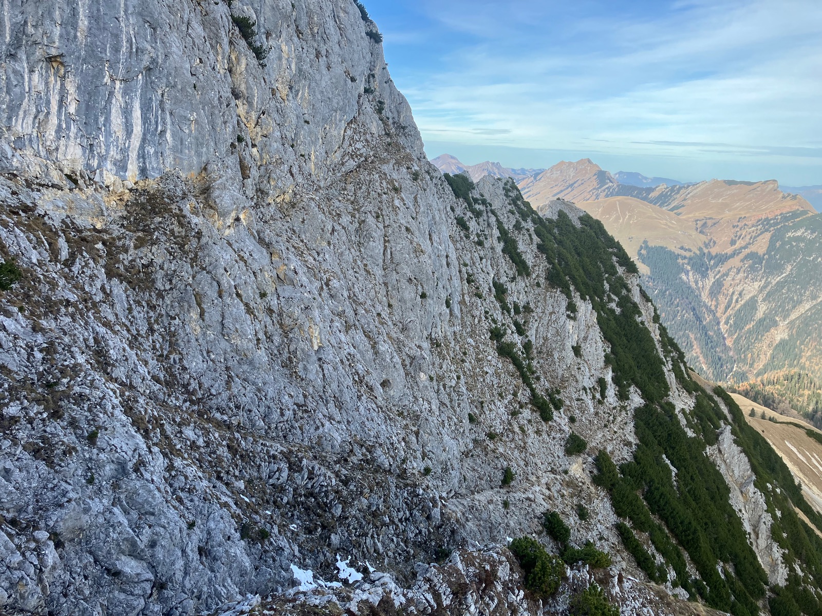 Blick zurück, unter den Felsen müsste die "Gruselquerung" sein: