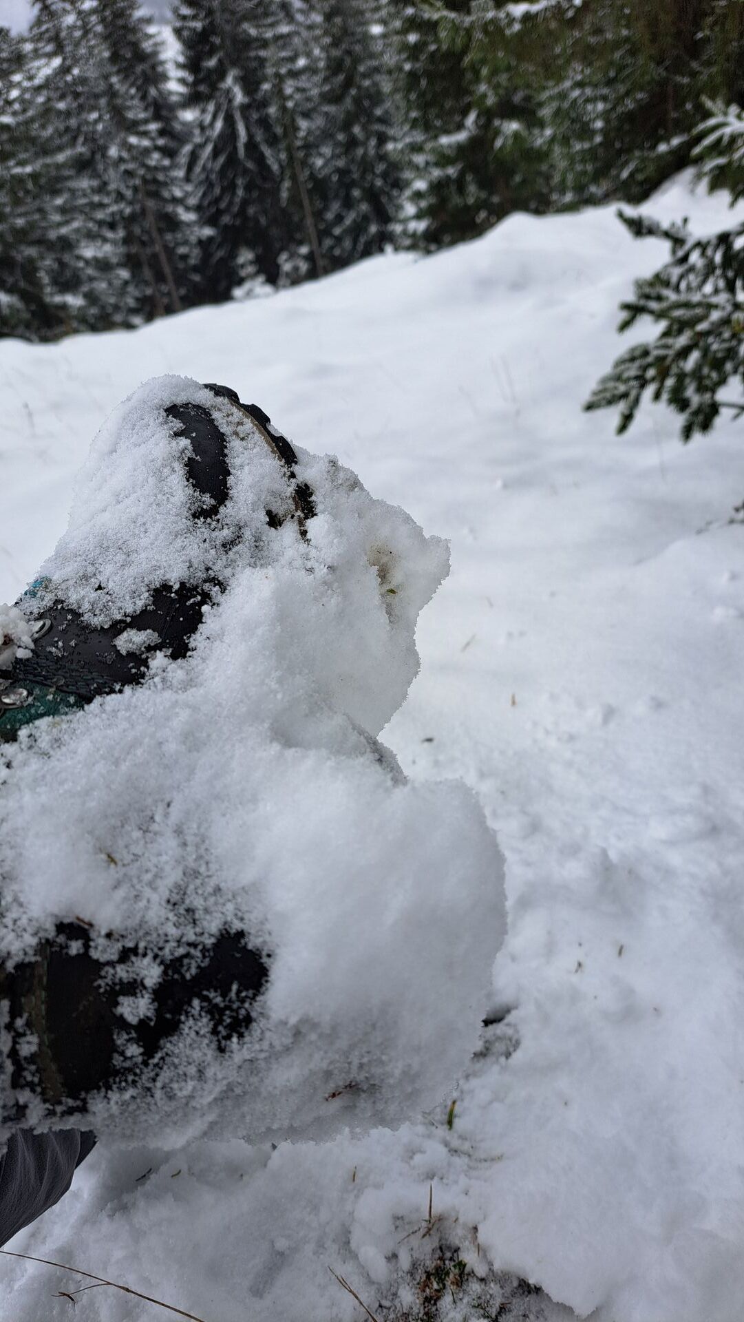 Im Gebiet liegt ca 2 -3 cm Schnee - oben dann ein wenig mehr. Ab ca. 13 Uhr kam die Sonne ein wenig raus und der Schnee wurde bappig - d.h. es hat ganz schön gestollt.