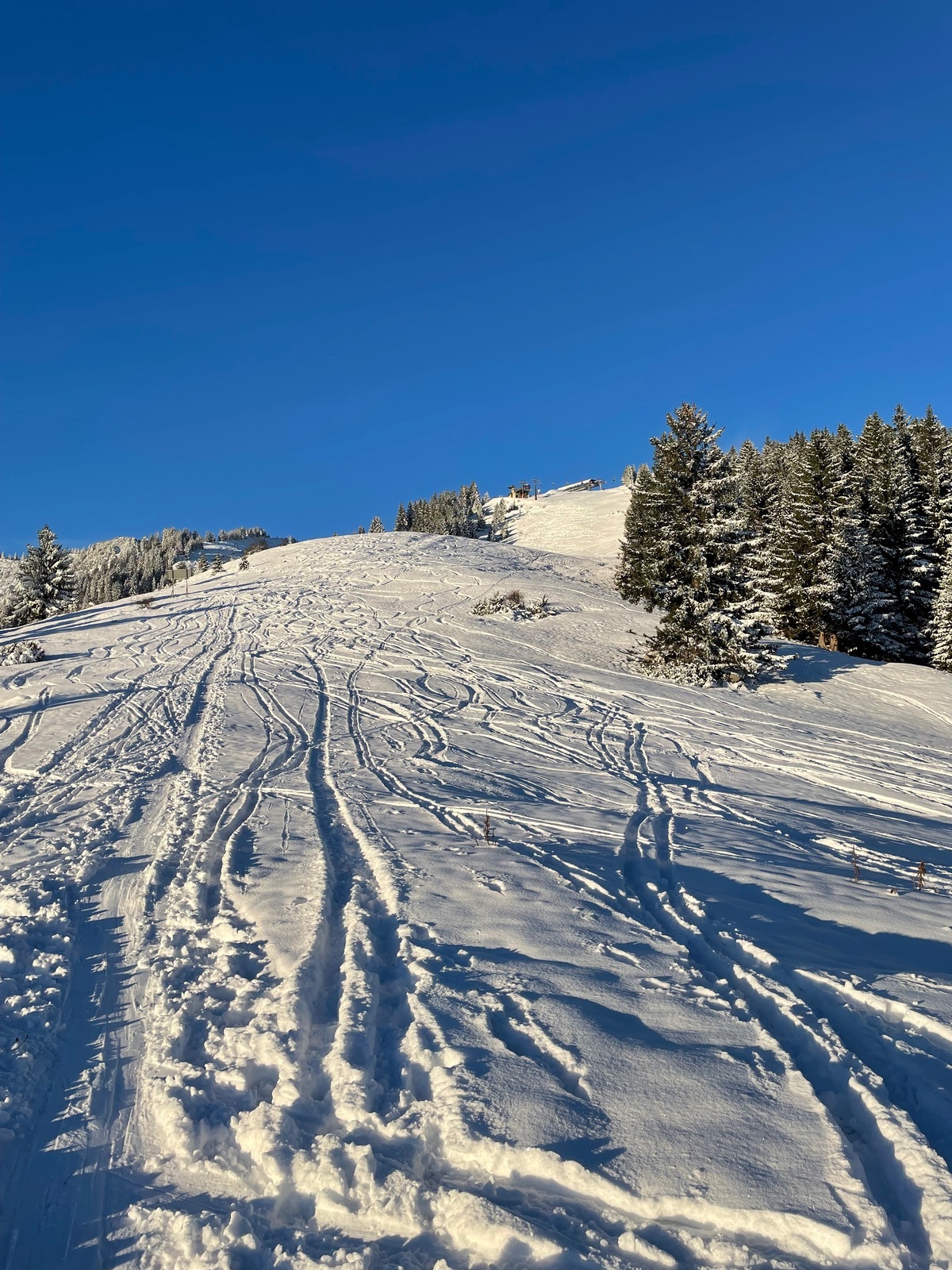 Für 23. November wirklich winterliche Verhältnisse mit eisigen -12 Grad um 7.30 Uhr. Man kann in Aufstieg und Abfahrt den Schneekanonen ganz gut ausweichen.
