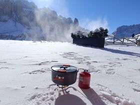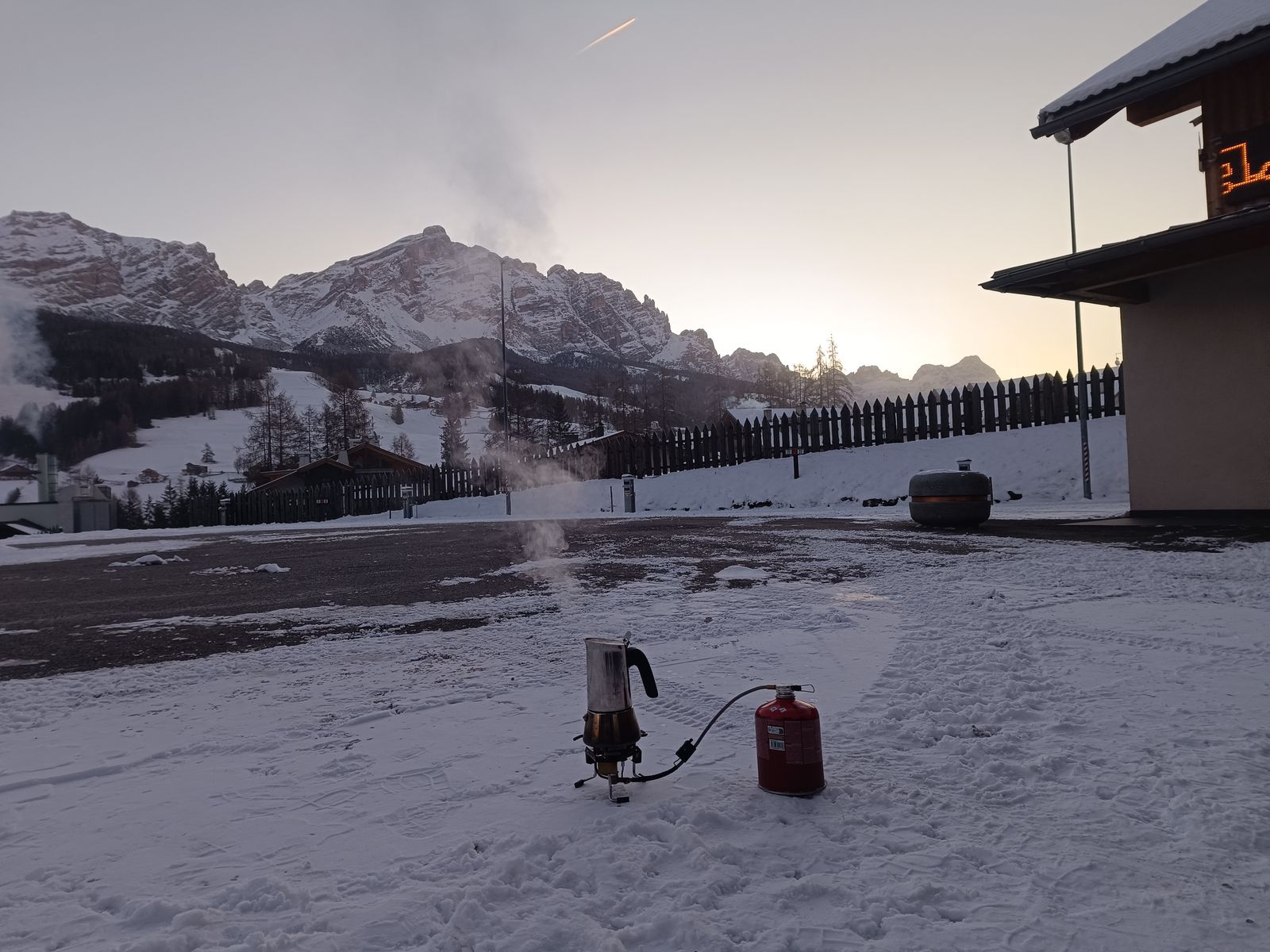 1: Frostiger Morgenkaffee mit Fanes-Blick.