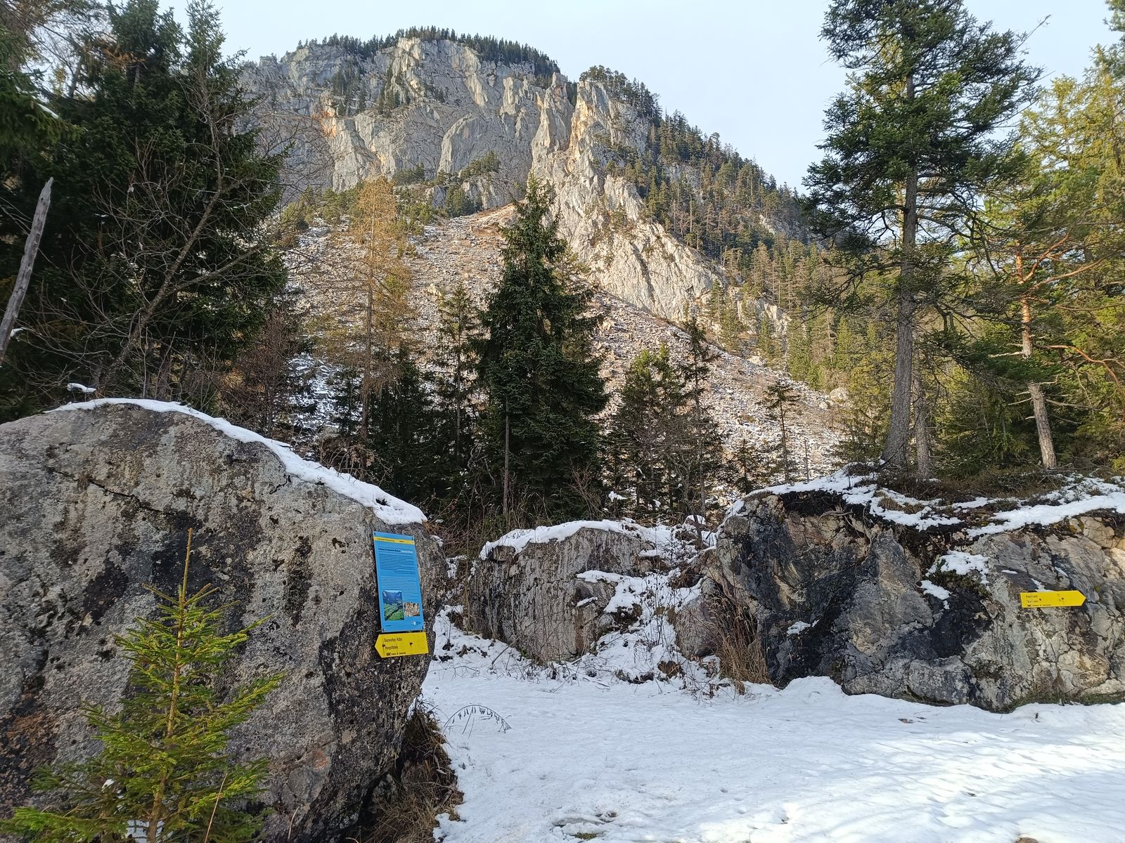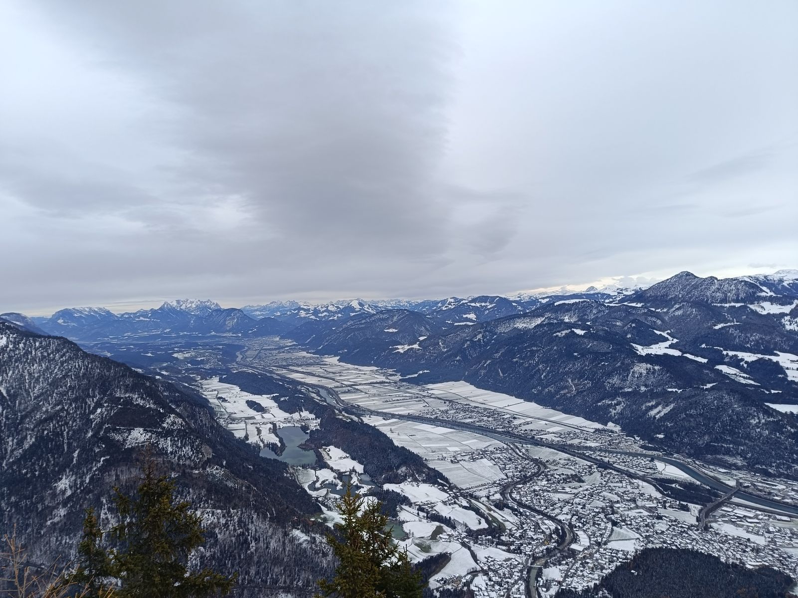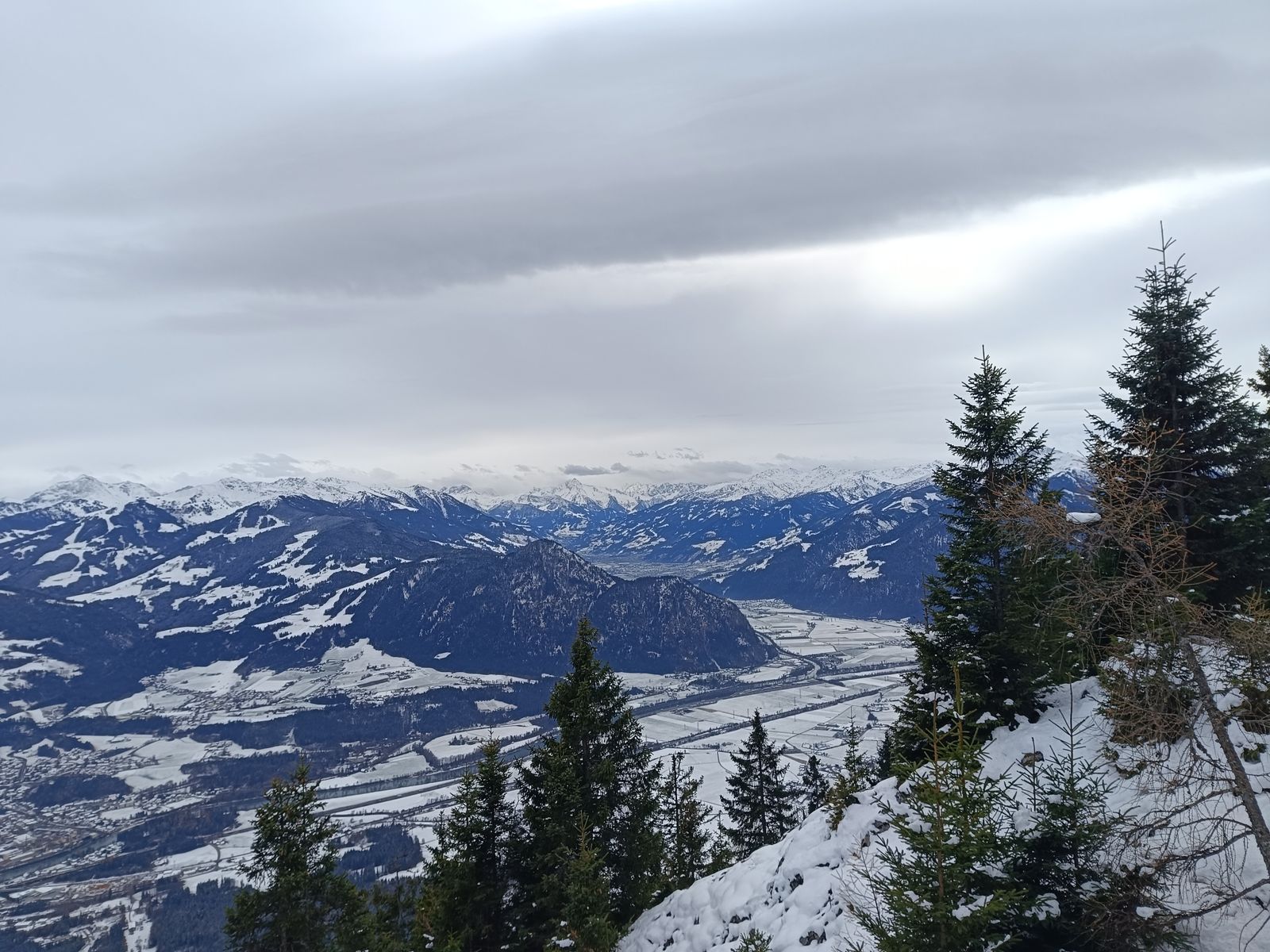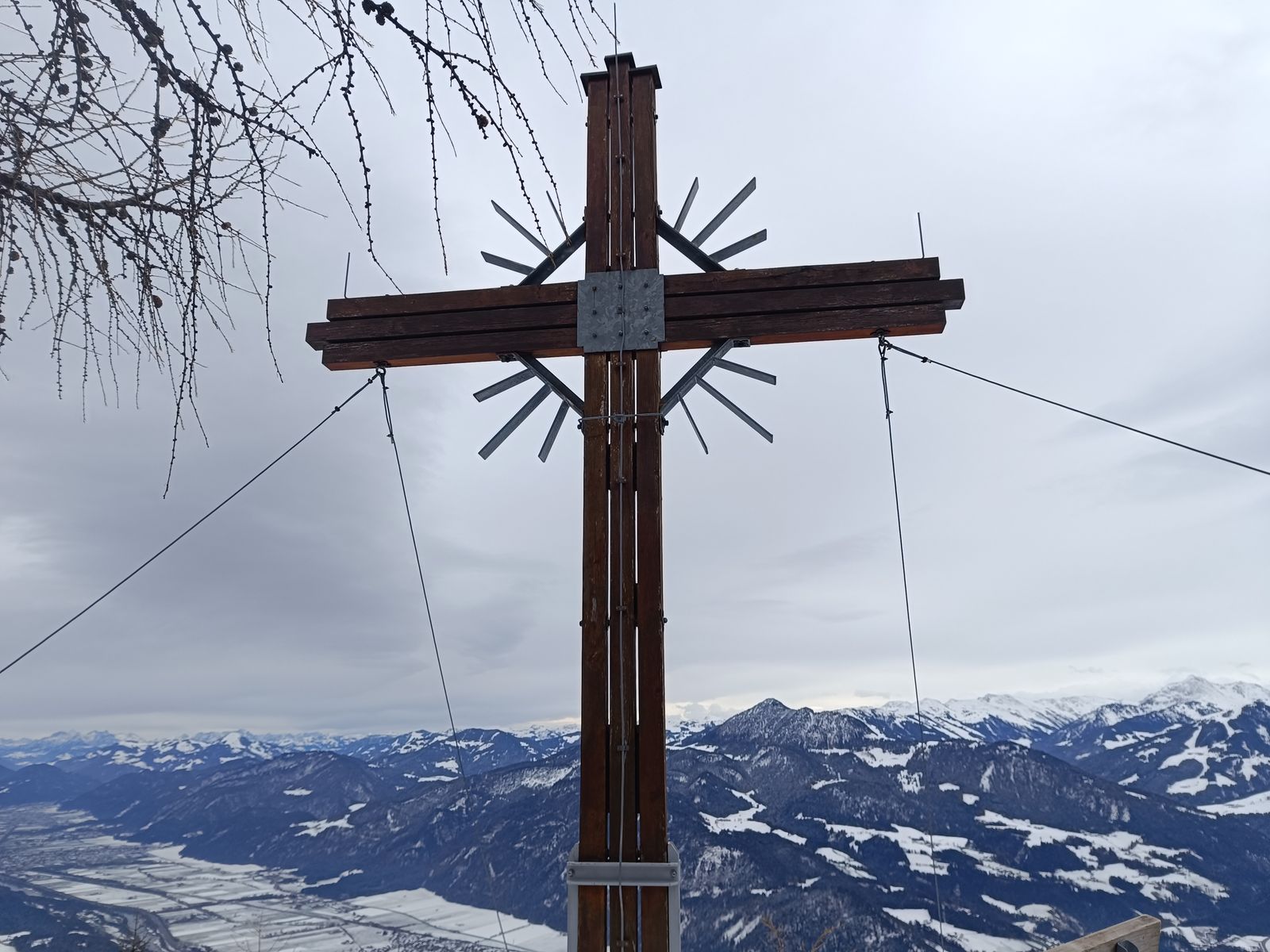 Route: Von Kramsach auf der Forststraße hoch, bis man aus dem Wald kommt. Nun gibt es einen steilen, nicht markierten oder beschilderten Steig zum Gipfel. Da gestern schon jemand den gemacht hat, war die Orientierung kein Problem - ohne Spuren bei Schnee und fehlender Ortskenntnis aber fast nicht zu finden, da es auch ziemlich durch's Unterholz geht. Abstieg auf dem normalen Weg bis zur Forststraße und hinab ins Tal. Grundsätzlich gibt es diverse Erweiterungsmöglichkeiten, wenn man Lust und Laune hat.